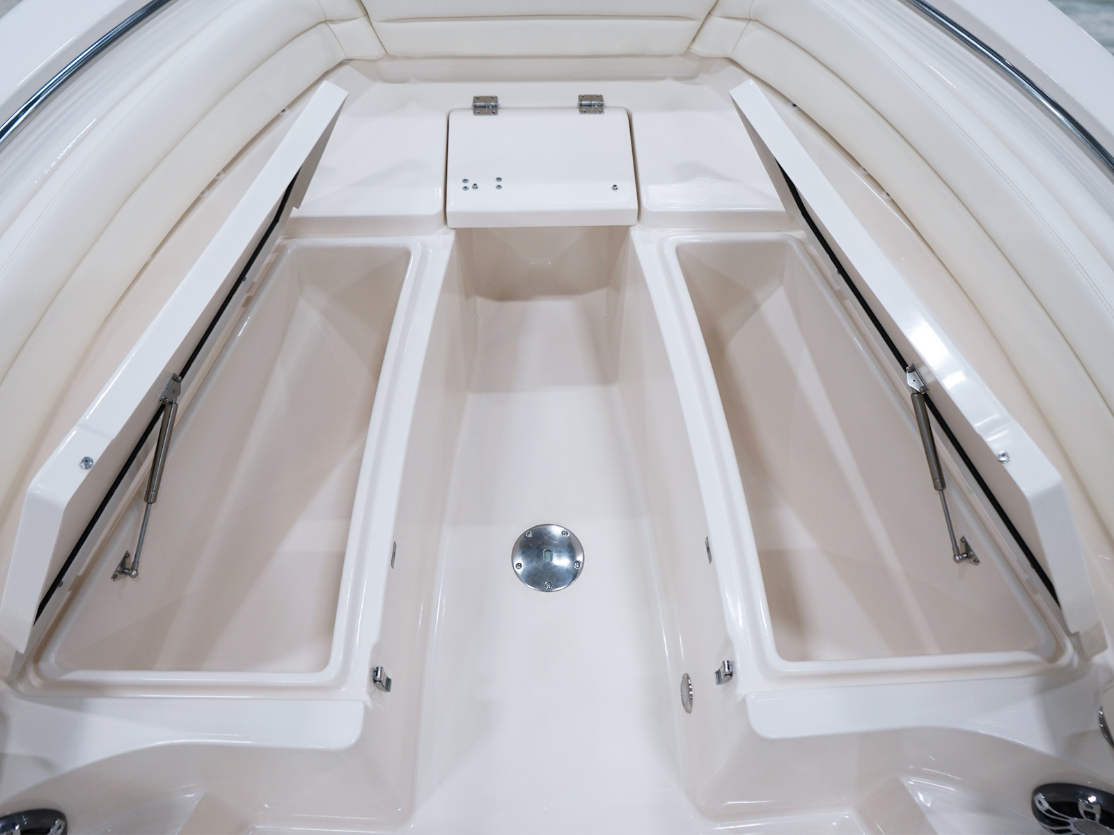 160-qt. (151.4 l) aft insulated box w/ob drain | 89-qt. (84.2 l) forward port & starboard insulated fish box w/ob drain (2)