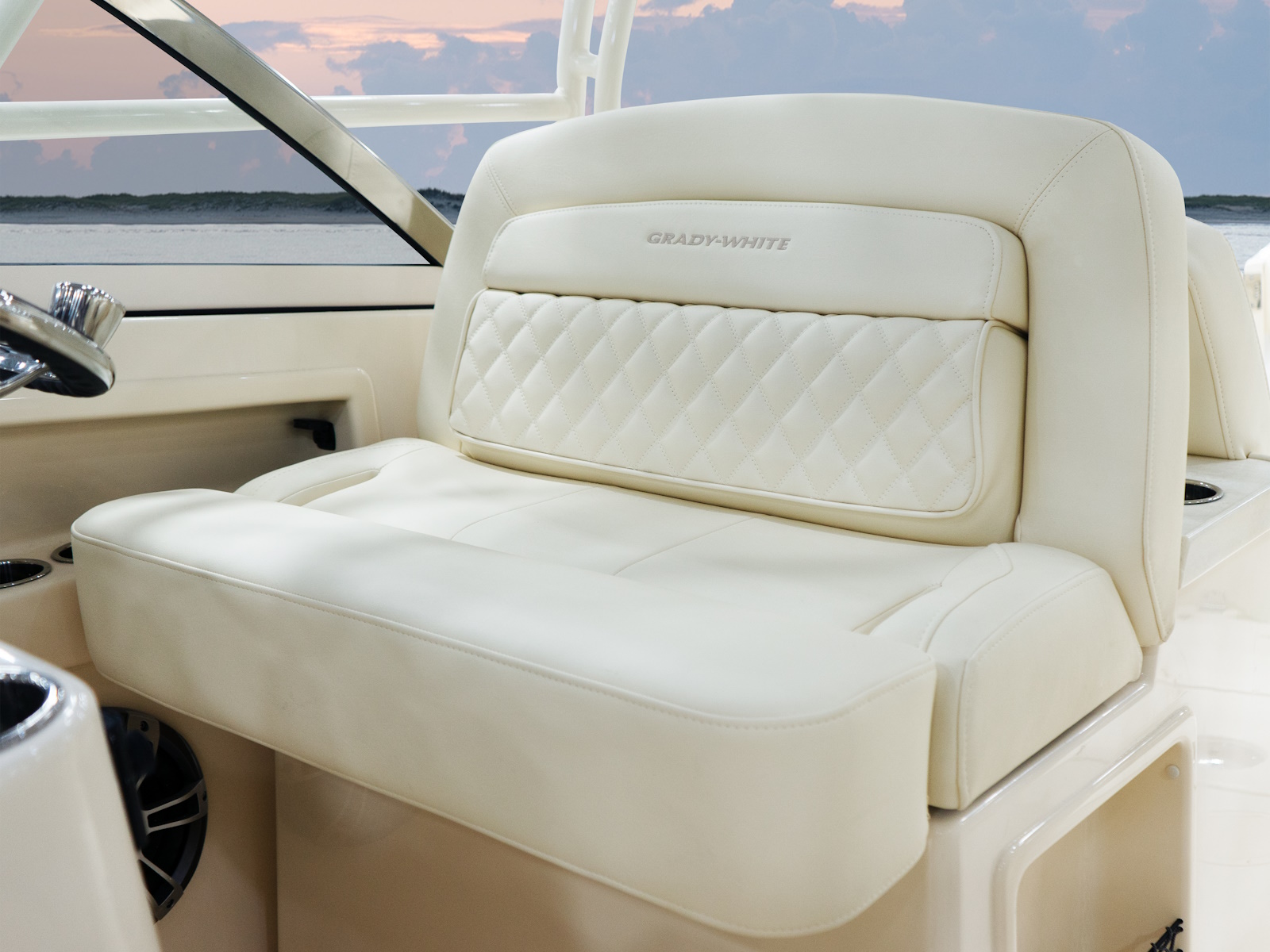- Seating - electromechanically adjustable helm bench seat w/flip-up bolster