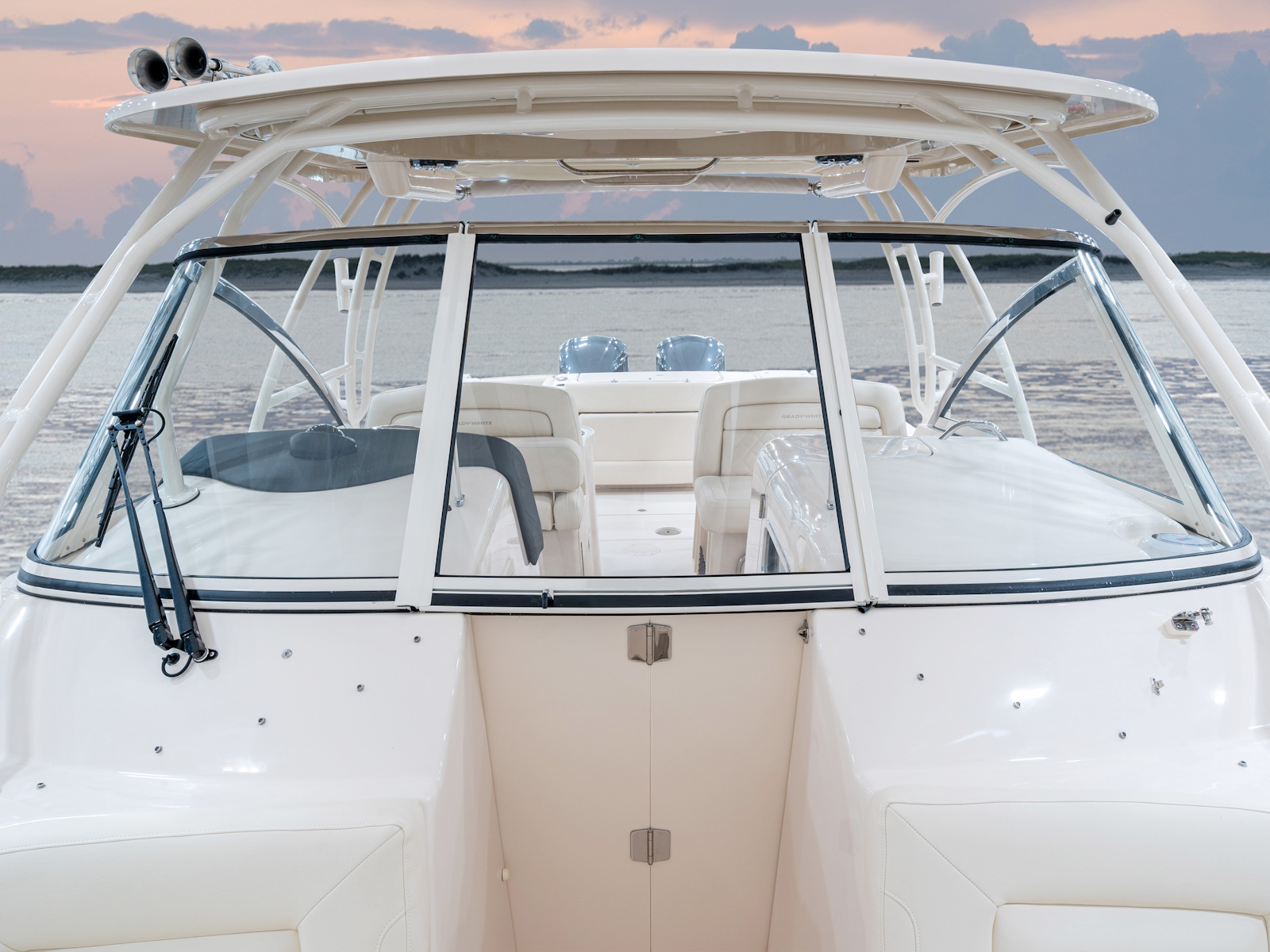 - SureShade® electrically retractable cockpit shade w/Sunbrella® canvas (oyster) (not available w/top mounted rod holders option)