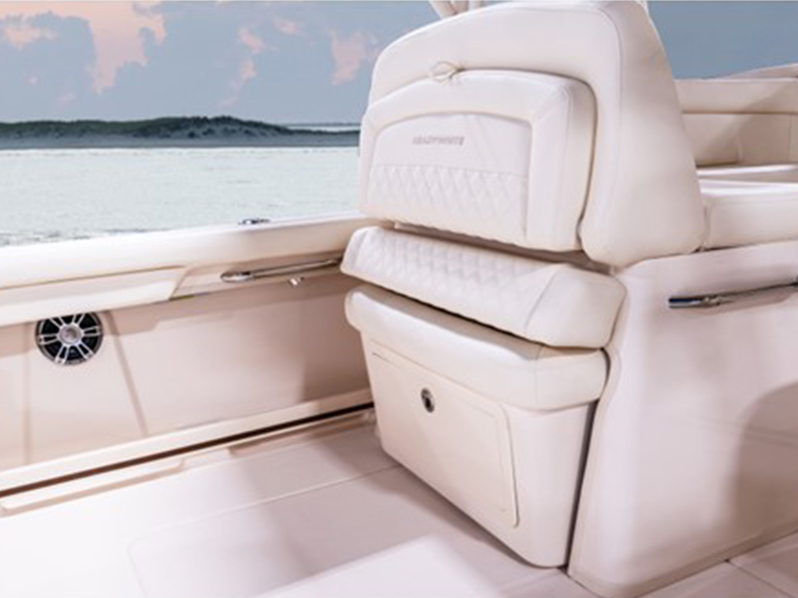 - Stereo - Deluxe stereo system w/waterproof touch screen display, AM/FM tuner, Wi-Fi & Bluetooth® connectivity, helm subwoofer & remote unit; speakers w/LED lights - bow (2), hardtop (2), cabin console (2), cockpit (2)