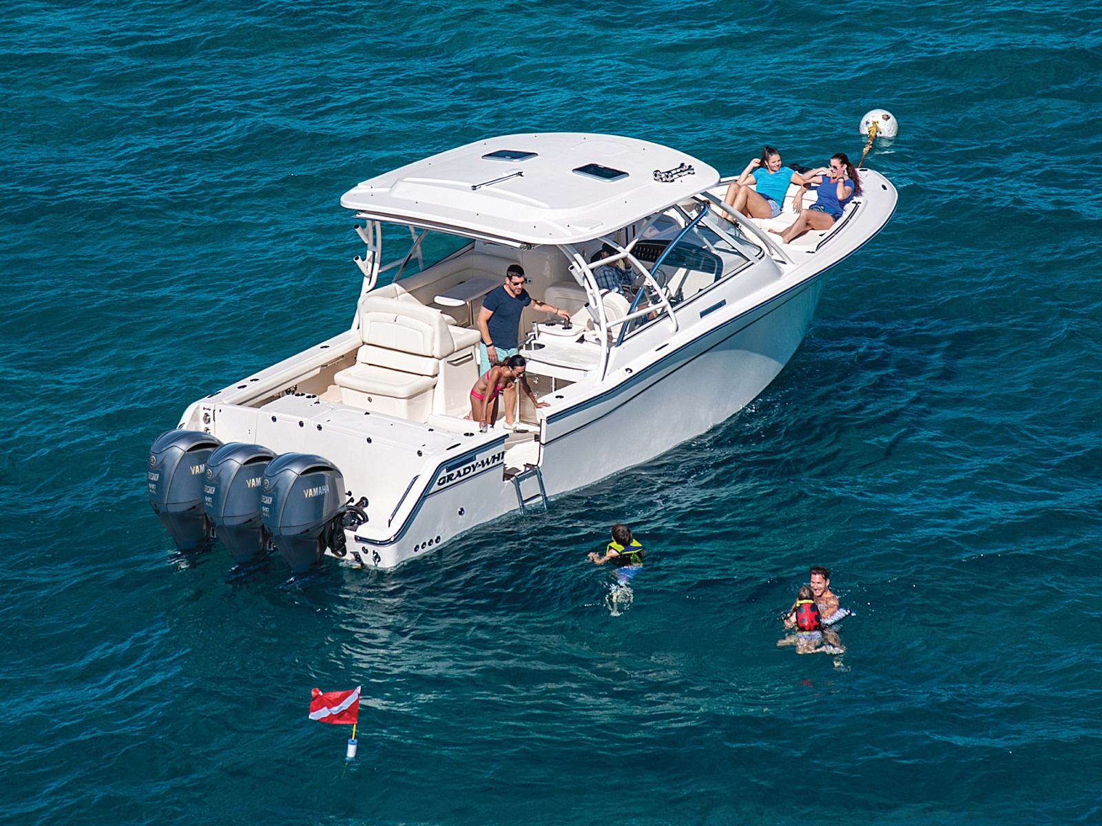 - Integrated outboard mounting system w/swim platform & ladder