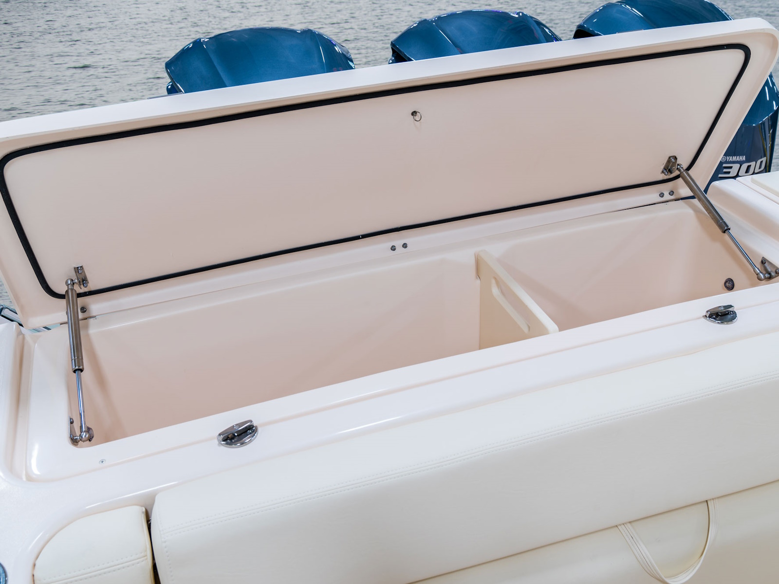 - Livewell - 32-gallon (121 l) aft insulated raw water livewell w/light, full column distribution inlet & ob drain (1100 GPH pump) (4164 LPH)
