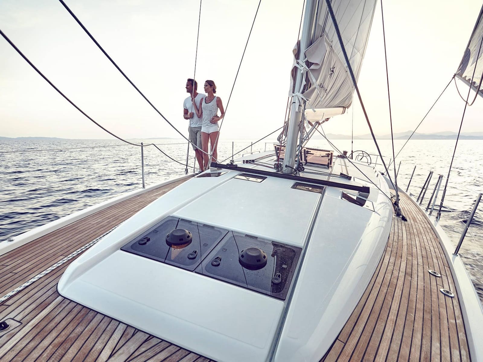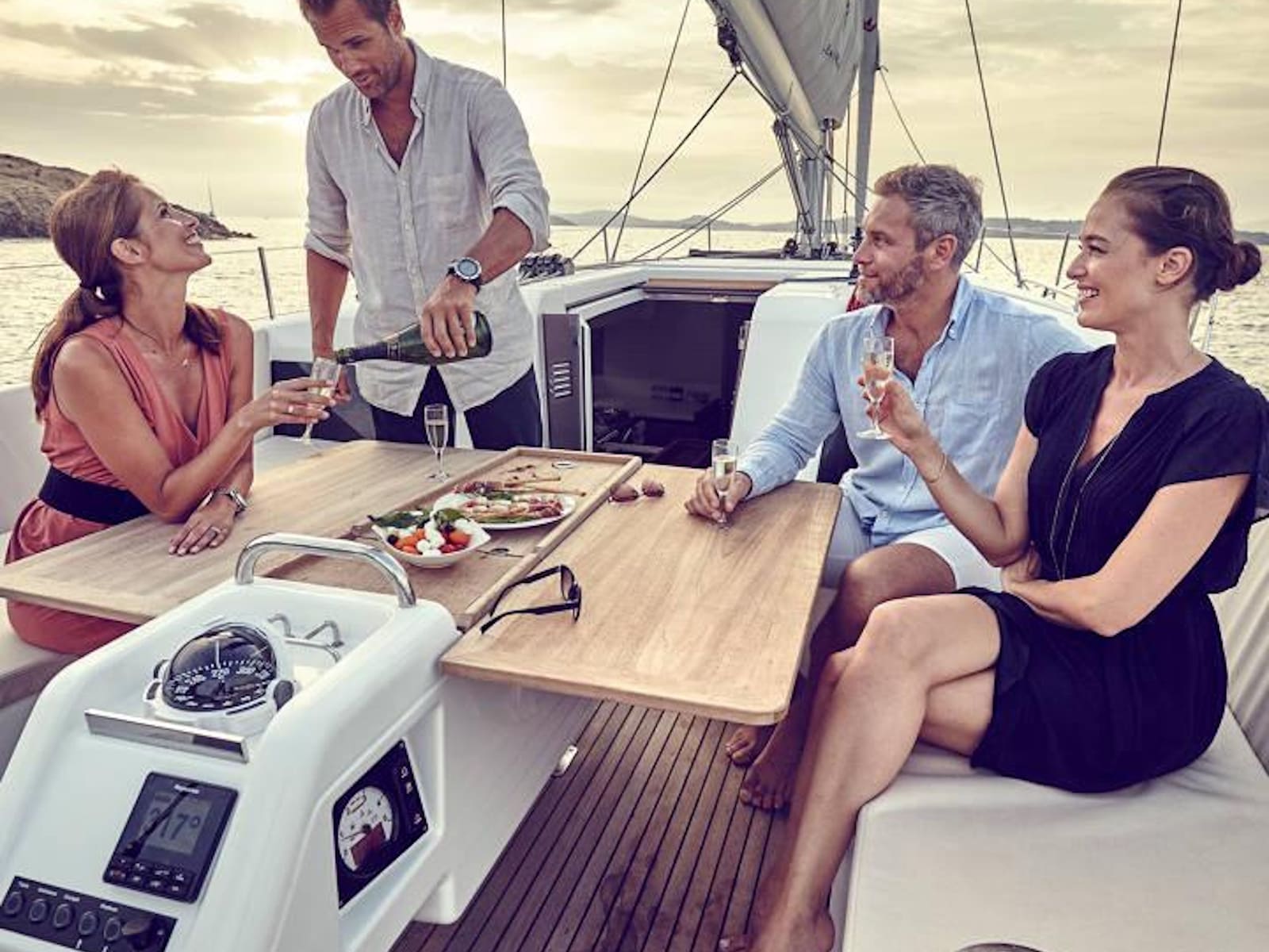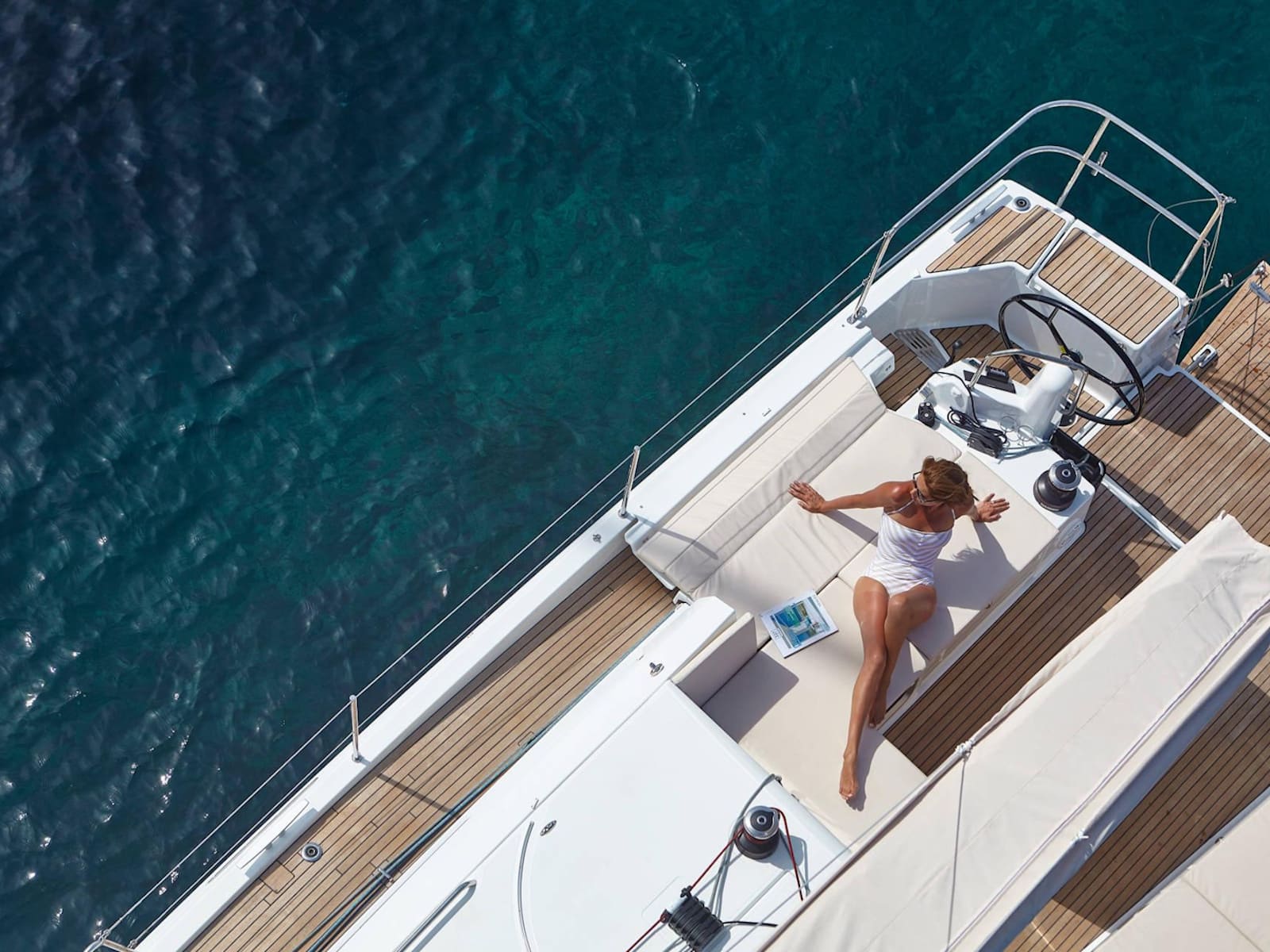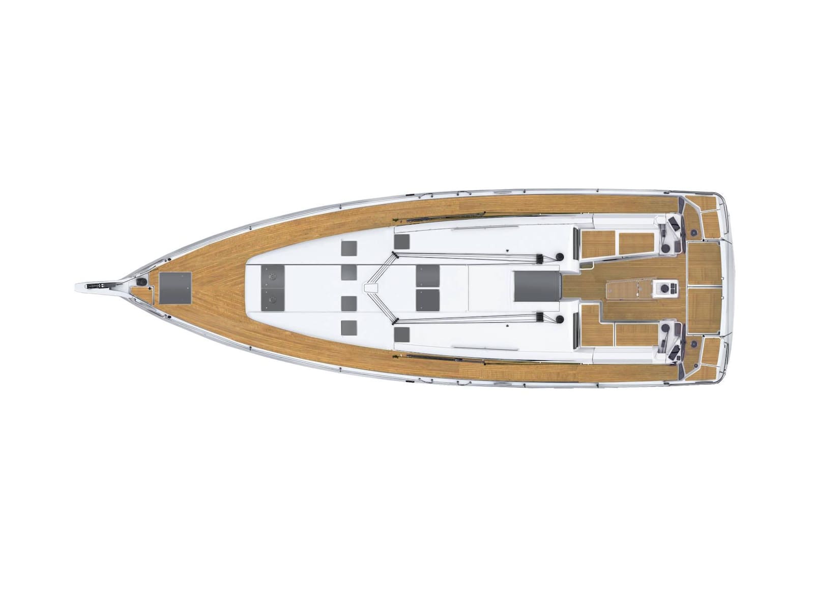 As with every Sun Odyssey, the cockpit ergonomics are second to none. Every sheet is cleverly led to the helm station, where the boat can be easily single or double-handed. The massive cockpit lounge is framed by the iconic walk-around decks, which make movement around the boat easier than ever before. However, the game-changer comes when the convertible coamings, the unfolding seat backs, are set up as beds. The entire aft eight feet of the boat transforms into a cushioned sunbathing deck!