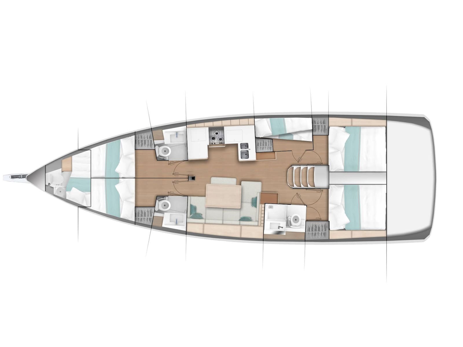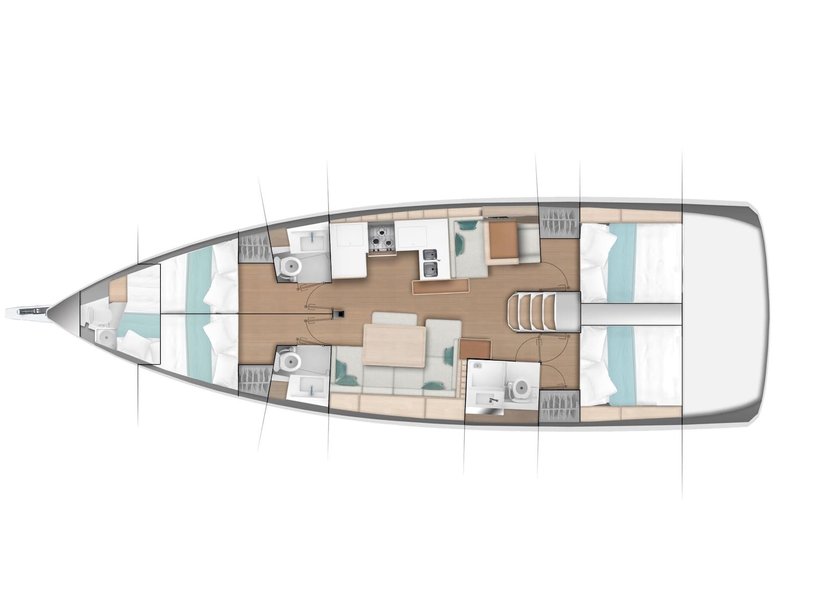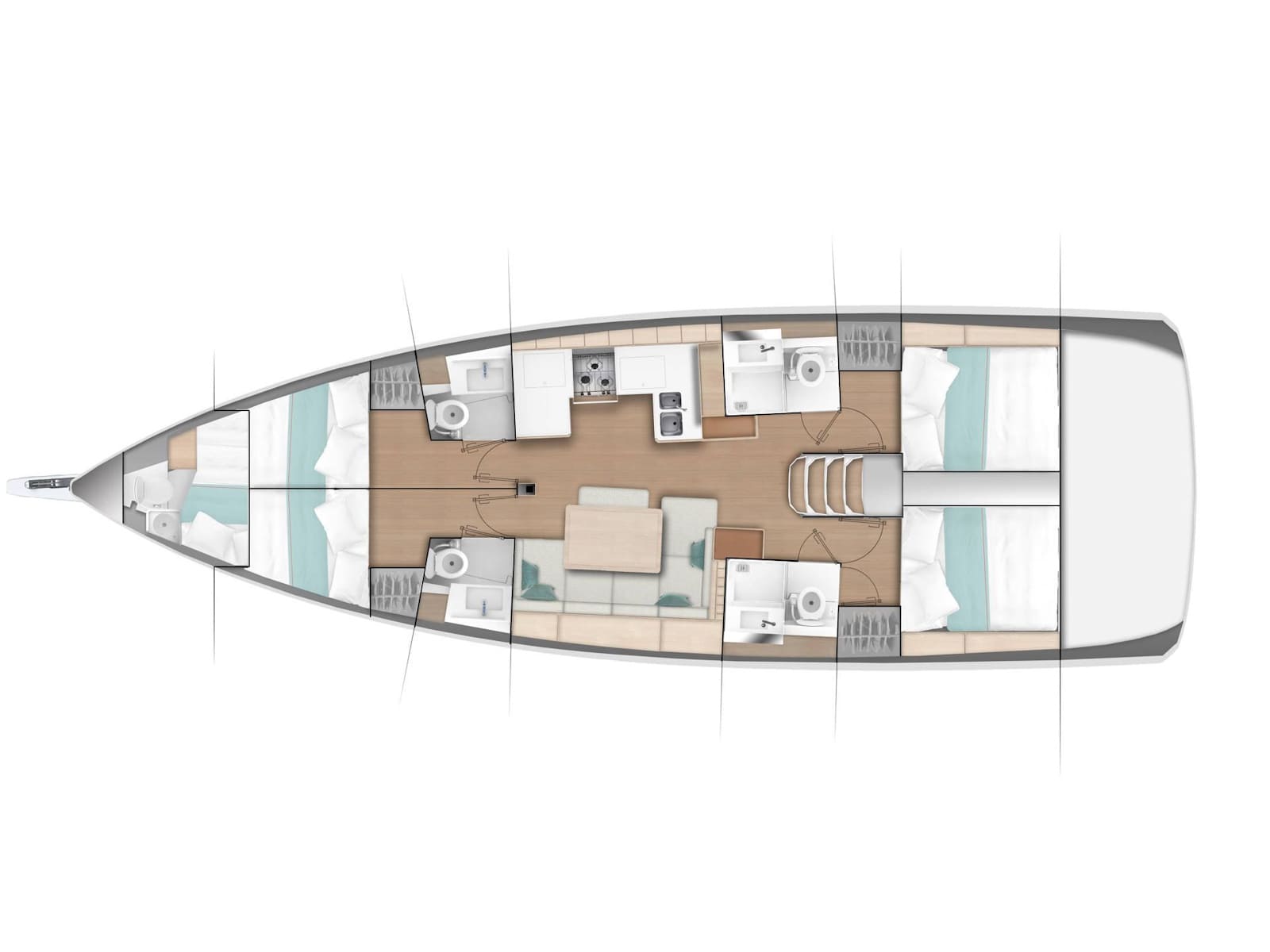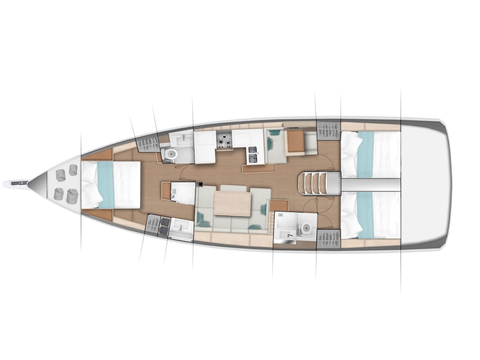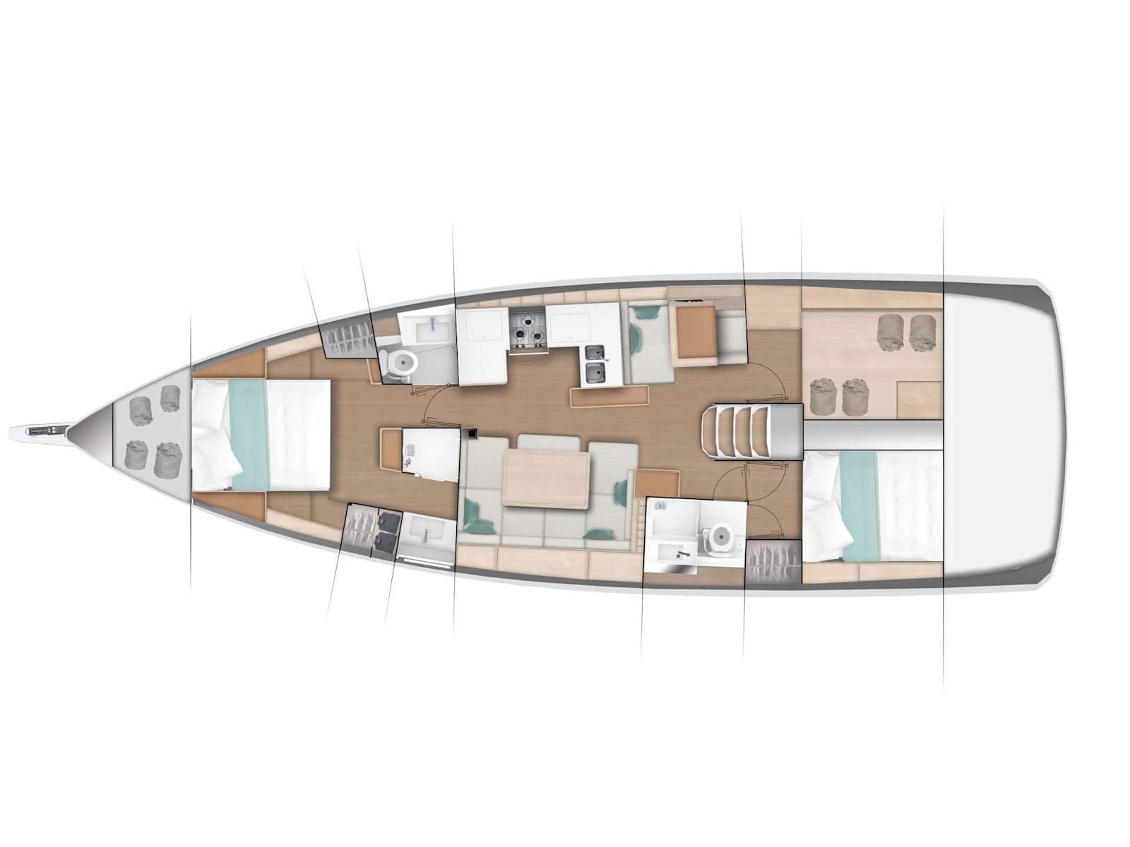 To be the flagship of the walk around series, the Sun Odyssey 490 had to set the bar for innovation, performance, and comfort. Phillippe Briand and Jean-Marc Piaton took on the challenge and designed a boat that not only sets the standard for the Sun Odyssey range, but redefines what is capable in the 50 foot cruising market. In this design, Lombard added even more hull volume to the Sun Odyssey lines, delivering greater sailing performance, more interior space for guests comfort, and more lounge areas on topside.