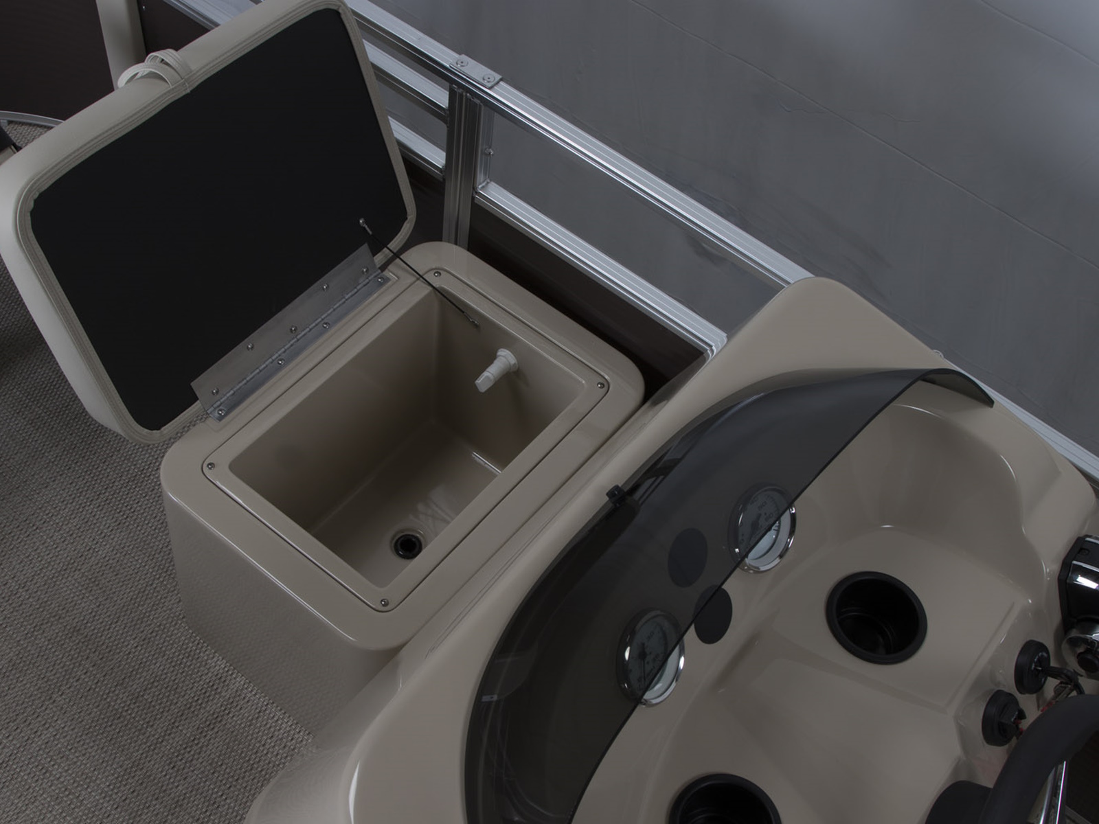 The 192 is perfect for some restful fishing with an “L” seat and 3 fishing chairs positioned just right. The fiberglass livewell in front of the console is ready for fish. Great boat for smaller lakes and smaller groups.