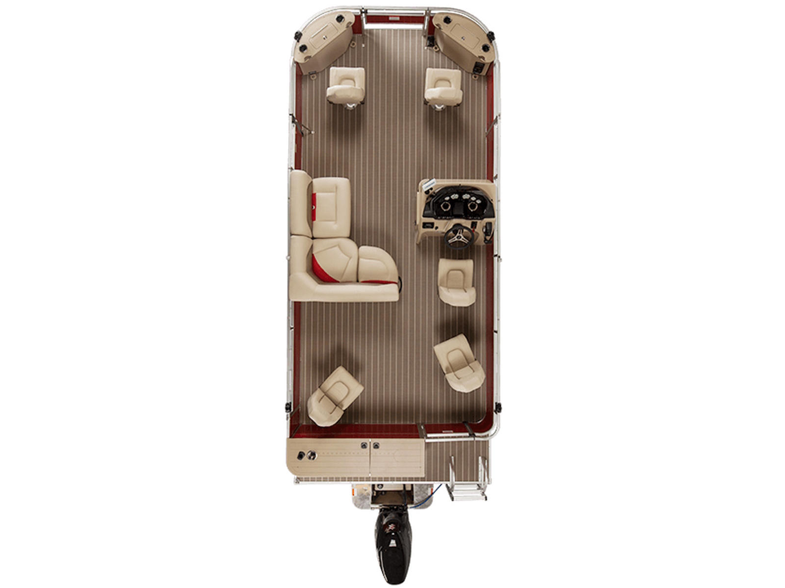 The 212 is perfect for having some serious fun fishing. The roomy 212 deck houses 4 fishing chairs, one on each corner. There is a rear livewell and the forward corners offer a bait well on the port front and dry storage with USB port on the starboard front.