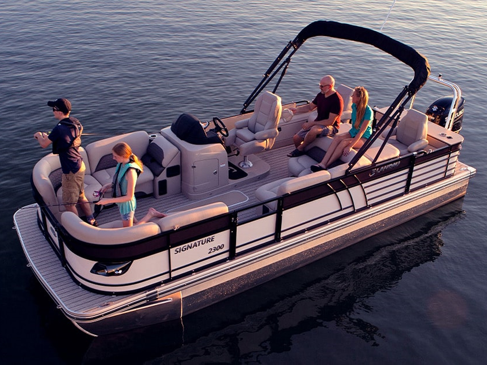 The most popular Signature Cruise Model, this is a jewel in the water with the Landau® Custom Diamond Interior, the killer Kicker® sound system with amplifier, the 12 Inch Simrad GPS system, and much more to entertain the heartiest of crews in beautiful style and color options. This model is tricked out!