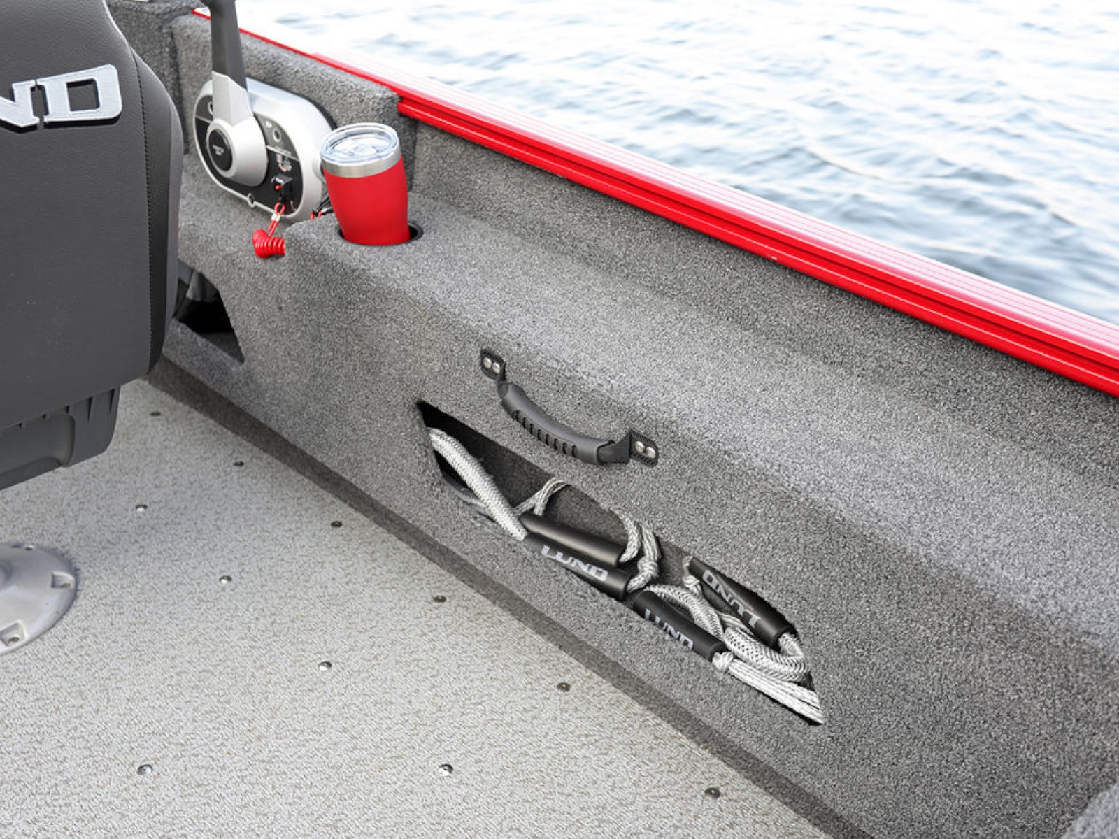 The Lund 1775 Adventure Sport will please everyone in the family with its protective full windshield. The Lund Adventure series are affordable 17' family fish and ski boats and perfect for watersports like tubing skiing and wake boarding. It's also ready to fish with fishing features that include a livewell center rod storage and two rear flip-up jump seats.