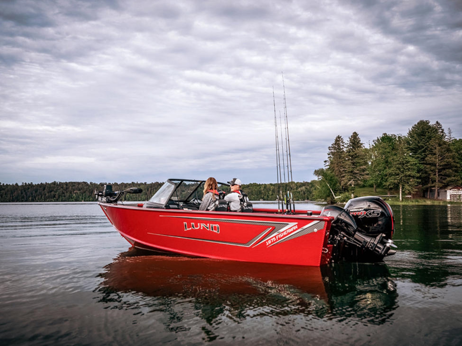 The 1875 Lund Fisherman is designed as a trolling fishing boat that specializes in walleye lake trout salmon or striper. The spacious cockpit is perfect for trolling and designed for ease of mobility and fishability. This extremely durable 18-foot walleye lake trout or salmon fishing boat handles big water with ease and helps target those big fish on big water.