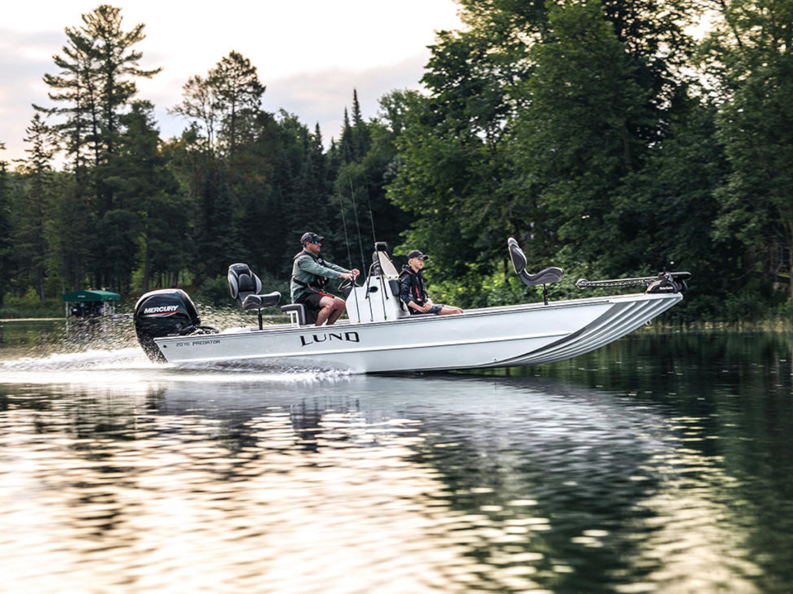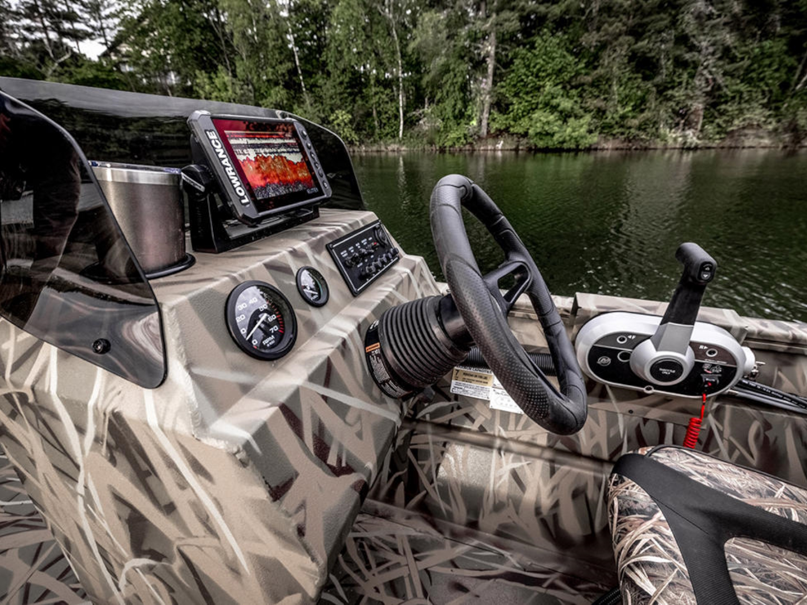 The Lund 2070 Predator CC (center console) jon boat is a rugged camo hunting and fishing boat for any outdoorsmen. The center console design provides 360-degree maneuverability and as a Lund it carries a legacy of unmatched durability that will serve you for years to come. Whether you're jugging for catfish in the bayou or casting for pike in Canada this rugged center consol camo hunting boat will deliver.
