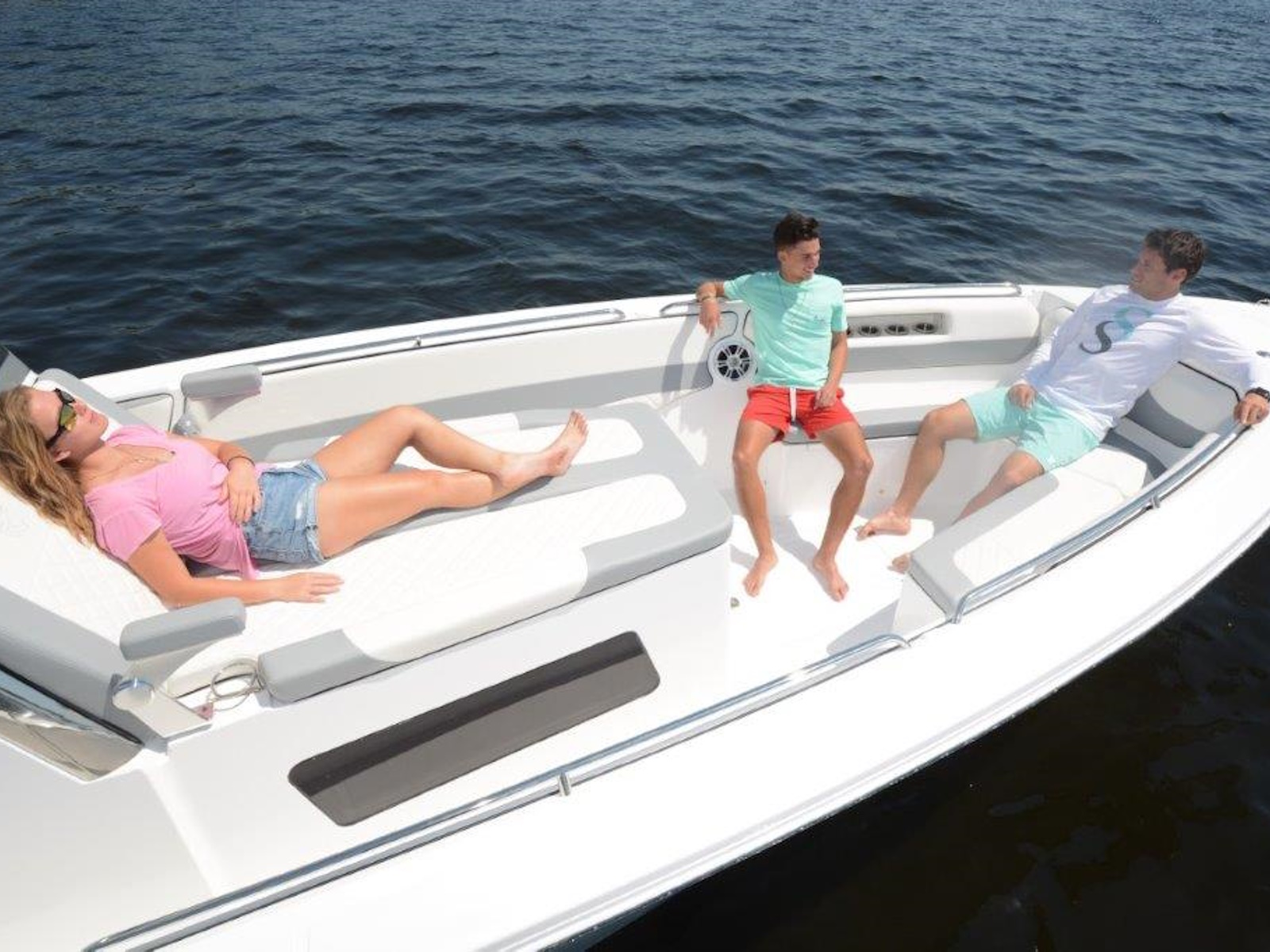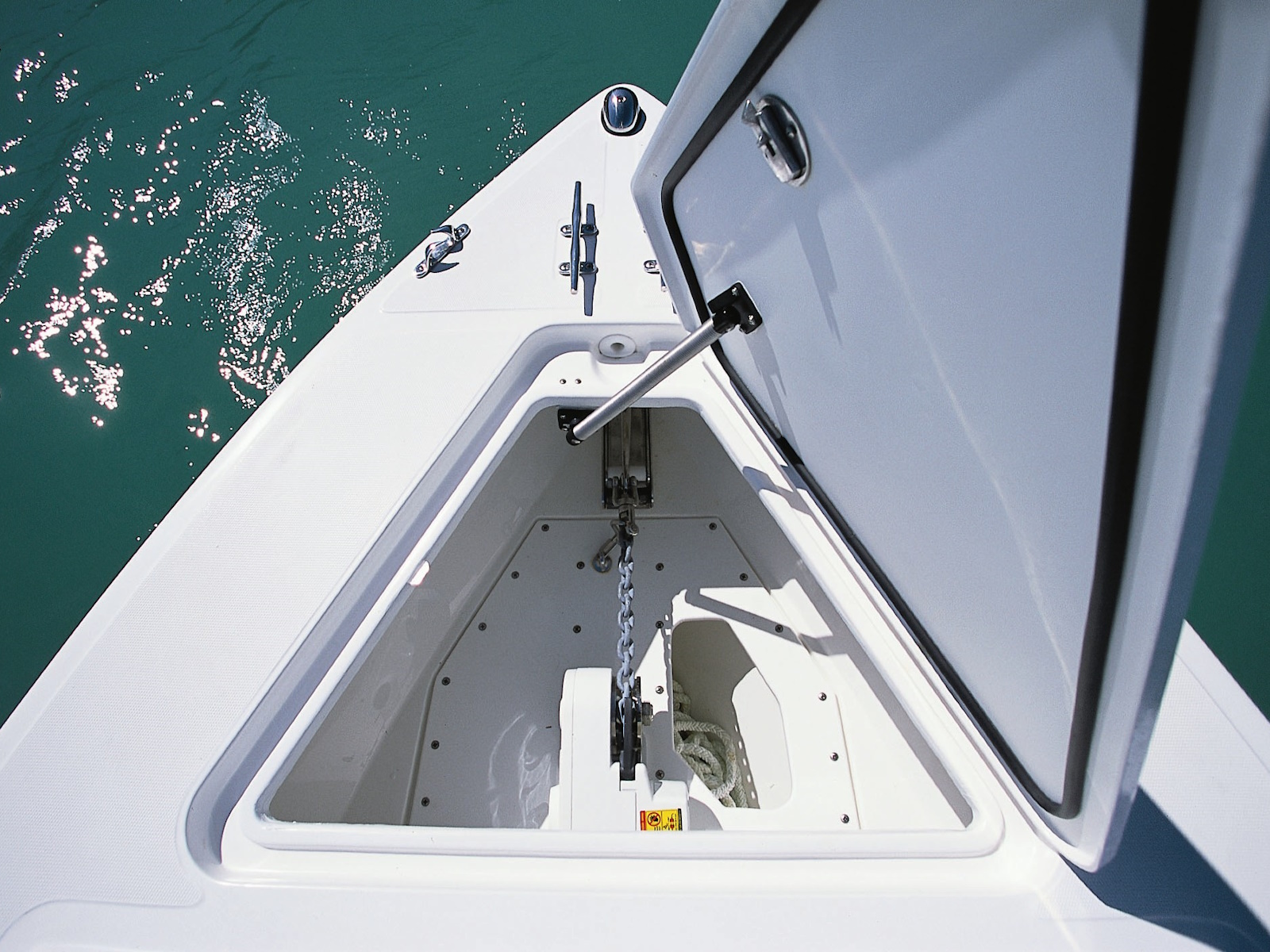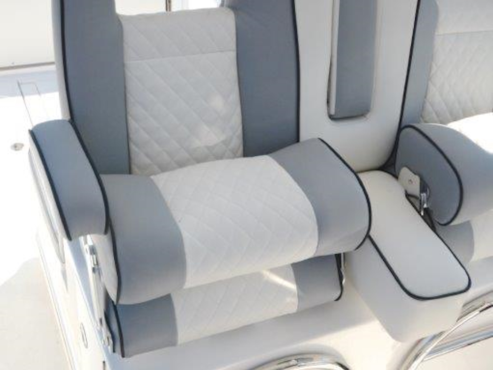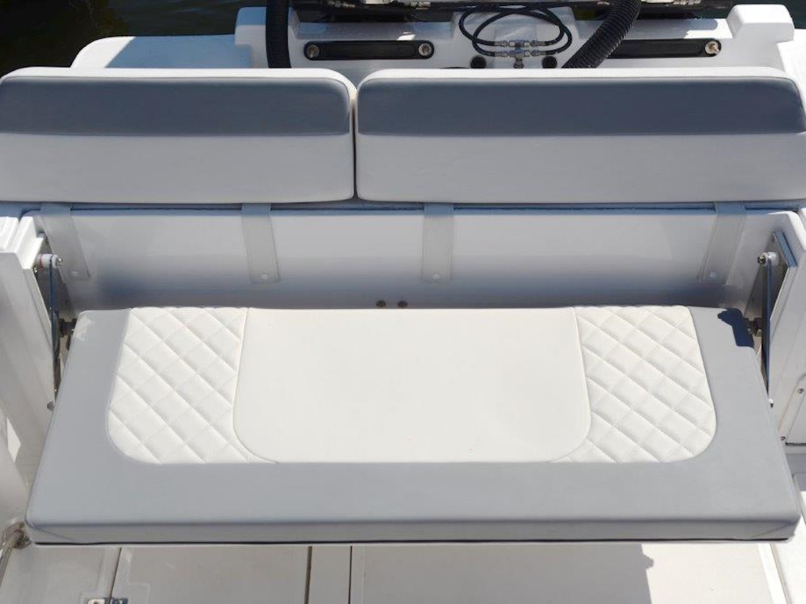 • Folding Aft Bench Seat with power lift to access aft rigging