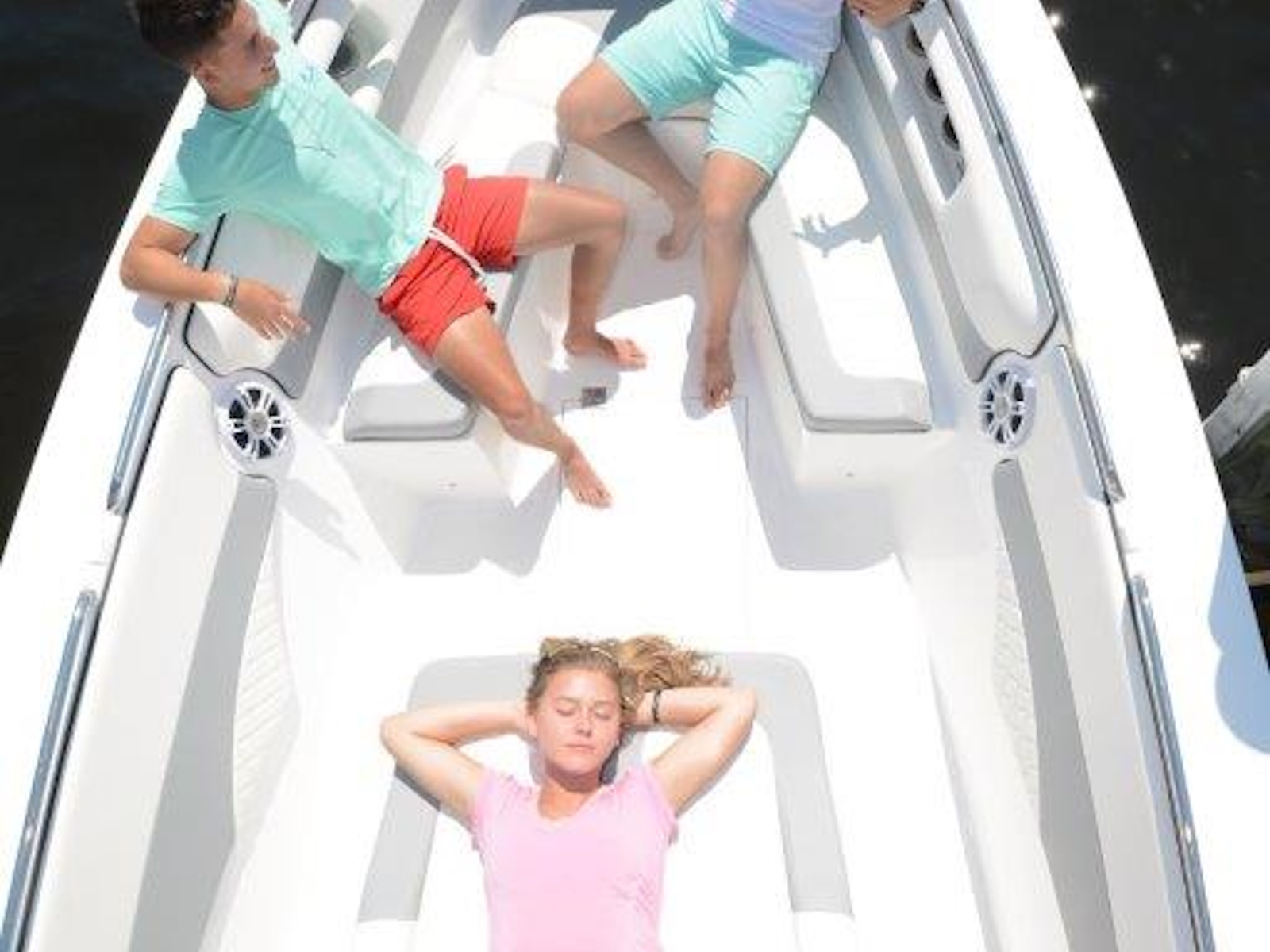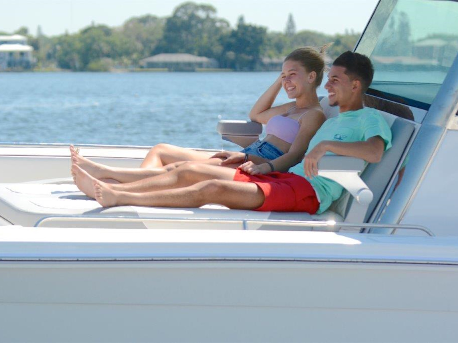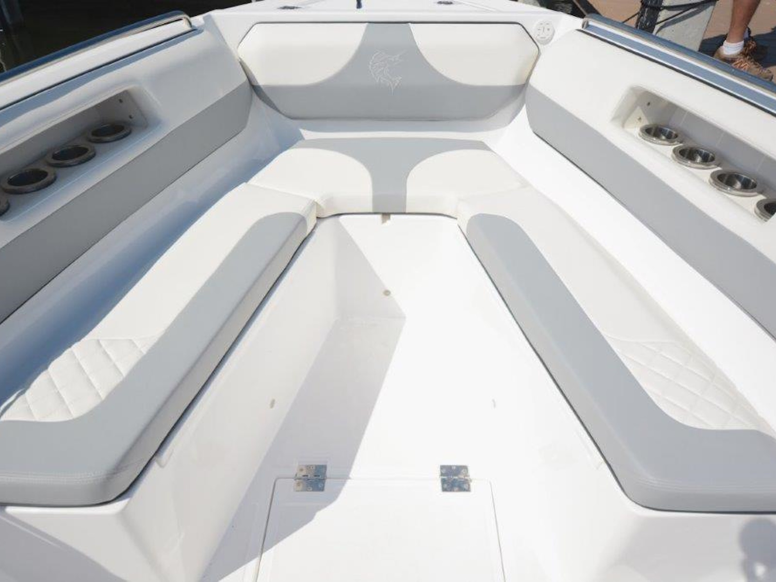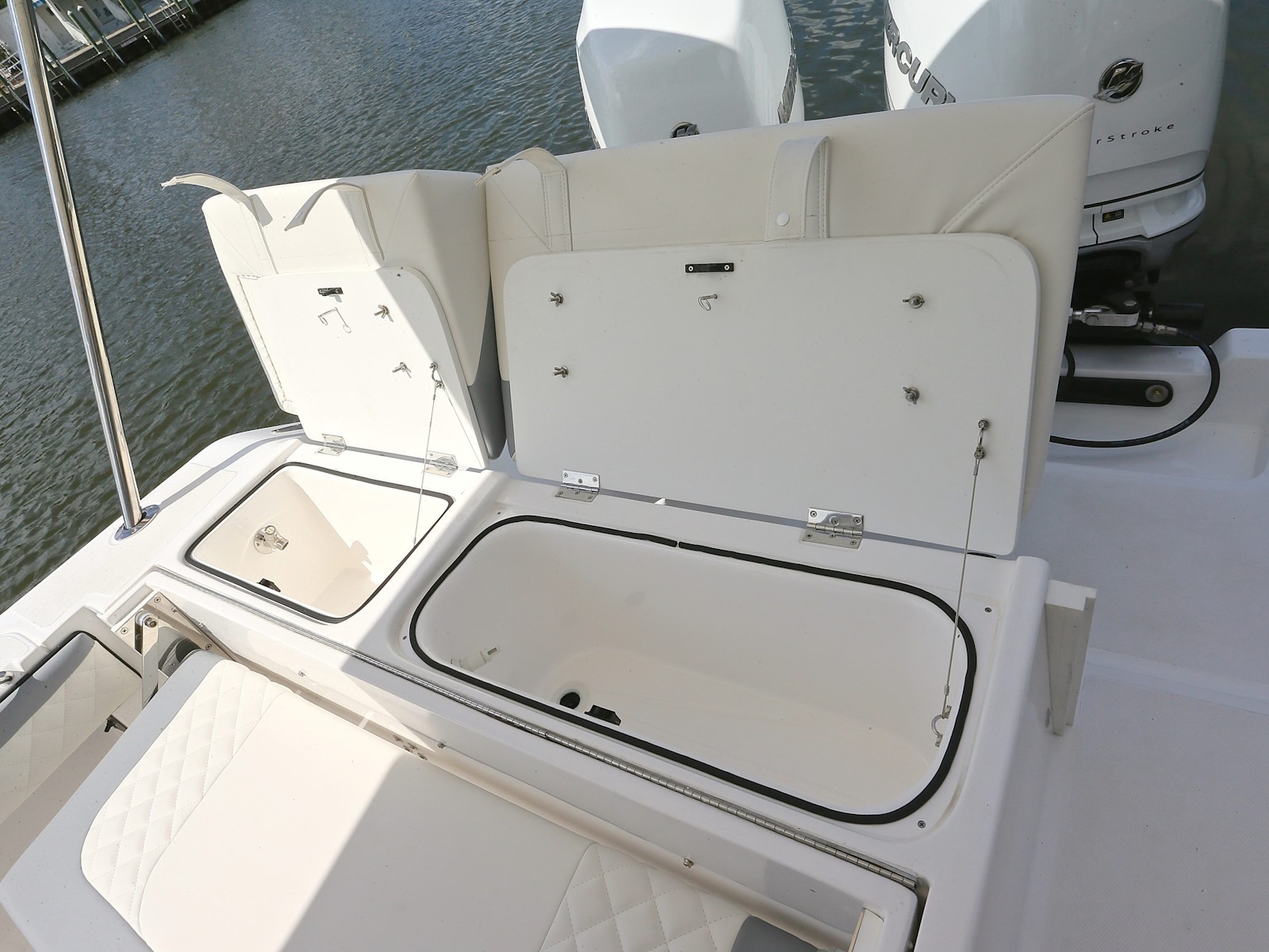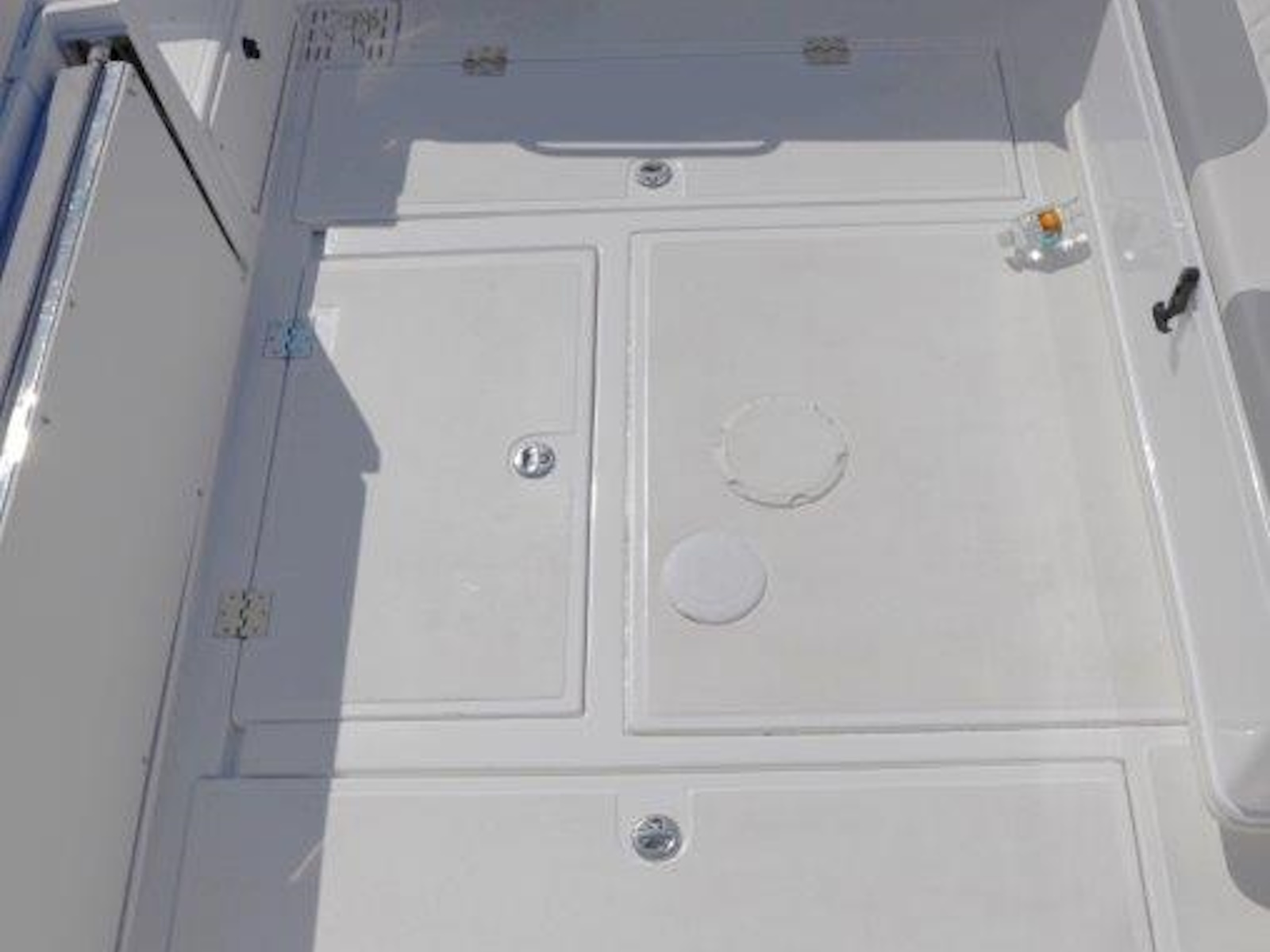 • Folding Aft Bench Seat with power lift to access aft rigging