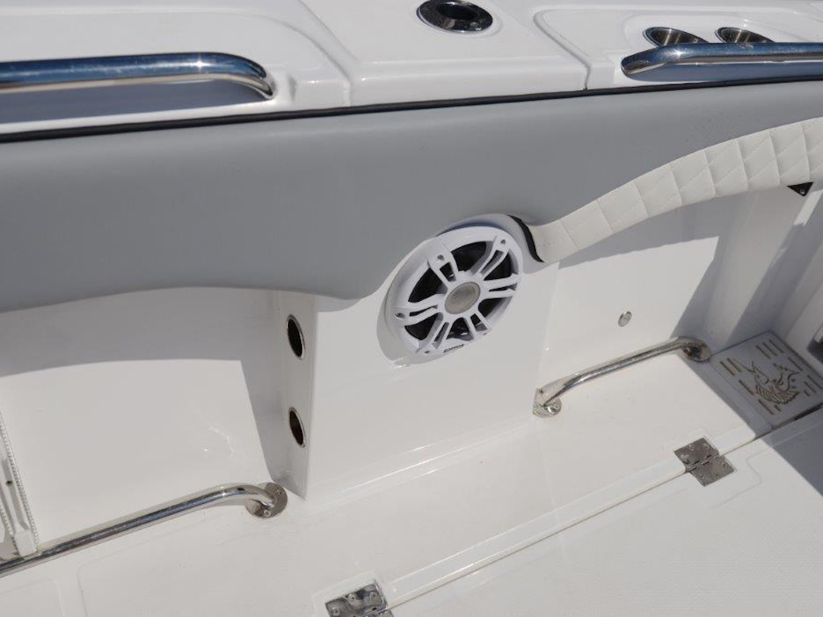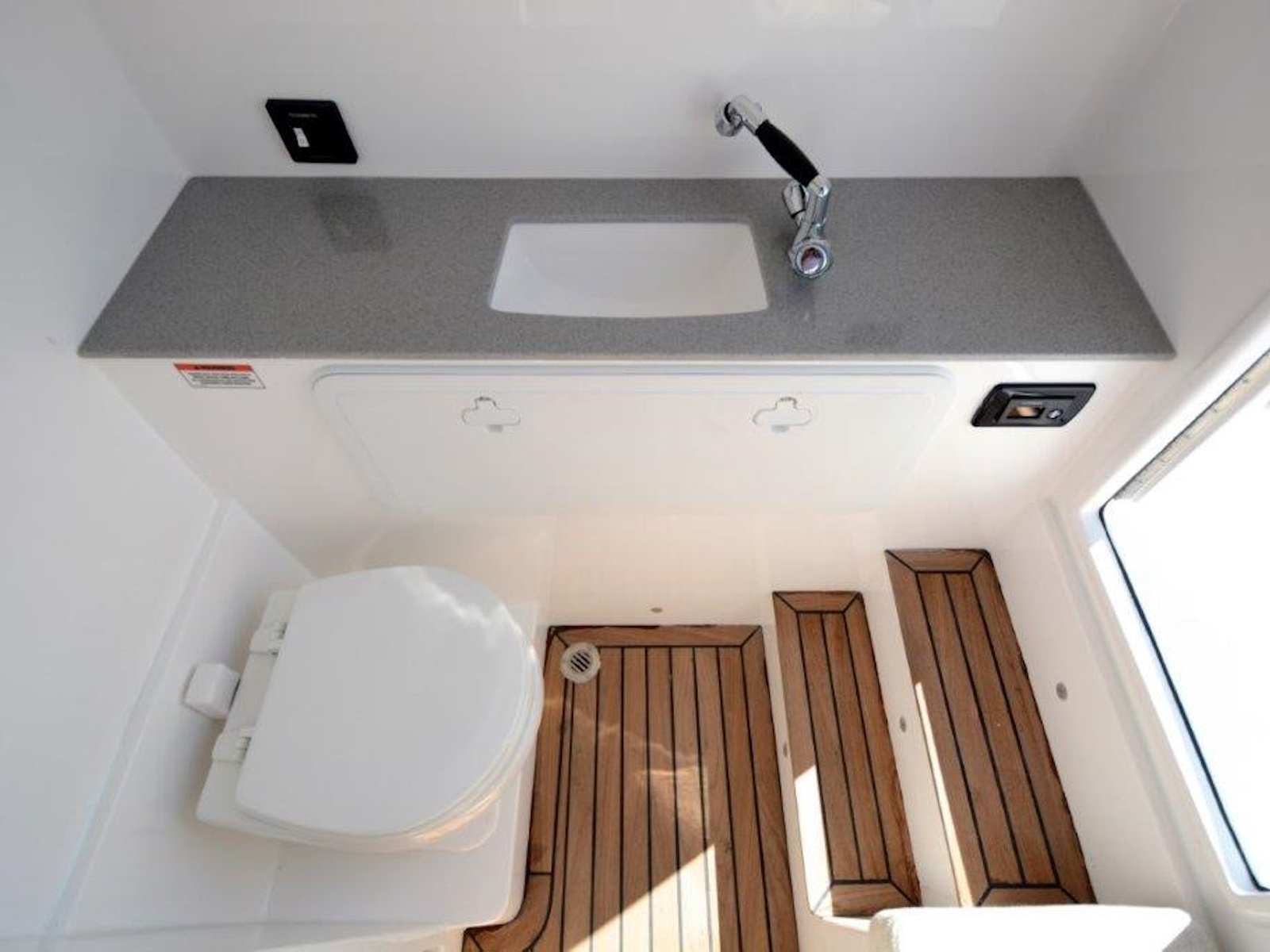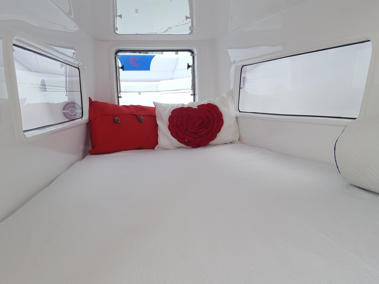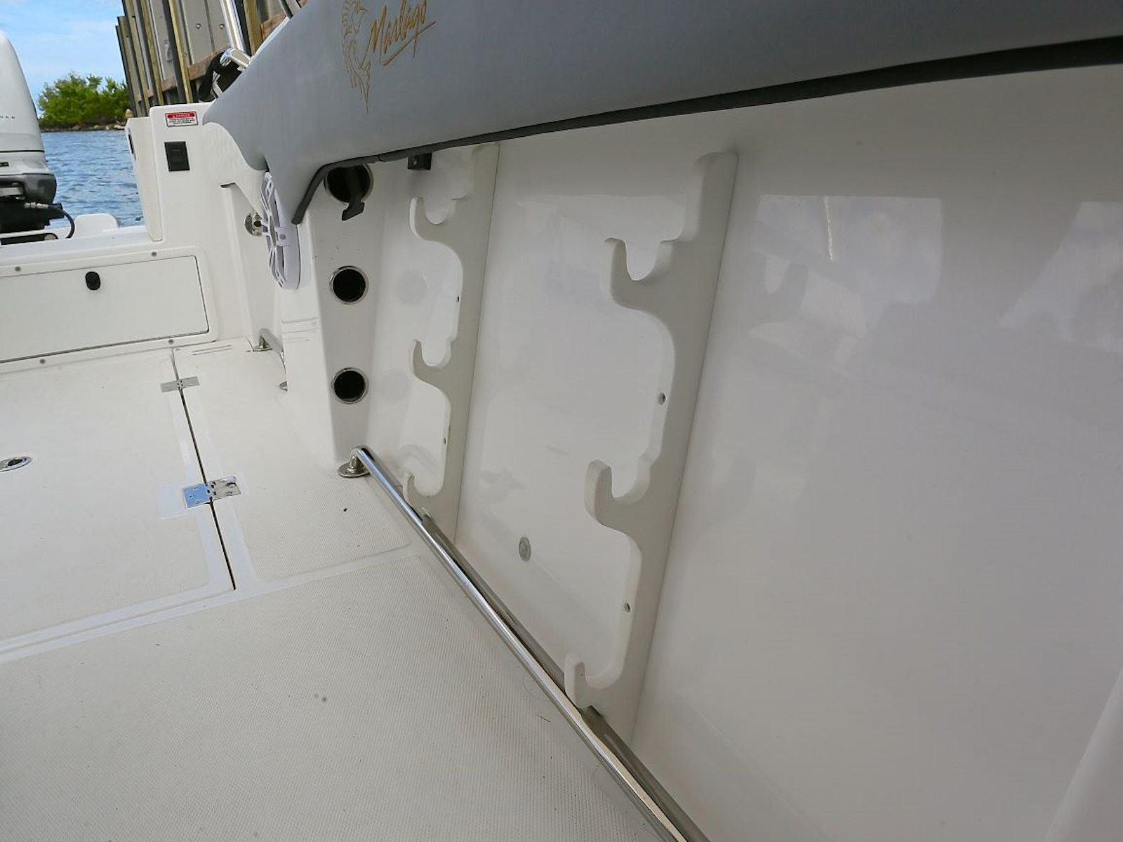• Folding Aft Bench Seat with power lift to access aft rigging