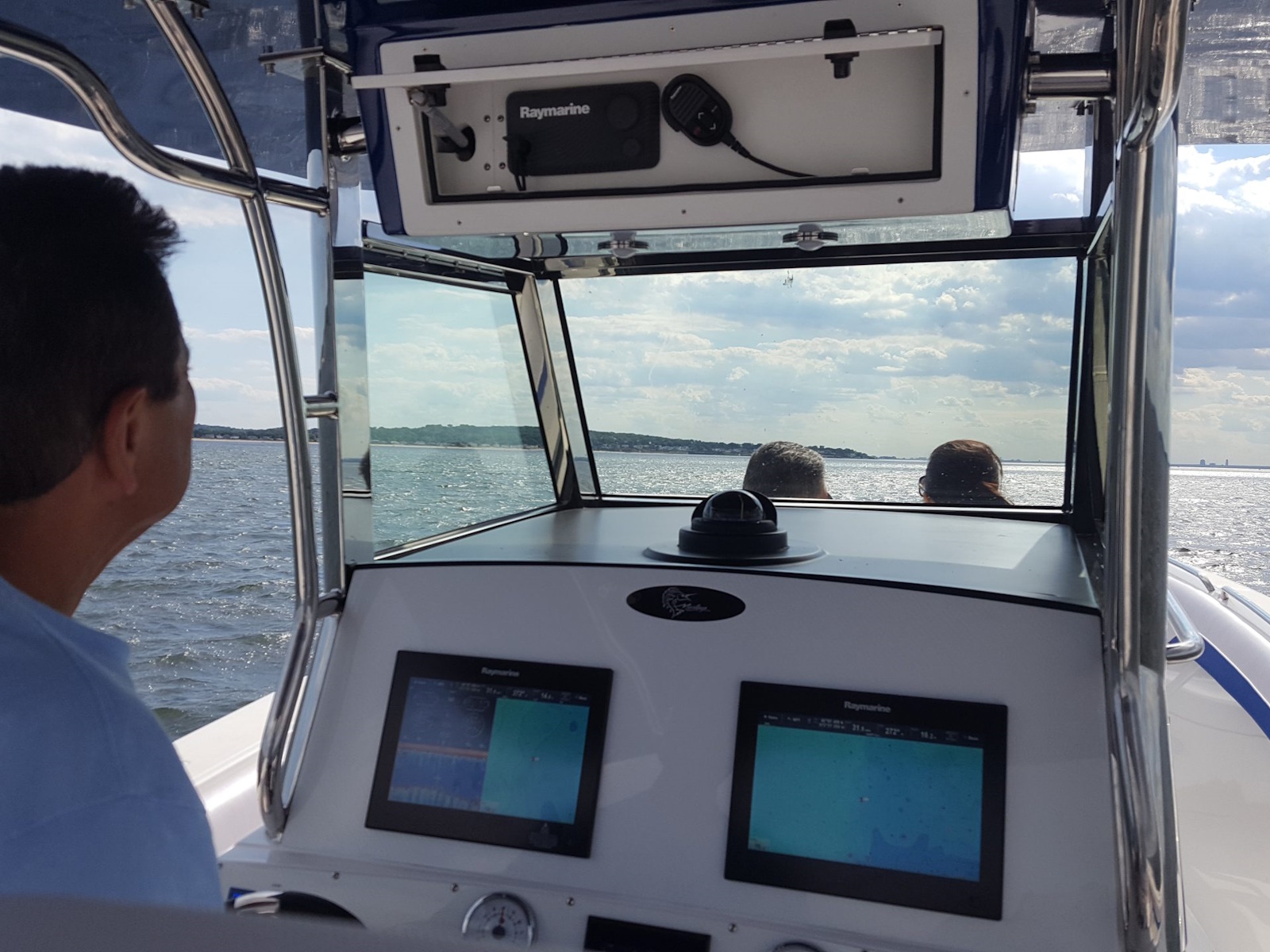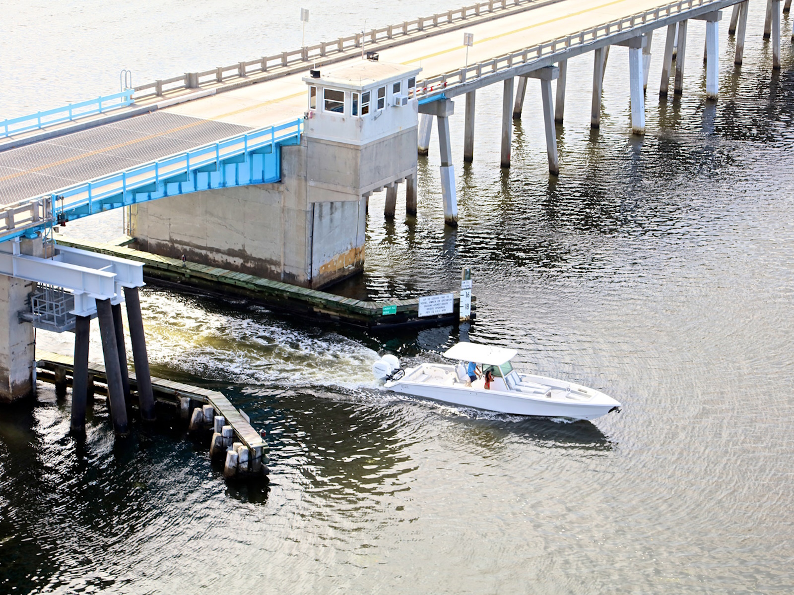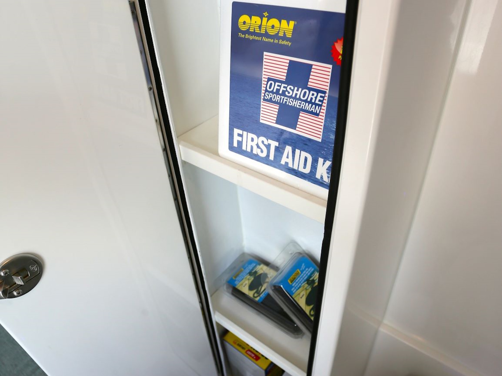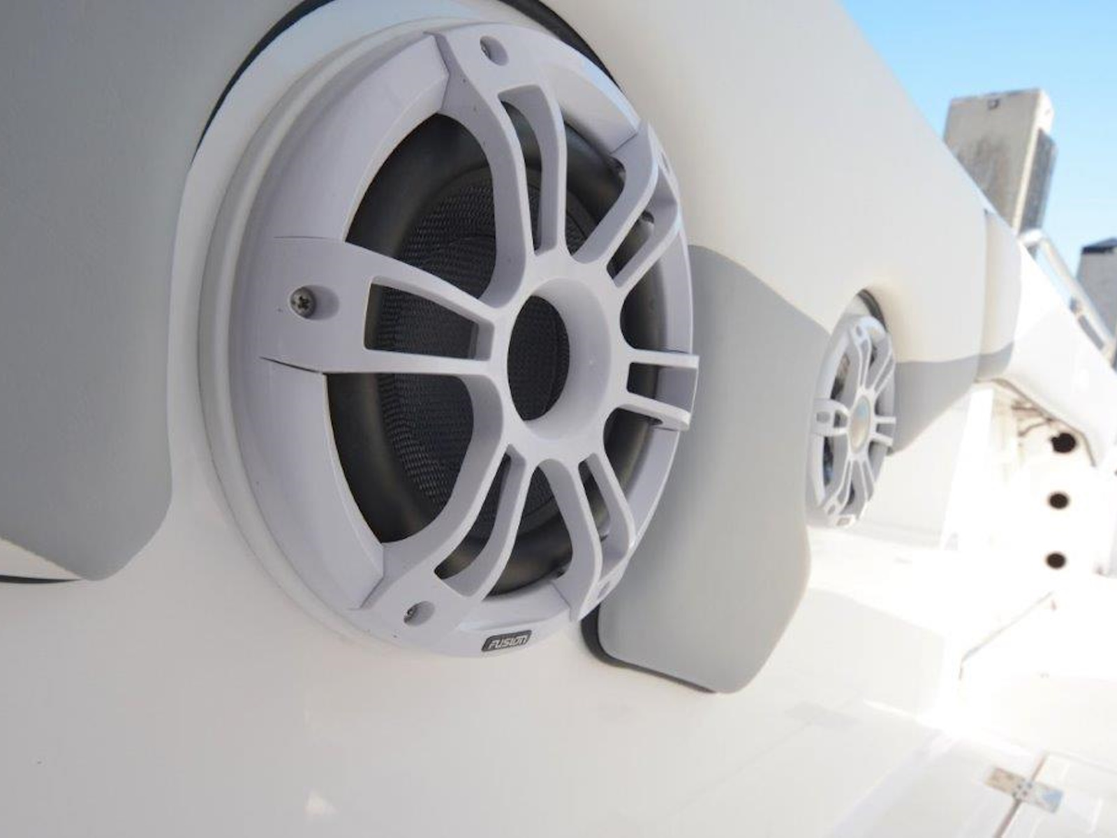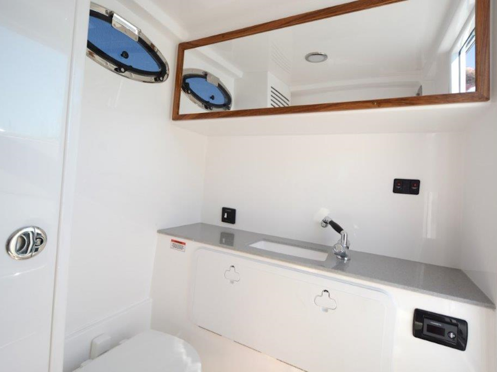 • Folding Aft Bench Seat with power lift to access aft rigging