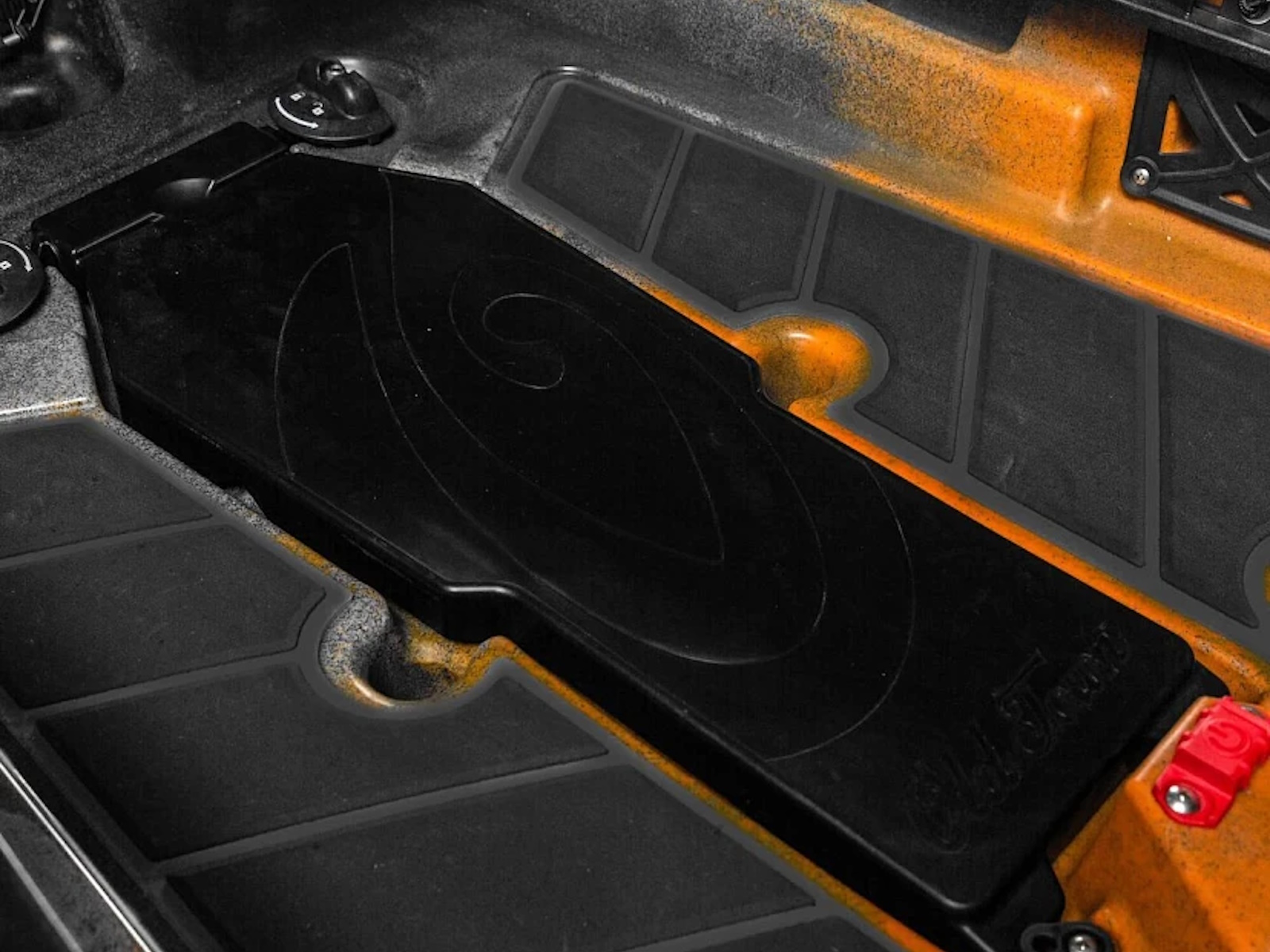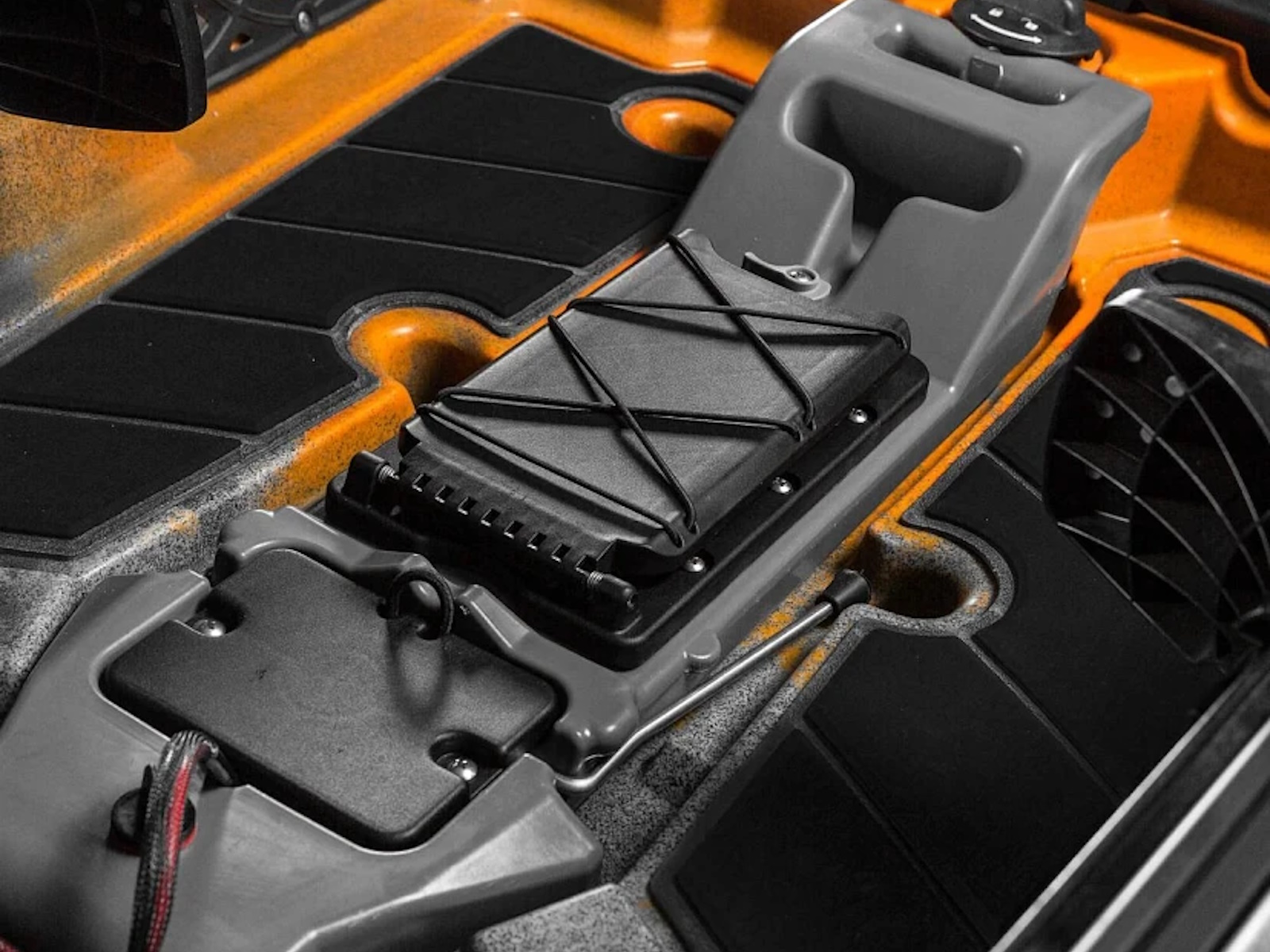 - Console floor plug stores in the tank well and can be used to keep water out when the motor is removed or you want to paddle