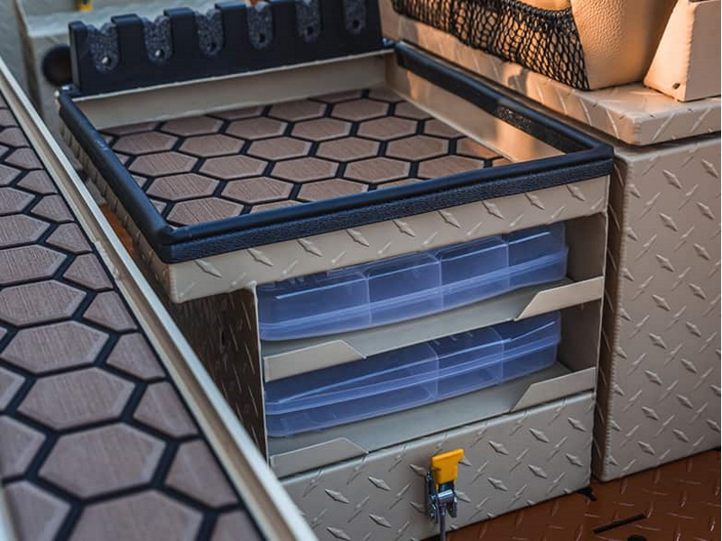 IN-FLOOR FISH BOX WITH REMOVABLE BAIT TRAY