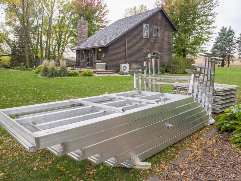 Pier Pleasure’s dock legs are braced from side to side and front to back for maximum stability. There are no leg posts above the dock surface and legs do not need to be removed, which makes installation, removal and storage easier. This also maintains a clean appearance.