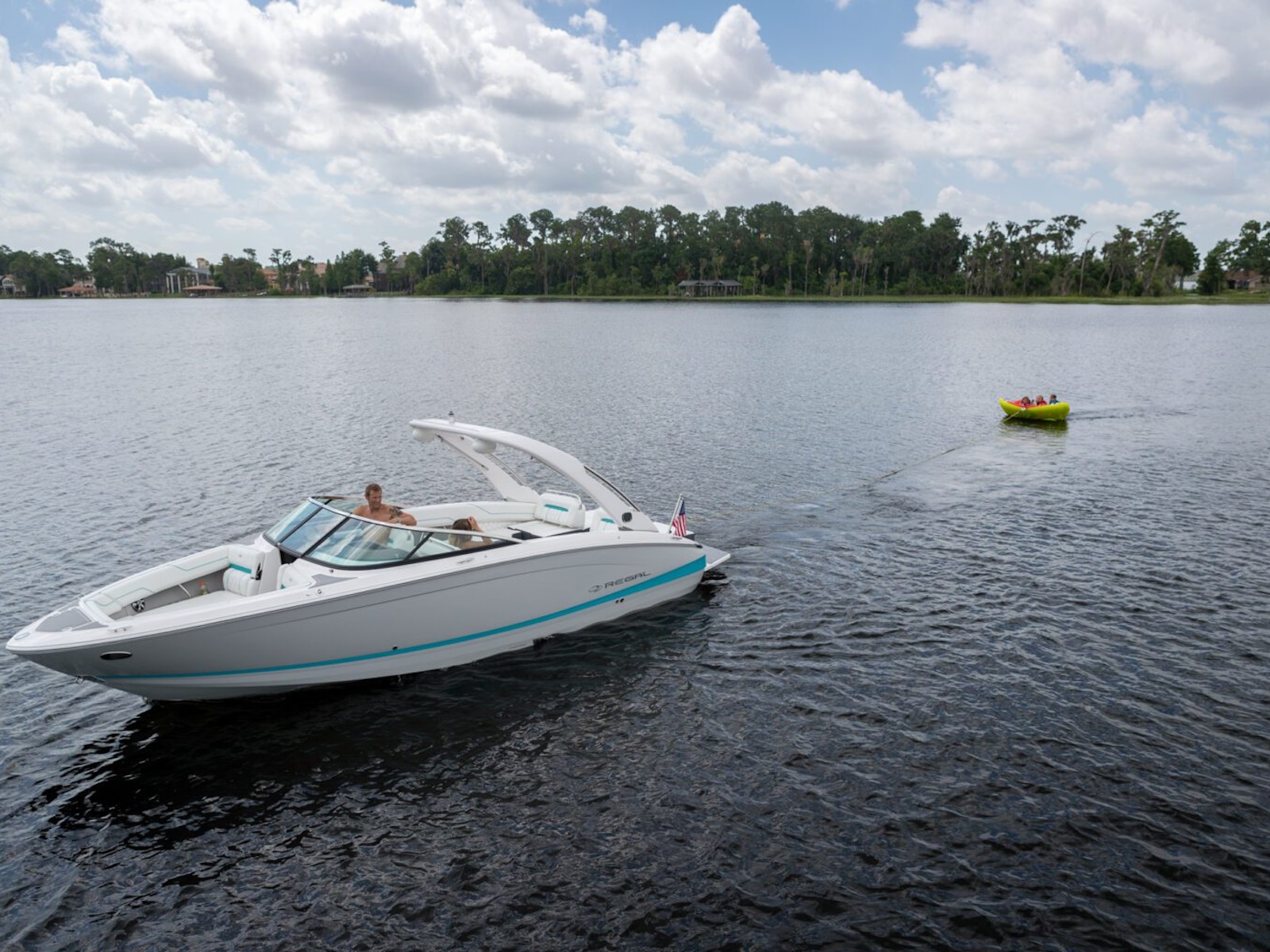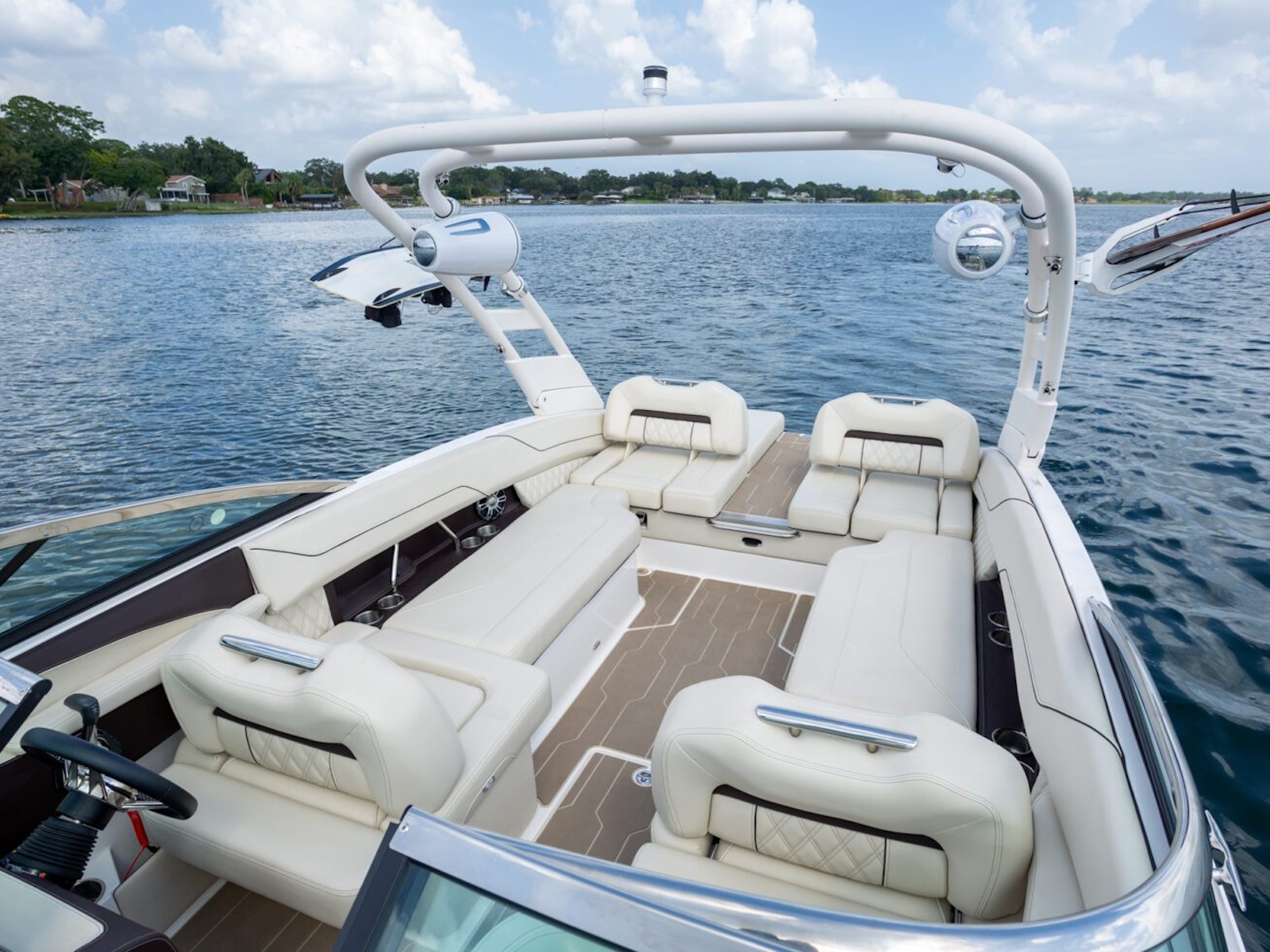 Capable of both leisure and adventure, the Regal LS6 is the ultimate balance of style, comfort and versatility. Kick back and relax with your guests anywhere as ample room to spread out can be found in the versatile bow itself, the lounging area of the transom, or even at the helm in the captain and co-captain chairs. The Regal LS6 makes it easy for everyone on board to enjoy the thoughtful, innovative features that take your day to the next level.