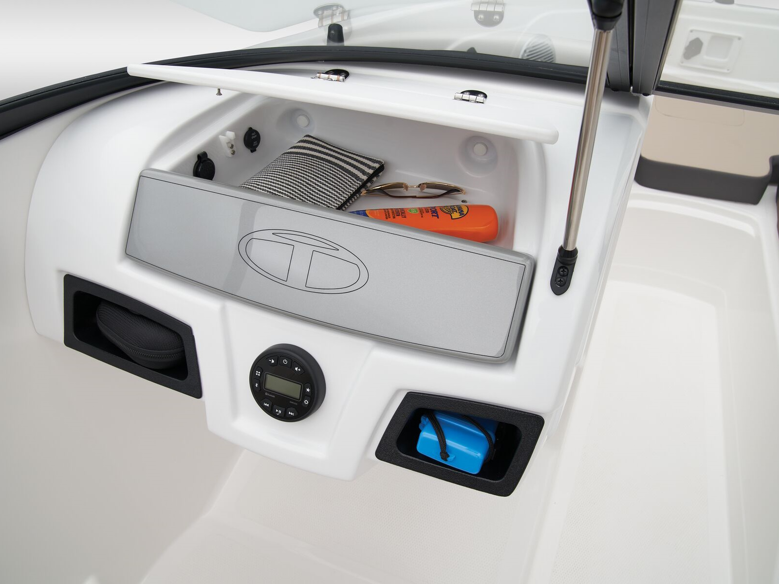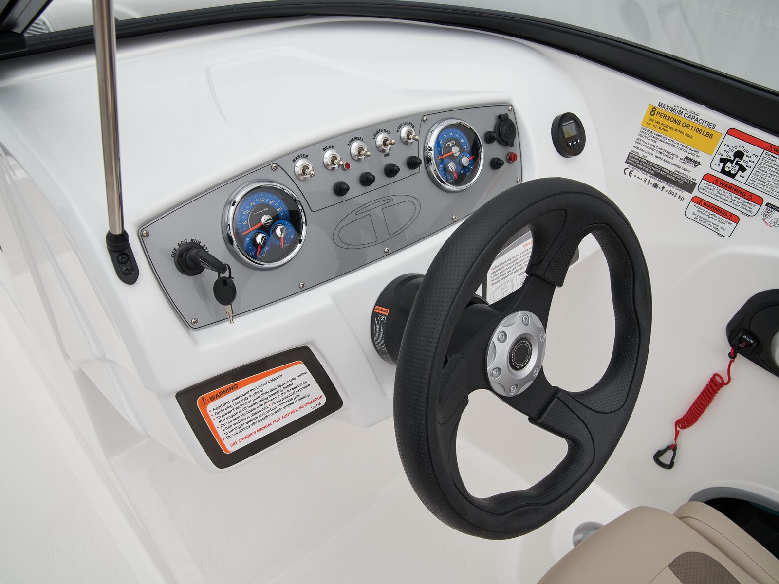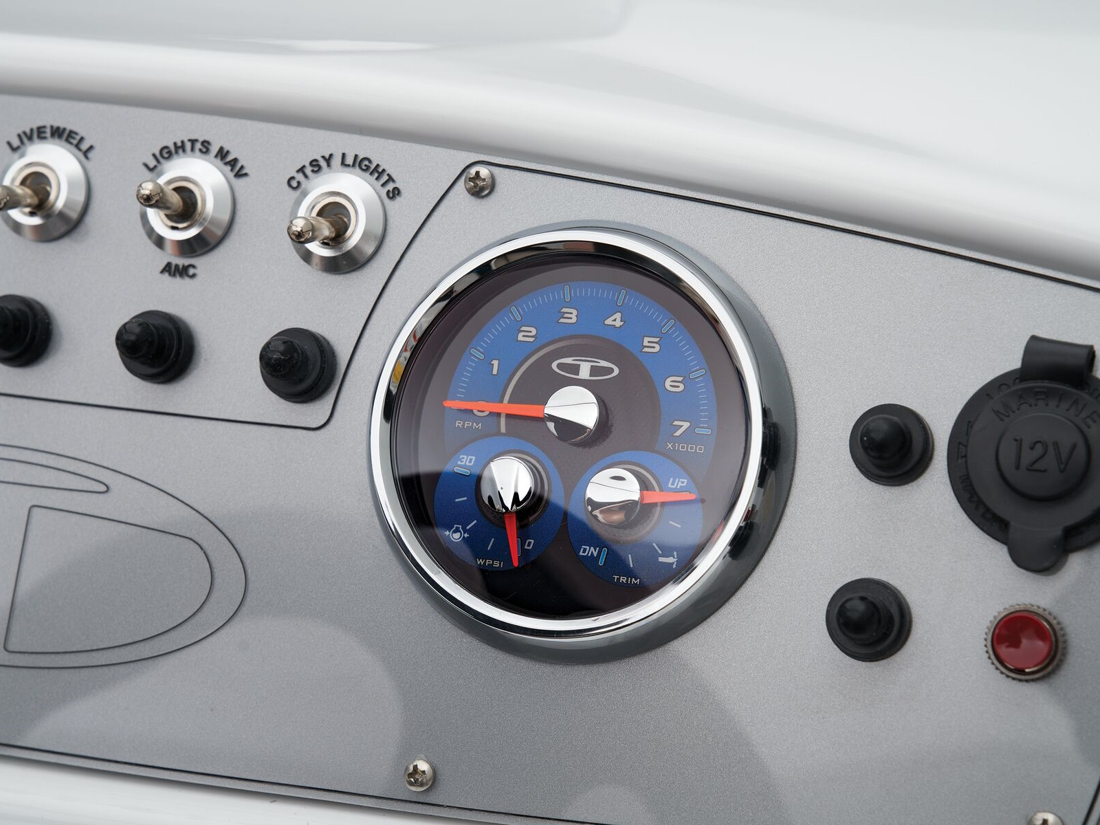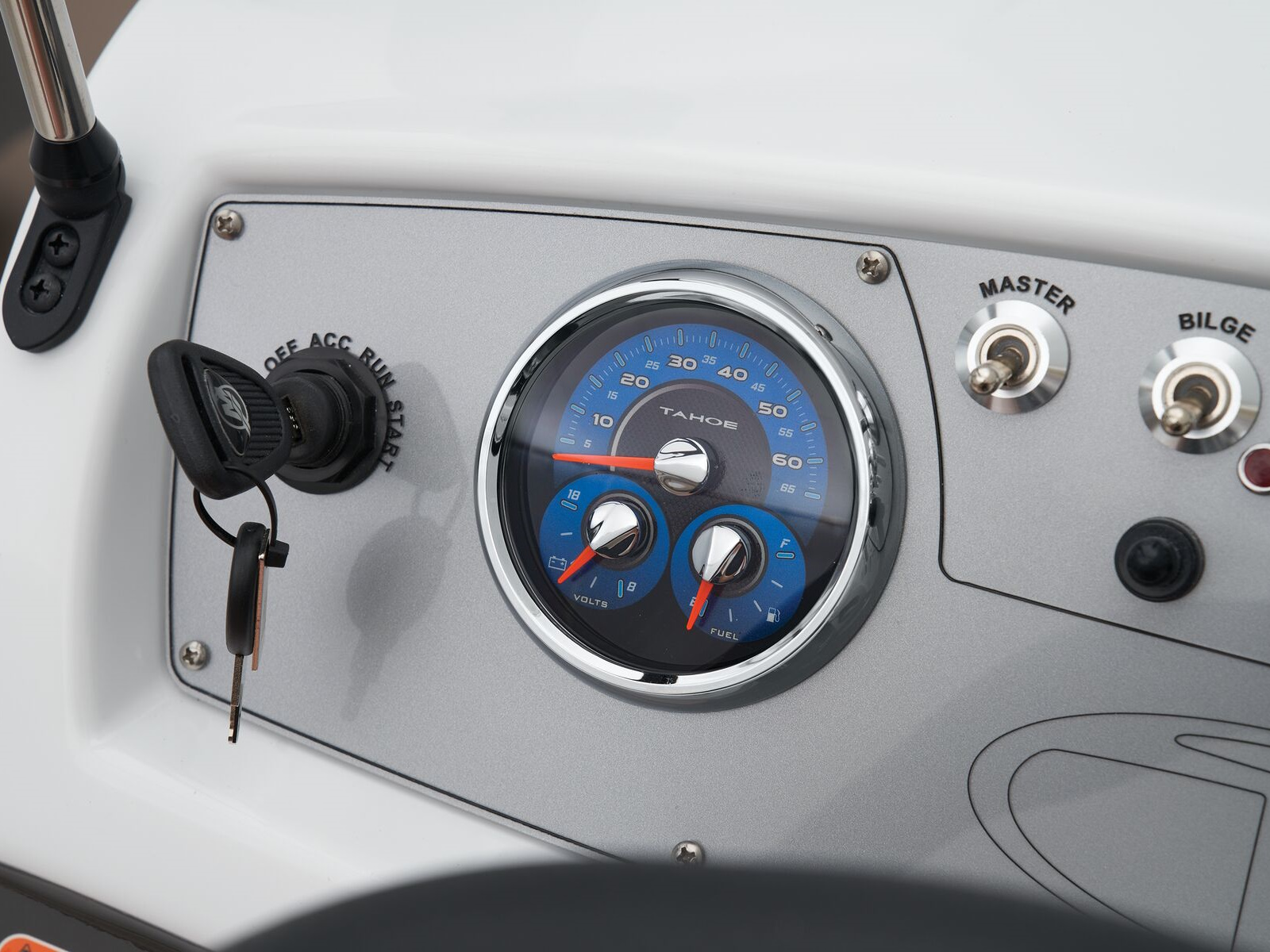 - Helm console w/speedometer, tachometer, fuel gauge, trim gauge, water pressure gauge & voltmeter