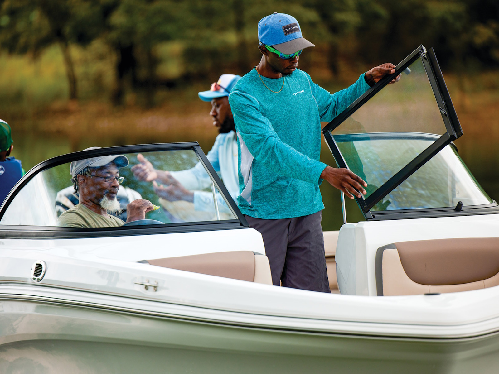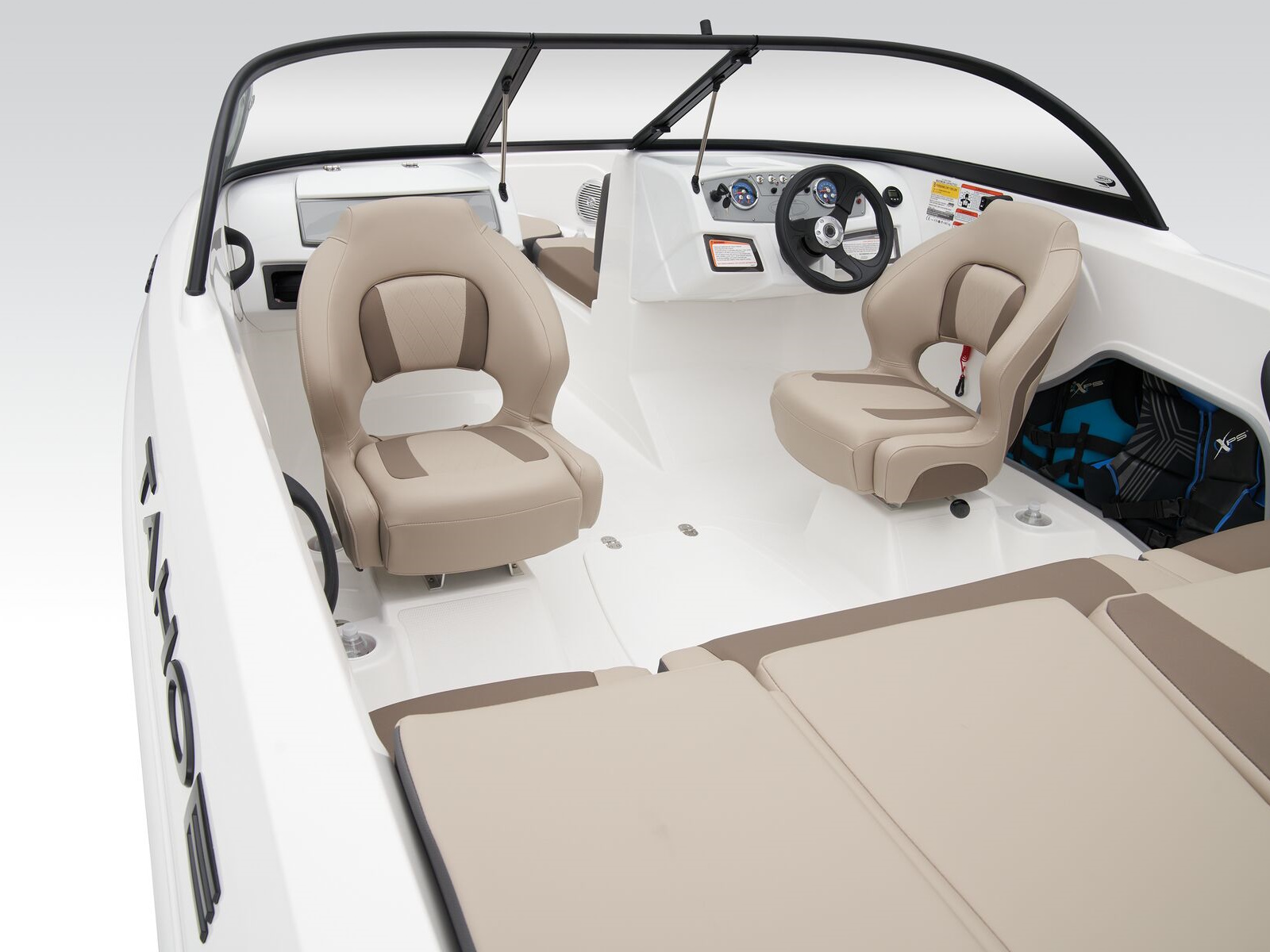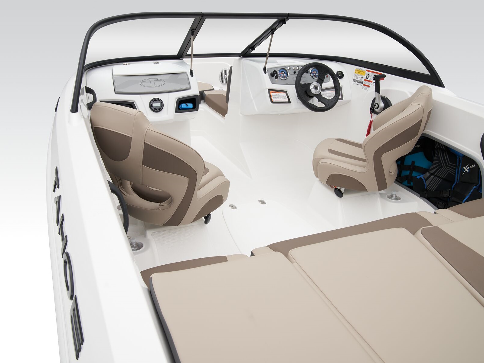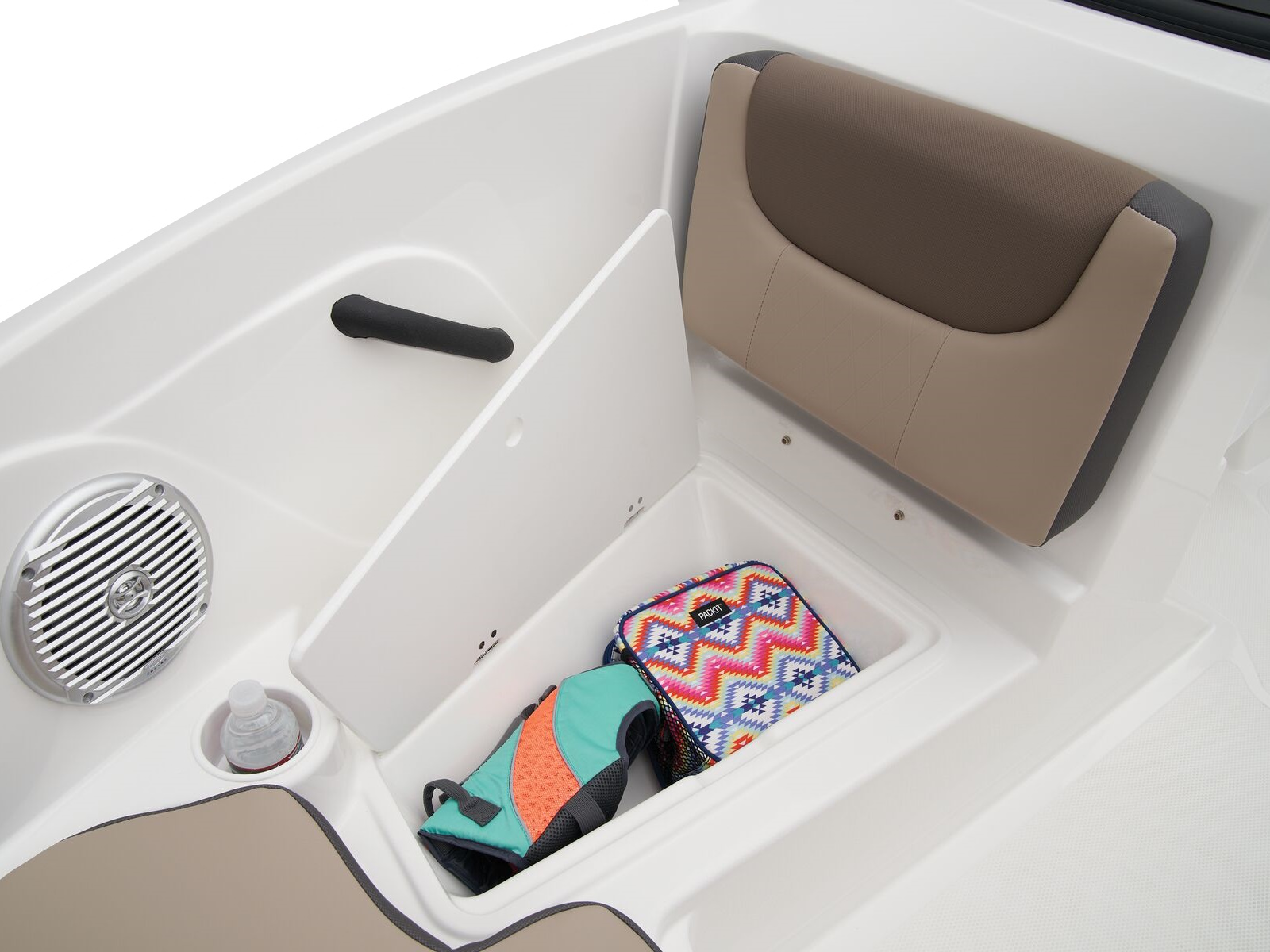 A bevy of storages perfect for skis, tackle, or both are throughout while an optional Fishing Package gets you a rugged Minn Kota® trolling motor, fishing seats, a bow fishfinder and more for enhanced capability and a great value.