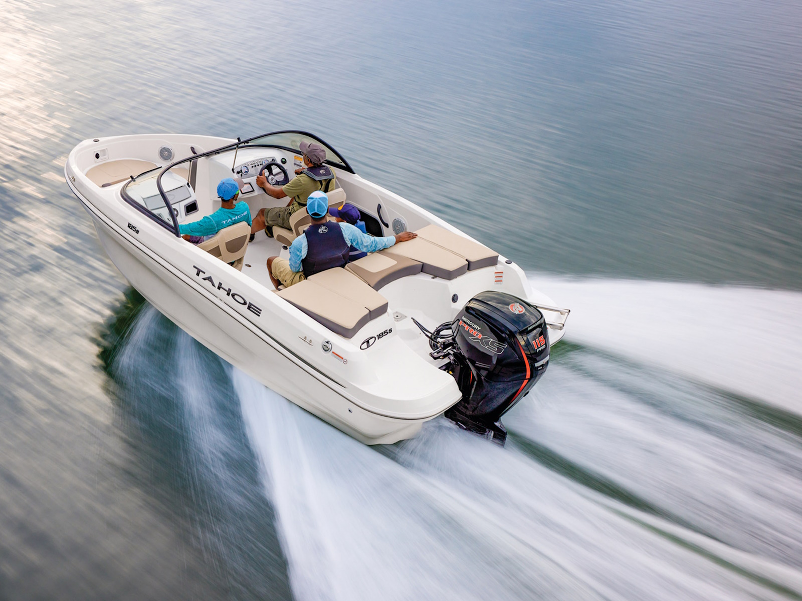 The TAHOE® 185 S is an ultra-versatile runabout package that’s nimble size is complemented by spirited performance delivered by way of Mercury® power and handling is rock solid thanks to smooth hydraulic steering.