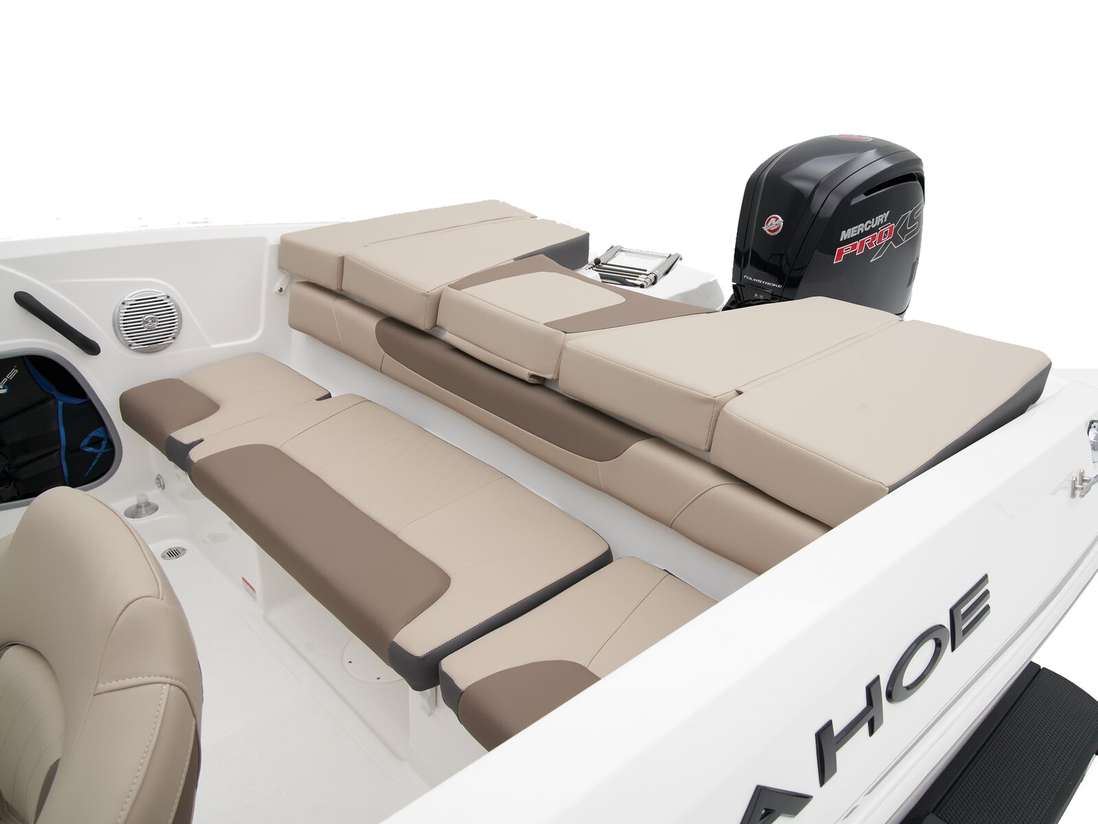 - Aft full-width padded sundeck w/removable cushion, access to step-thru transom & storage below, including ski rope holder