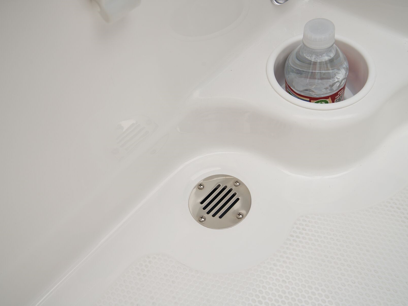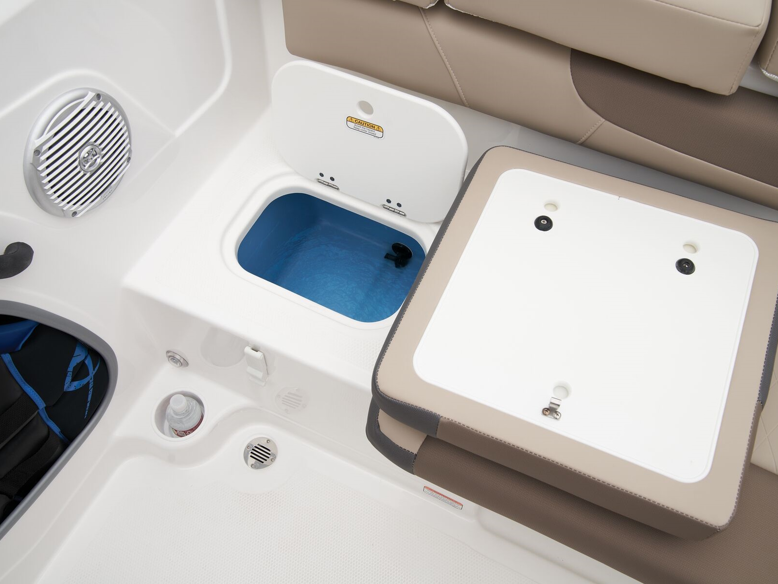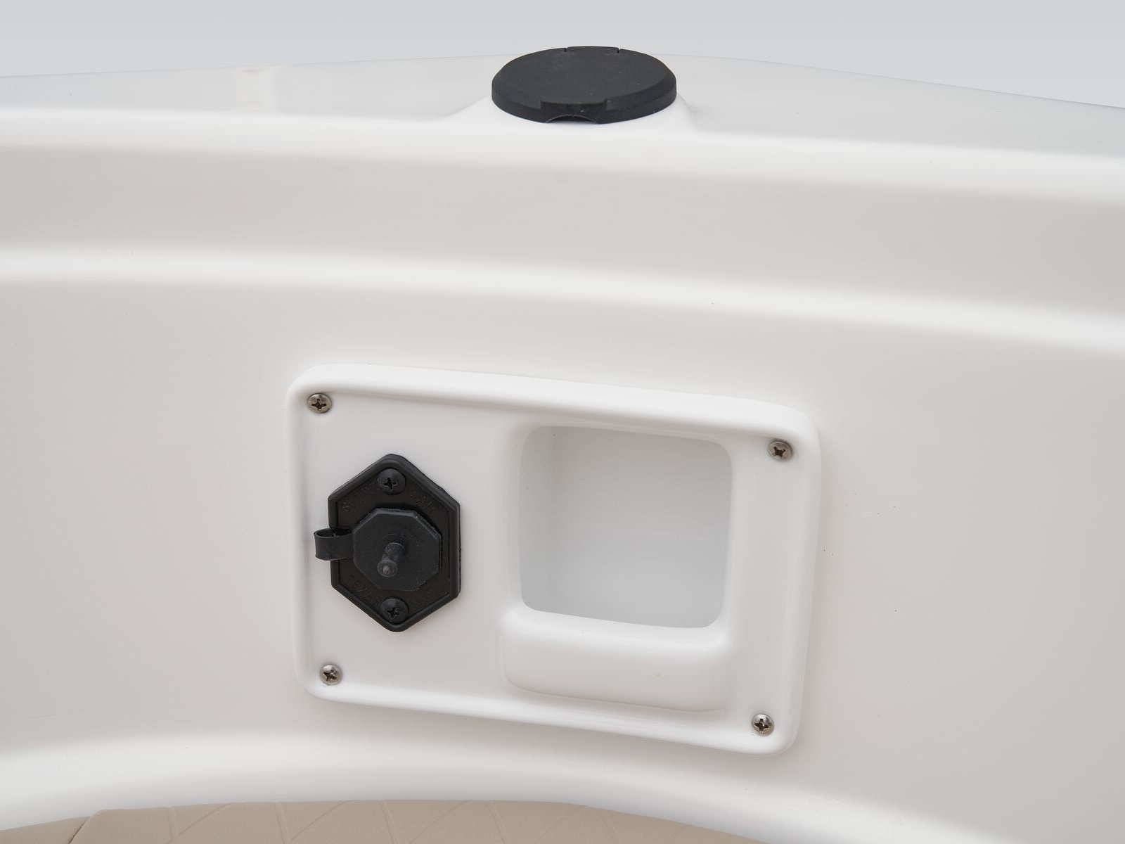 - 10-gal. (37.85 L) plumbed, insulated & aerated livewell w/500 GPH (1,892.71 LPH) pump, adjustable spray head & overflow drain