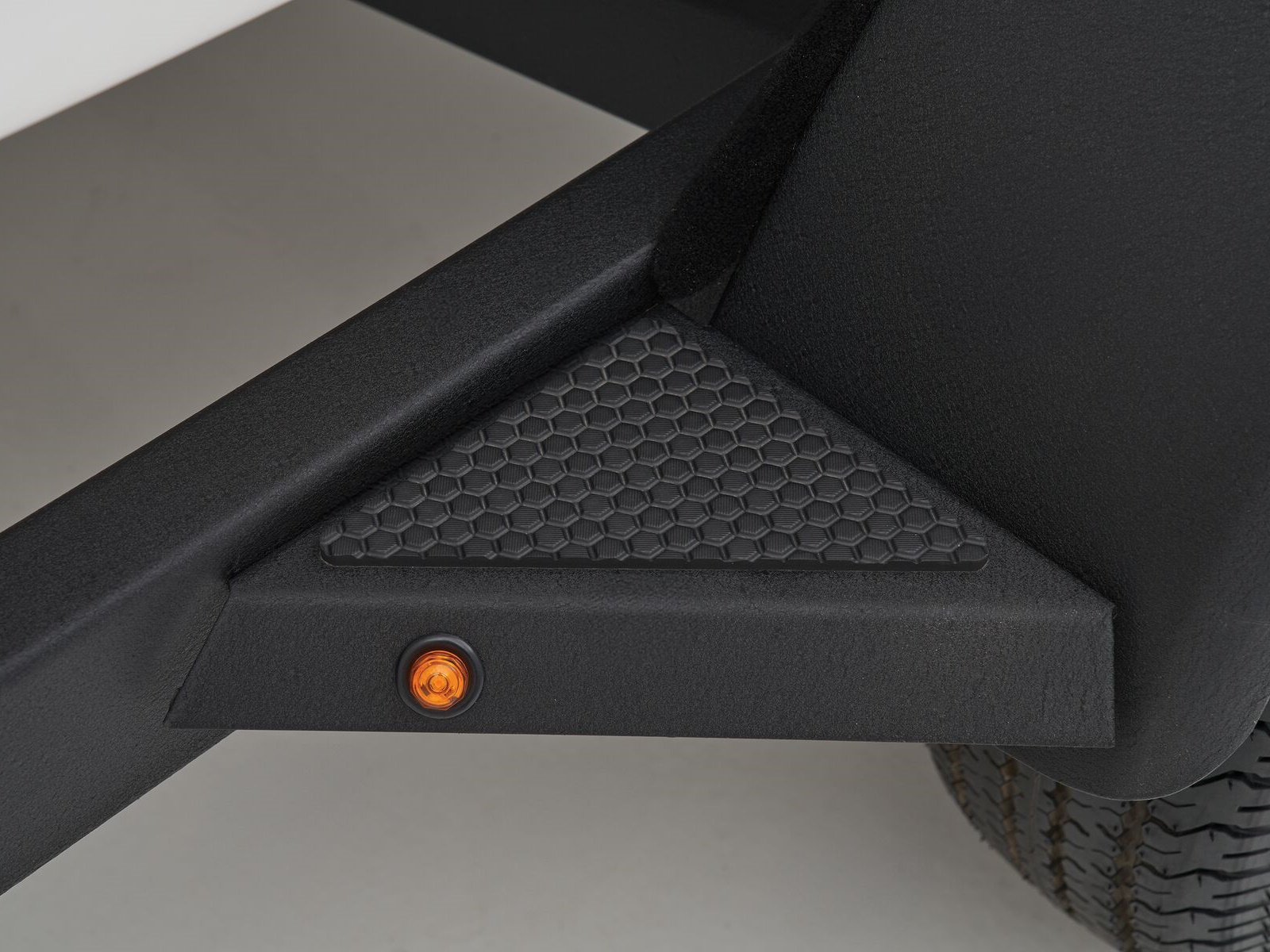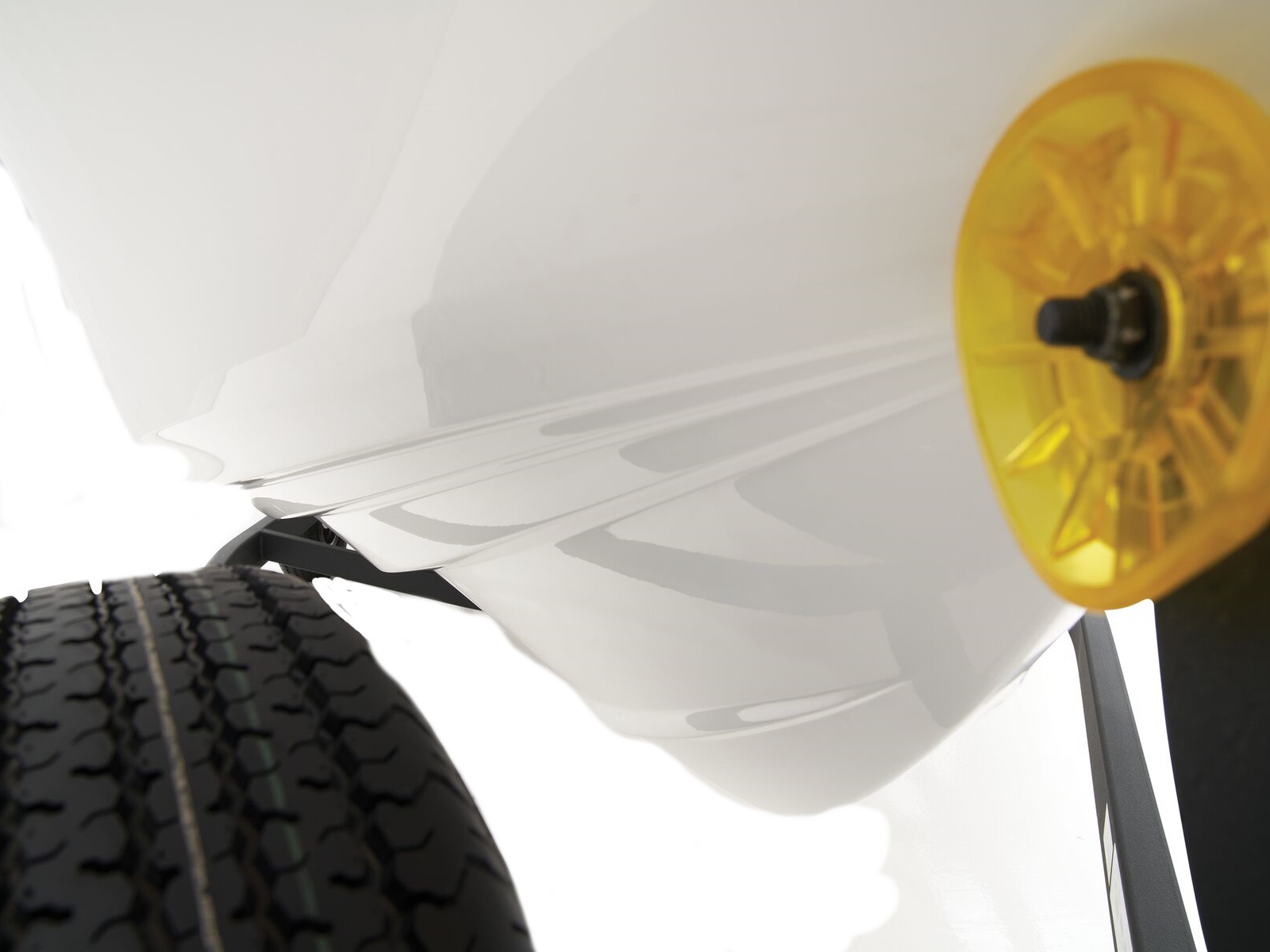 - Custom-fit, single-axle trailer powdercoated w/GALVASHIELD® Impact corrosion & chip protection for improved durability