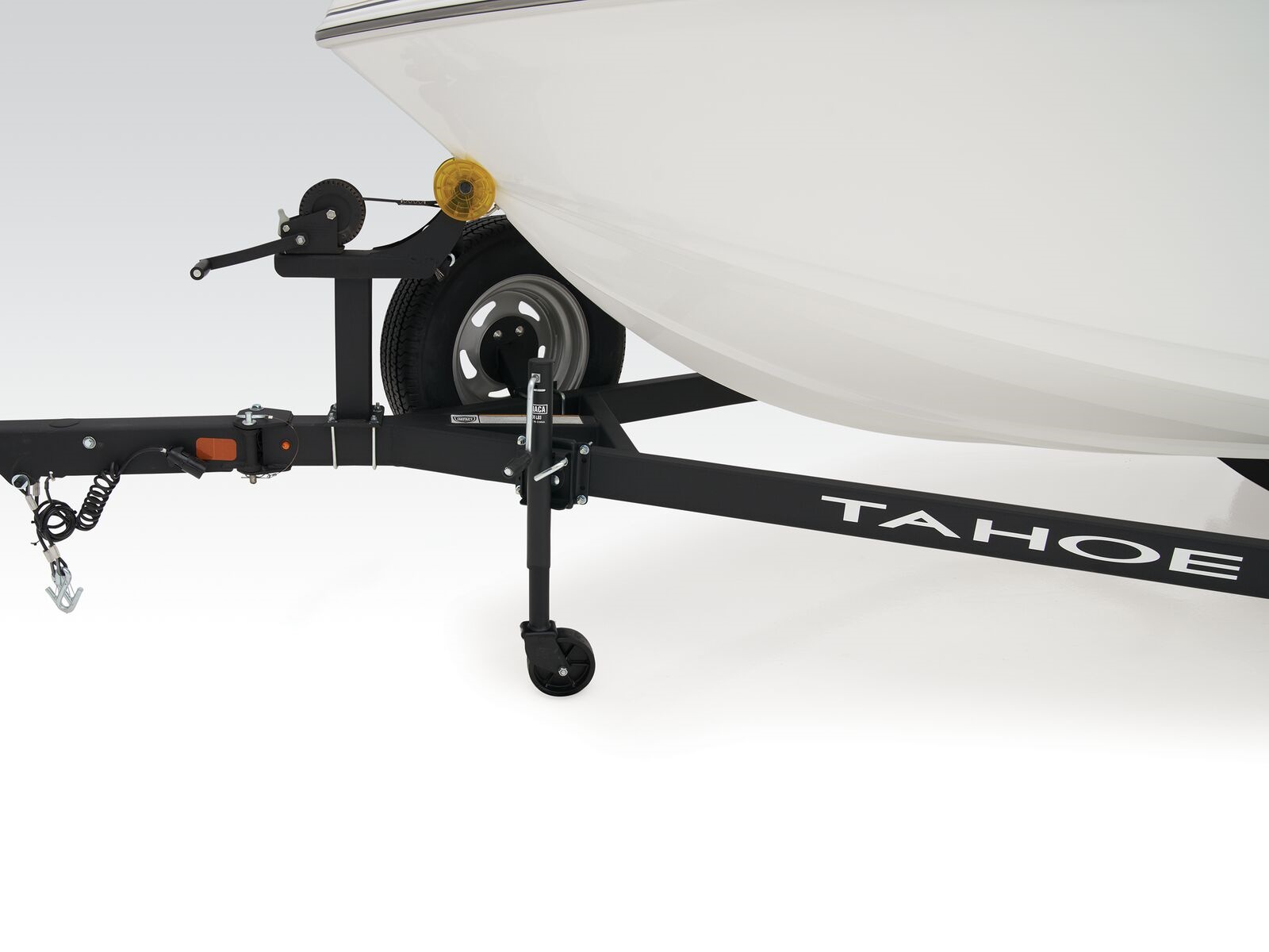 - Heavy-duty winch w/nylon strap & bow safety strap