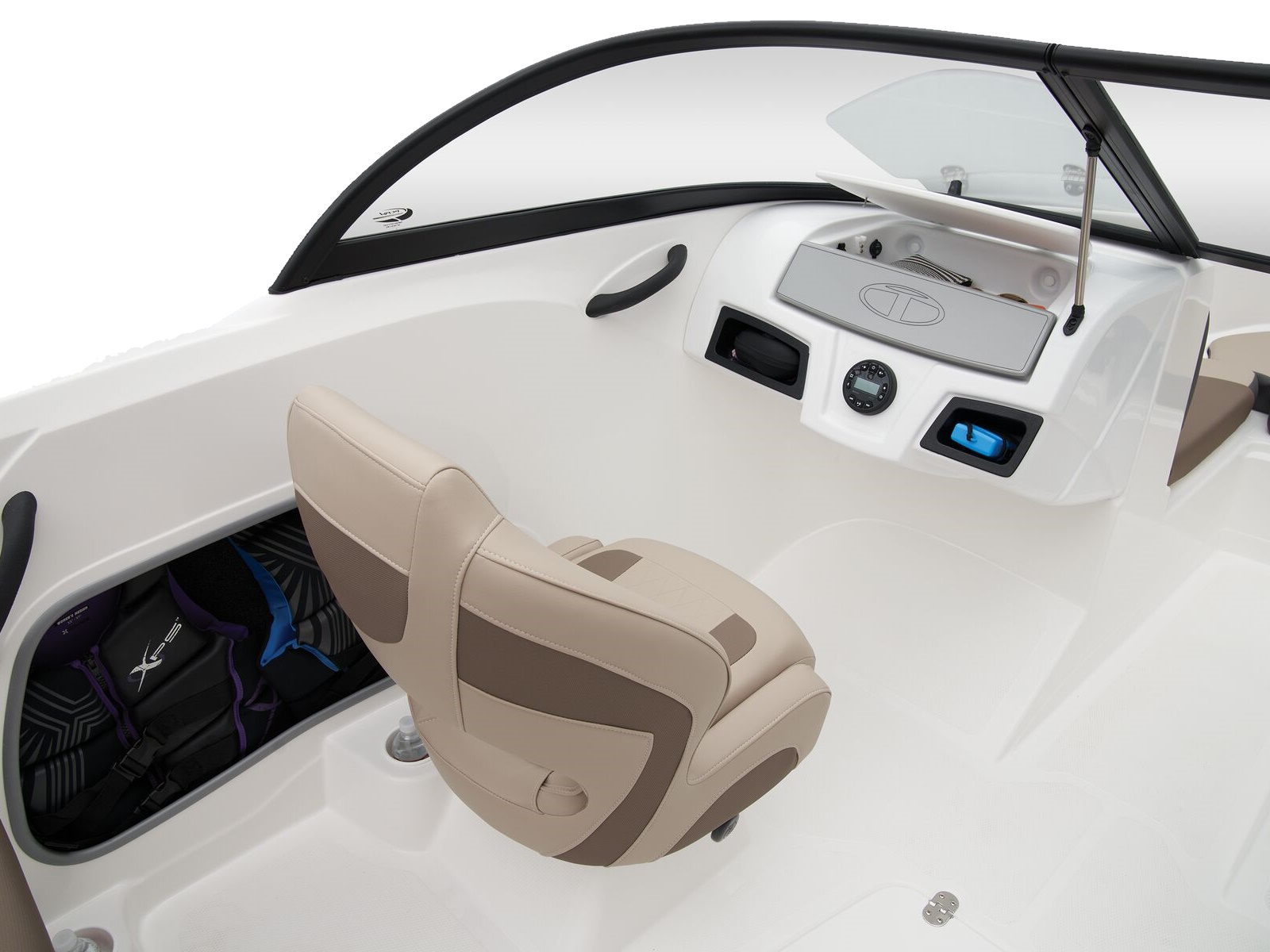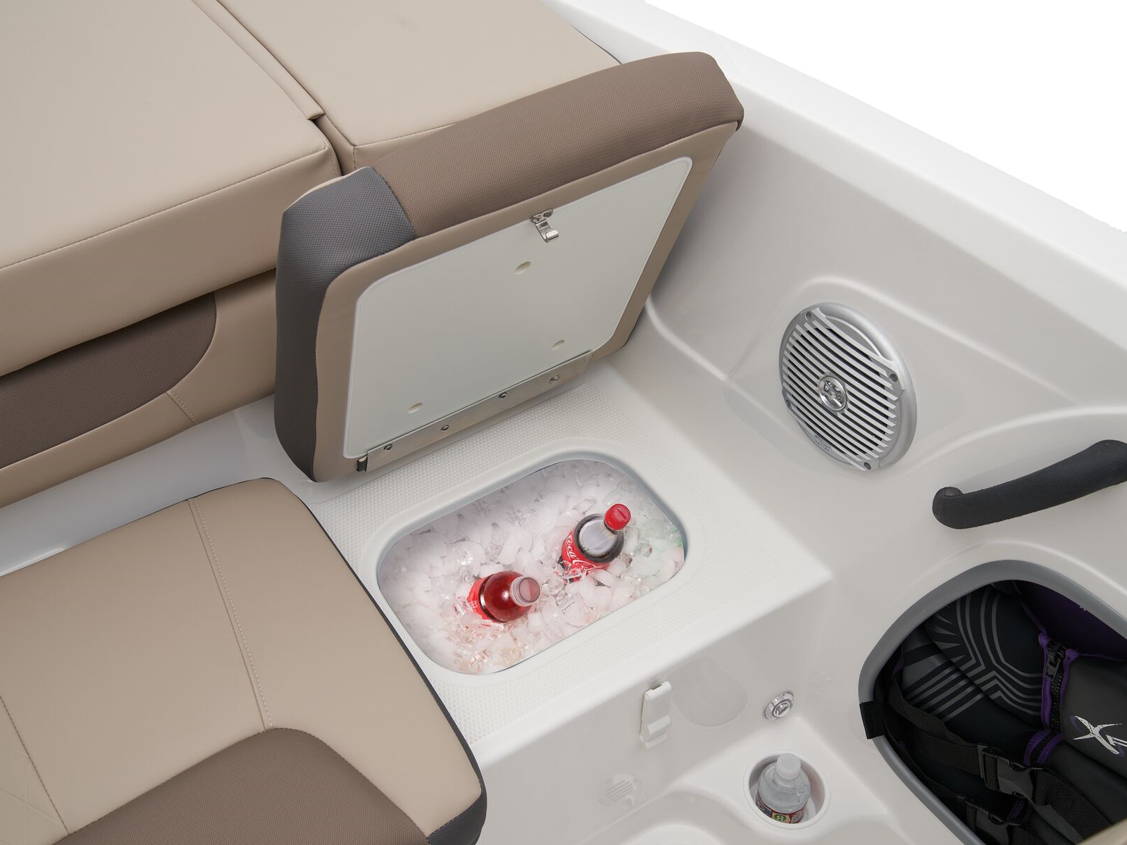 - Aft bench seat w/built-in cooler recess & insulated port & starboard storage compartments