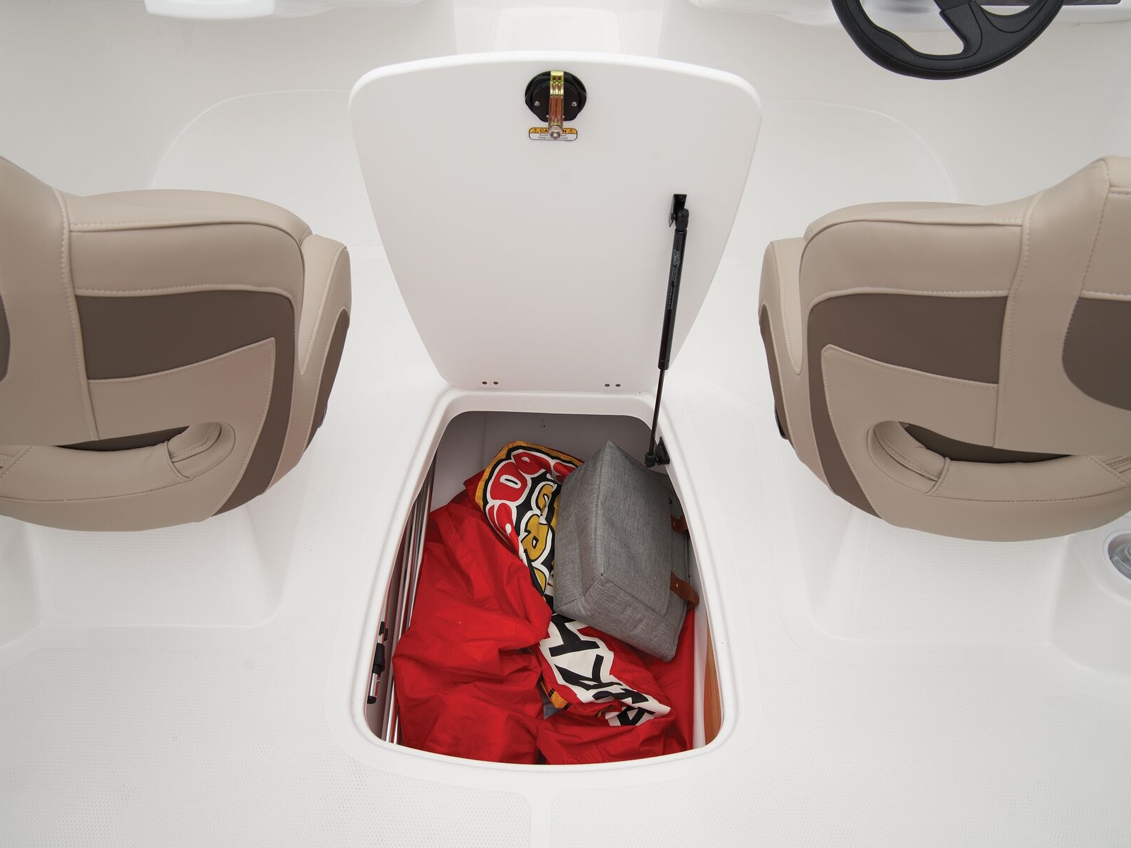 - In-floor wakeboard/ski storage compartment w/hold-open lid assist