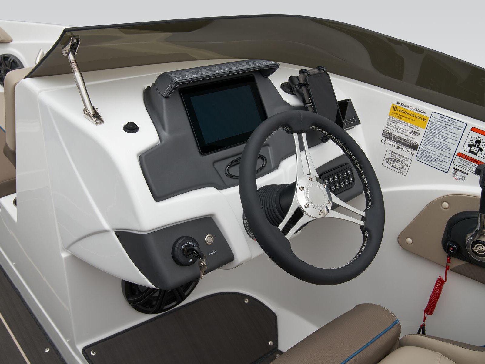 This standard 8” multi-function/multi-color touchscreen display keeps you in the know about your outboard’s health and performance and reads the water depth and your speed. Replacing the gauge cluster the ultrabright screen is readable in any light.