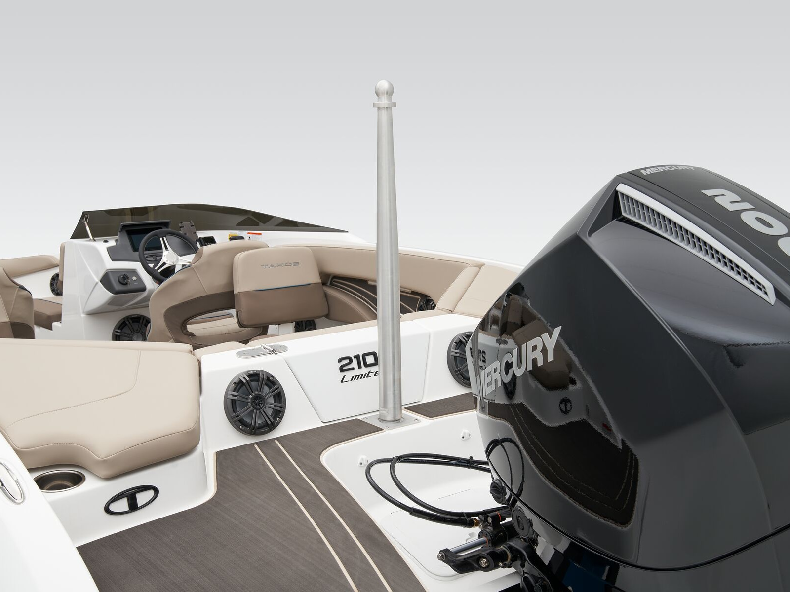 Up to 10 passengers can enjoy the ride in this year's TAHOE® 210 S. The deluxe aft U-lounge, swiveling midship seats, and front deck offer plenty of room to soak up the sun. Clever under-seat storage spaces allow you to stow everything you need for today's adventure. Take control of the adventure through the pilot's 8" touch screen that keeps tabs on data such as speed, water depth, and motor health.