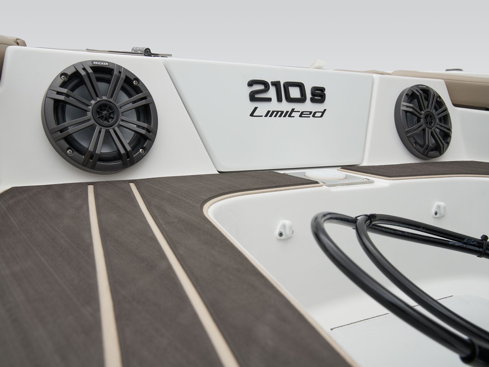 A removable ski-tow pylon makes it easy to prepare your boat for watersports. When it's time to take a break, relax on the dual aft swim platforms and play the songs of the summer through the 6-speaker Kicker® stereo with Bluetooth® compatibility. When the sun goes down, the fun goes on thanks to interior LED lighting perfect for night rides.