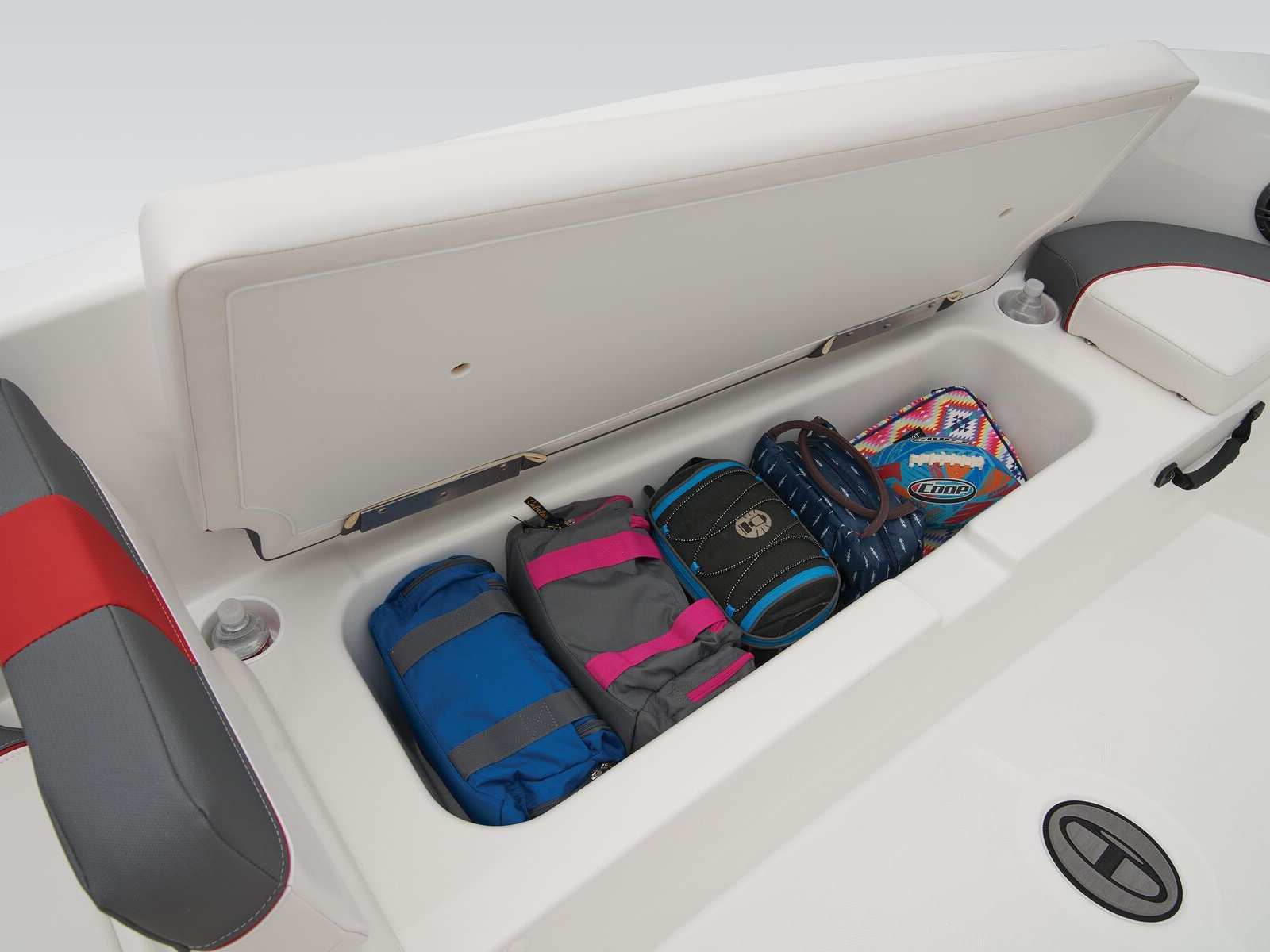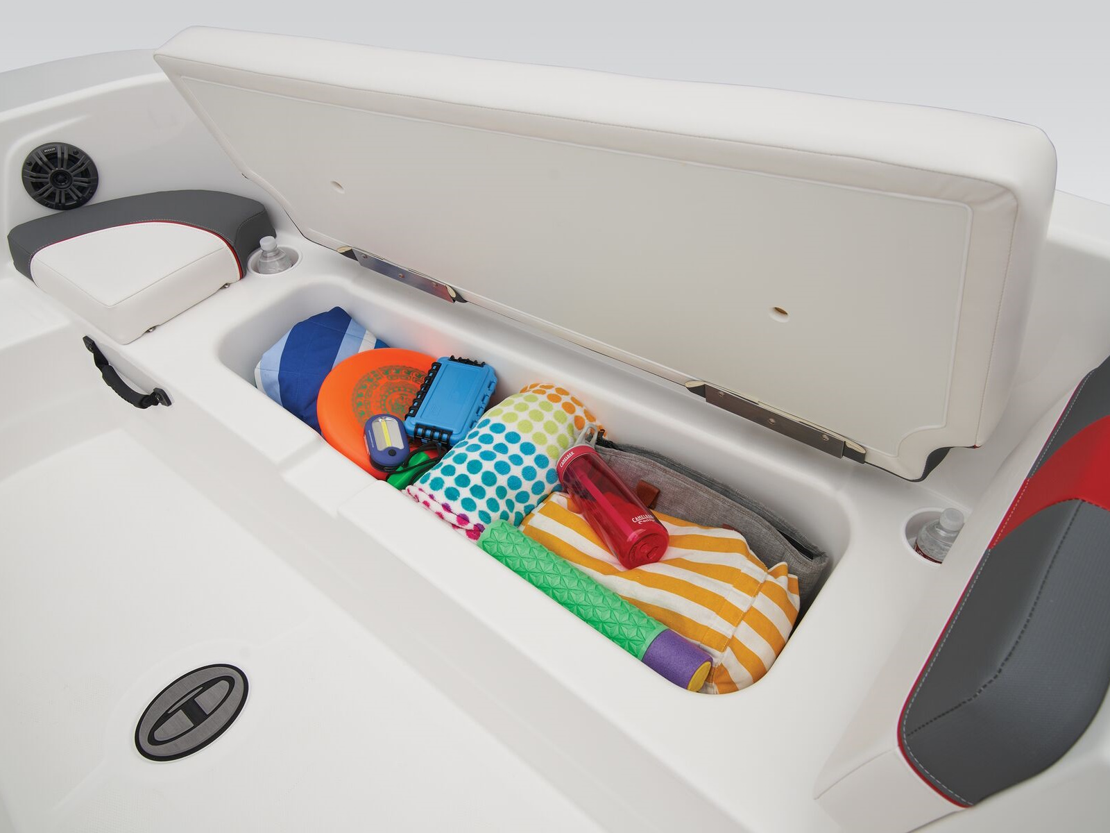 wakeboarders with the optional TurboSwing® ski tow bar. Ample in-floor storage keeps your snacks, towels, and safety equipment secure and out of the way.