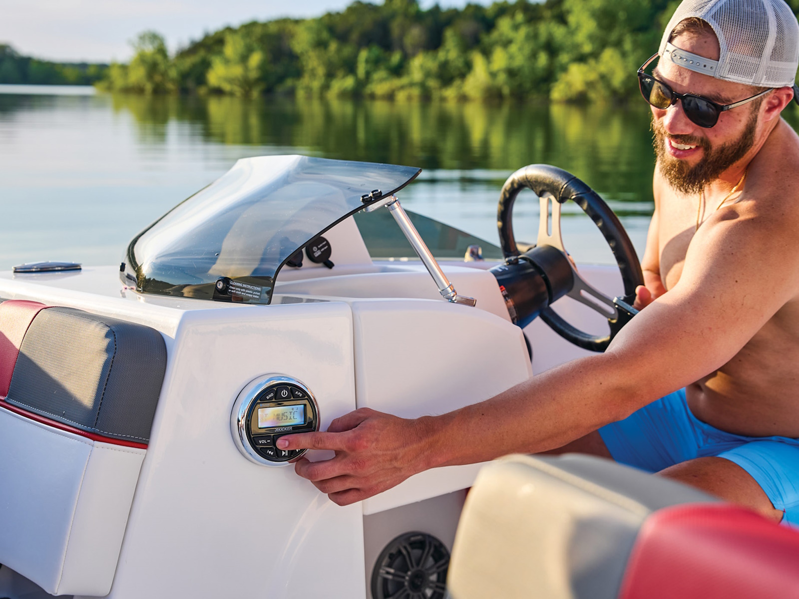 This 9-passenger midsize runabout boat is built for performance, complete with a POWERGLIDE® hull with HYDROSTEP strakes. The pilot's console features a 7" touch screen that delivers information such as motor vitals, speed, and depth. Play your adventure's soundtrack through the 4-speaker Kicker® stereo as you pull tubes, skiers, and