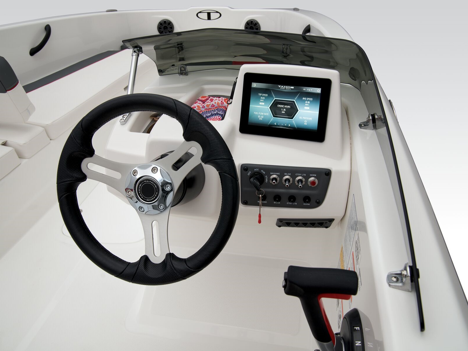 - TAHOE CRUISE™ digital touchscreen dashboard featuring a 7” (17.78 cm) multi-color & waterproof display w/high brightness for easy use in direct sunlight & w/anti-glare coating
