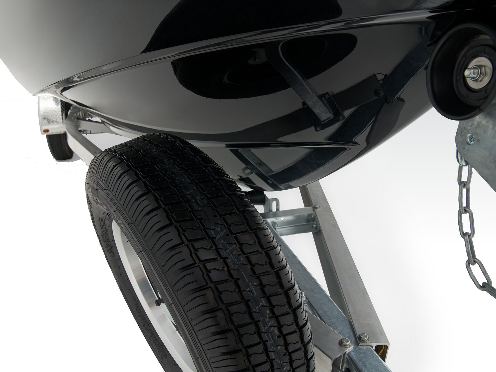 - Custom-fit, tandem-axle trailer powdercoated w/GALVASHIELD® Impact corrosion & chip protection for improved durability