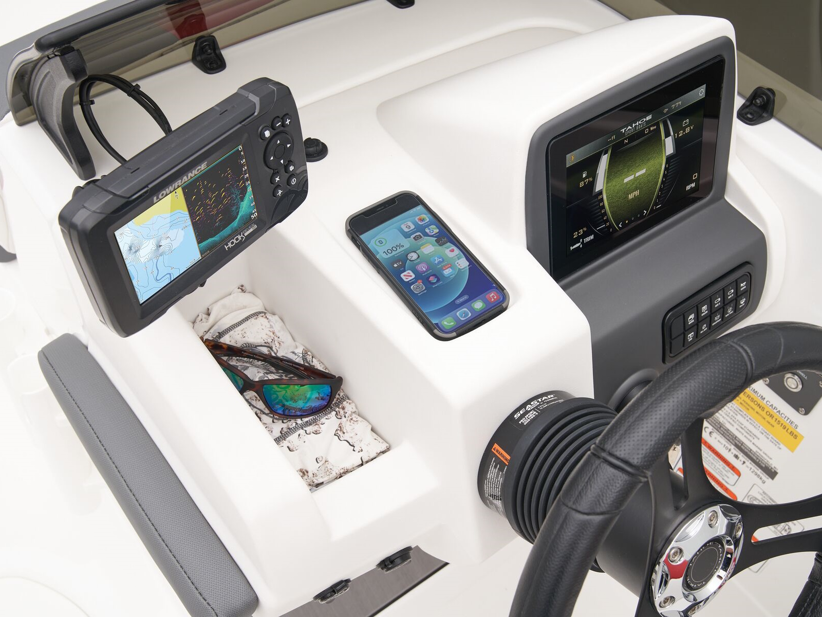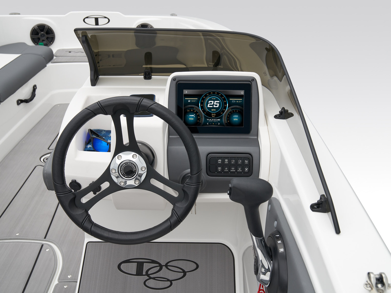 - TAHOE CRUISE™ digital touchscreen dashboard featuring an 8” (20.32 cm) multi-color & waterproof display w/high brightness for easy use in direct sunlight & w/anti-glare coating