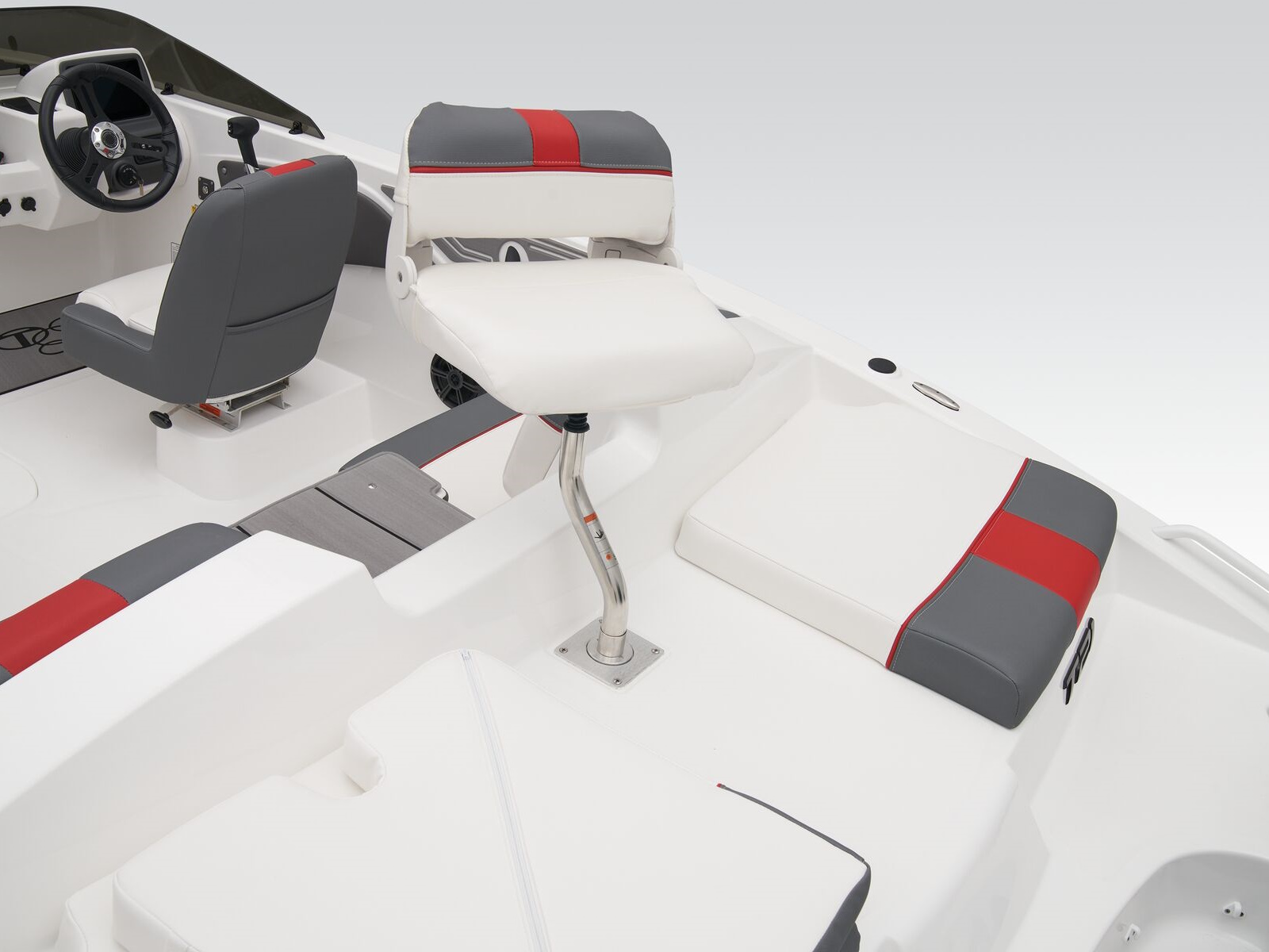 - Hinged mid-cushion for aft sunpad & fold-down seatback allows easy entry w/out stepping on upholstery