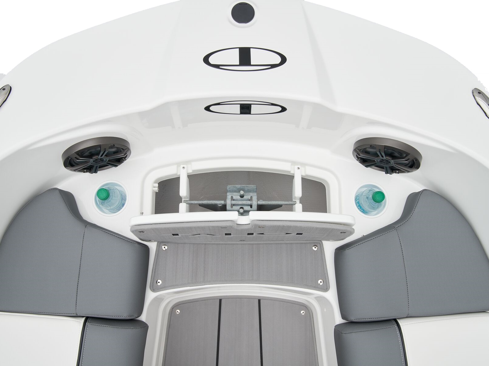 Take your places in the luxurious dual forward lounges, dual midship bucket seats, and the aft 3-across bench. You’ll find space for your gear and supplies under the seats and sun-pad cushions, consoles, and the in-floor storage compartment. When you’ve found a cove you want to explore, the anchor locker, dual aft swim platforms, and telescoping ladder make diving into the waters and getting back into the boat easy.