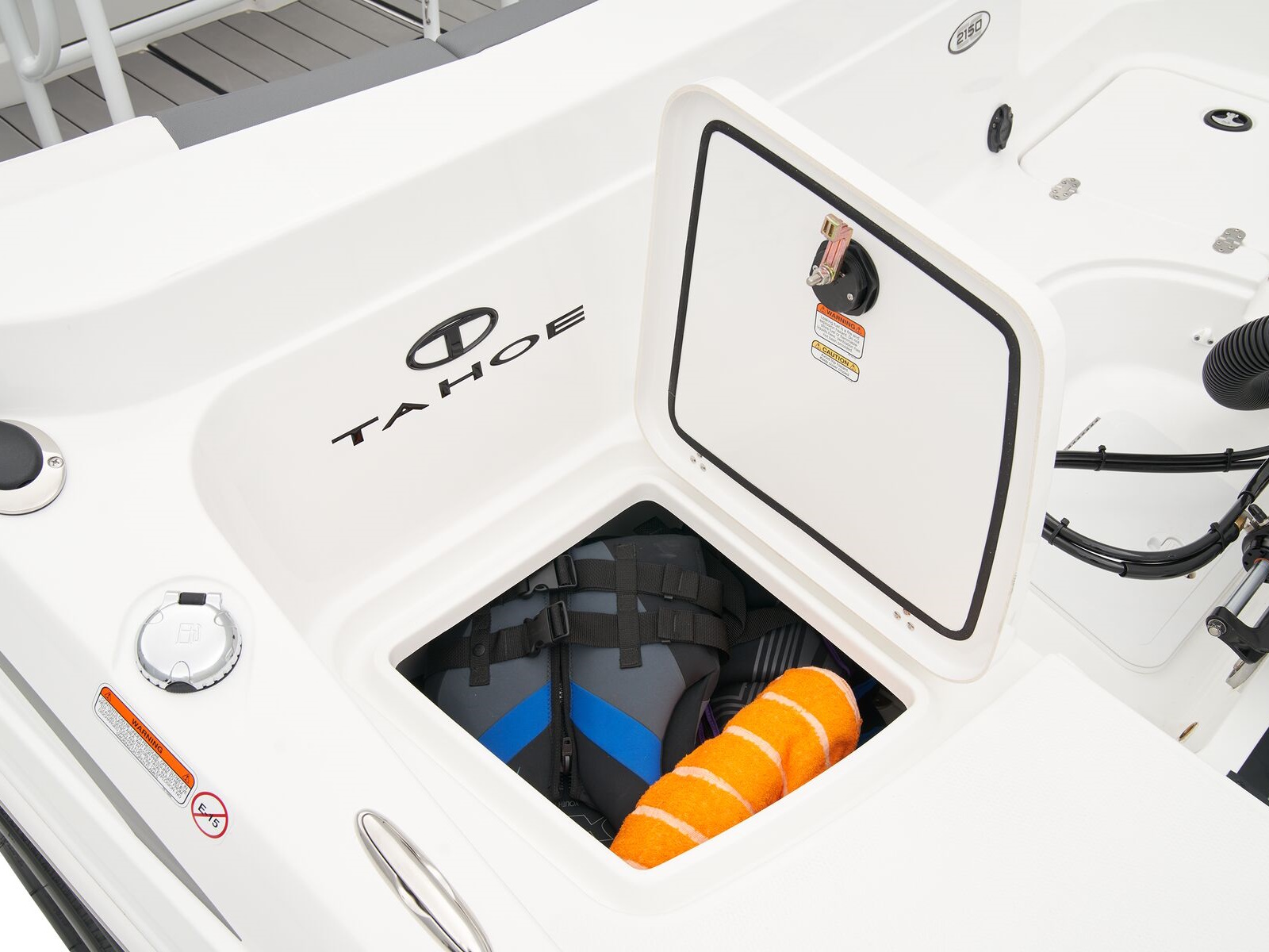 - In-floor wakeboard/ski/trolling motor storage compartment w/hold-open lid assist