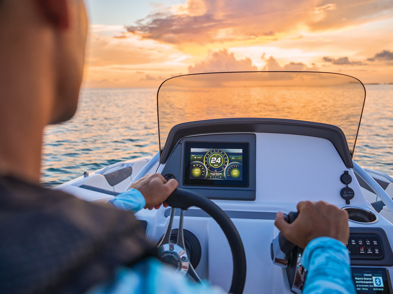 - TAHOE CRUISE™ digital touchscreen dashboard featuring an 8” (20.32 cm) multi-color & waterproof display w/high brightness for easy use in direct sunlight & w/anti-glare coating