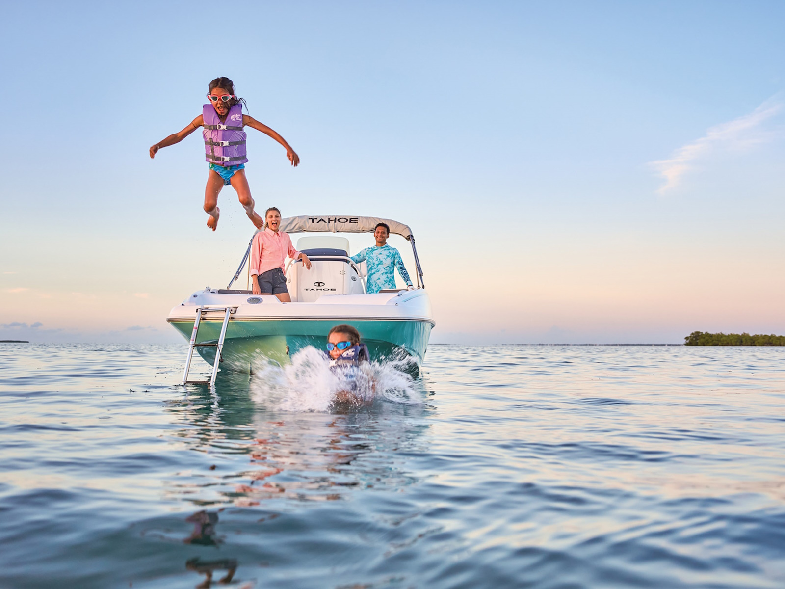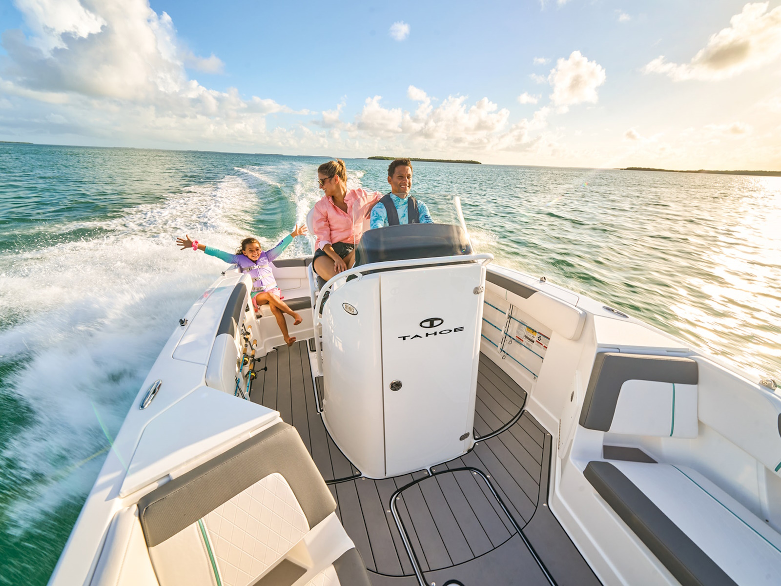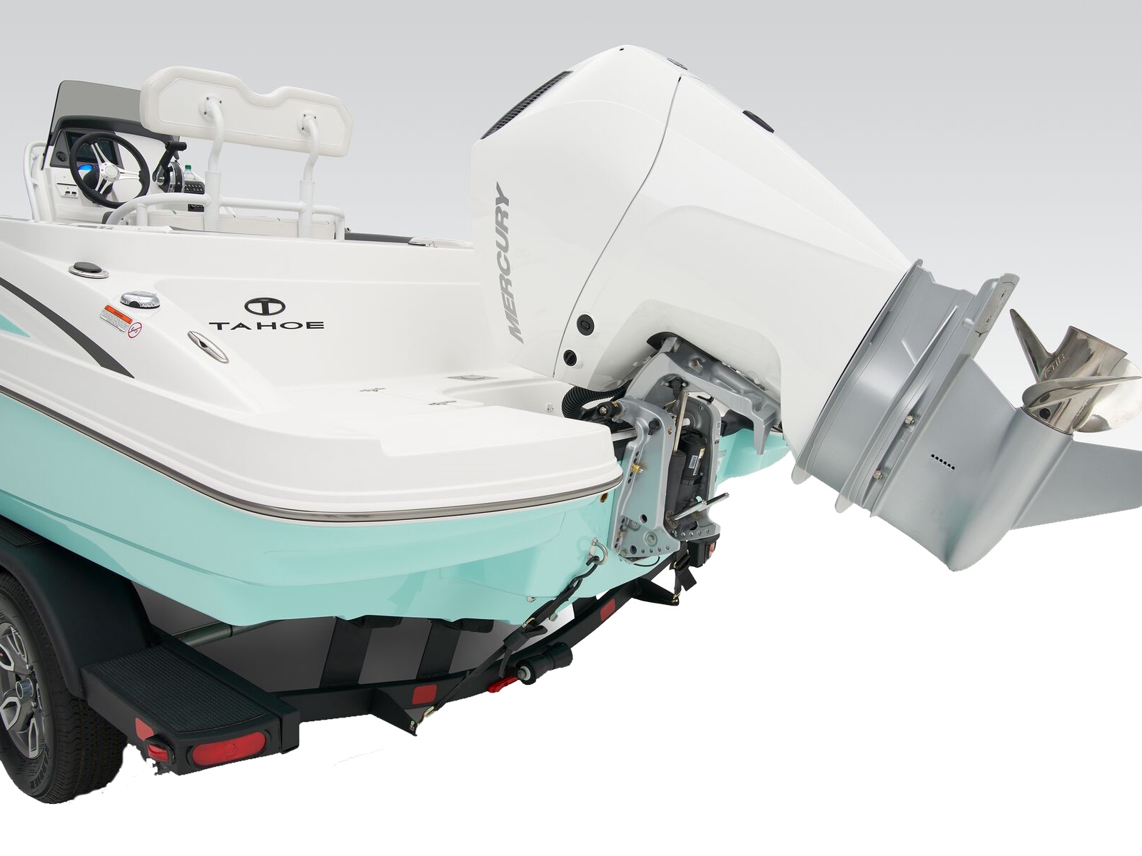 The 2025 TAHOE® 2150 CC comes standard with a 150hp Mercury® XL Pro XS® FourStroke outboard motor and has a recommended maximum 225hp rating.