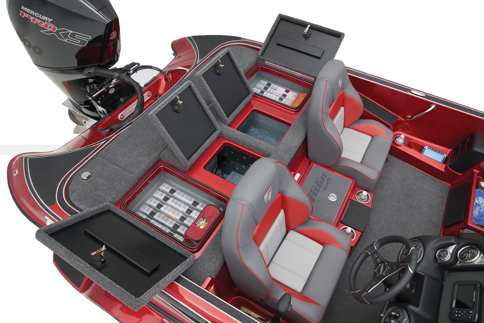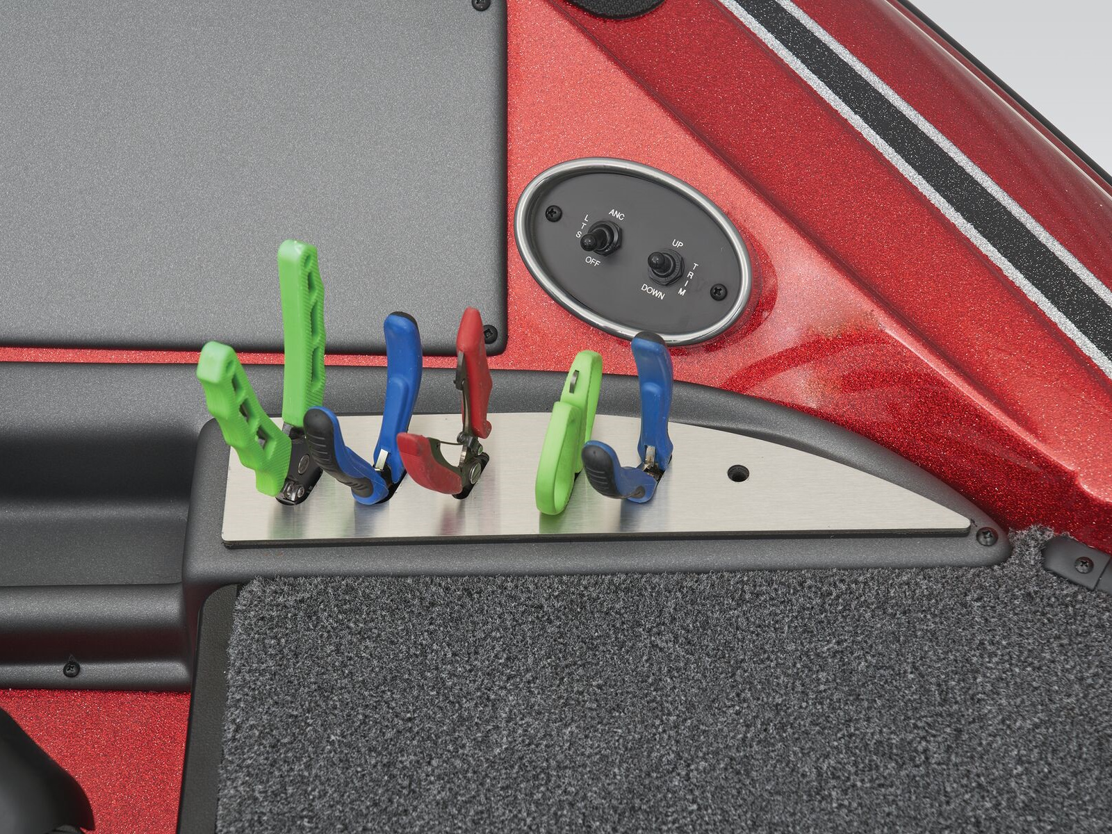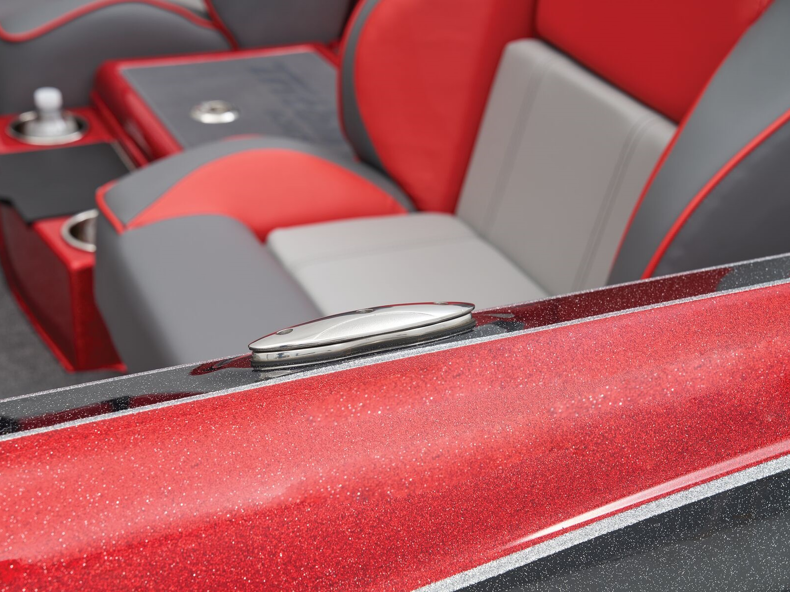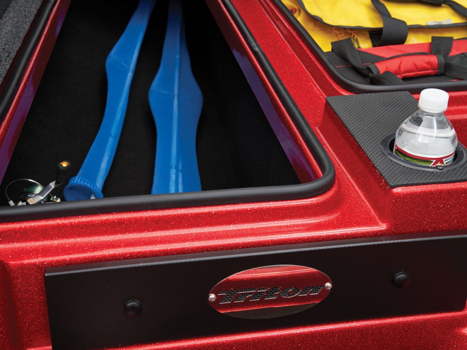Big-time performance at an affordable price—that’s the 18 TrX. Less is more with this compact predator that stands ready to take on any challenge. An ultra-stable beam of 94"—just an inch less than our biggest model—creates enormous deck space above and abundant storage below. An integrated ice chest, spacious port and starboard rod lockers, massive center storage and room for stacking utility boxes in rear compartments make this rig fish bigger.