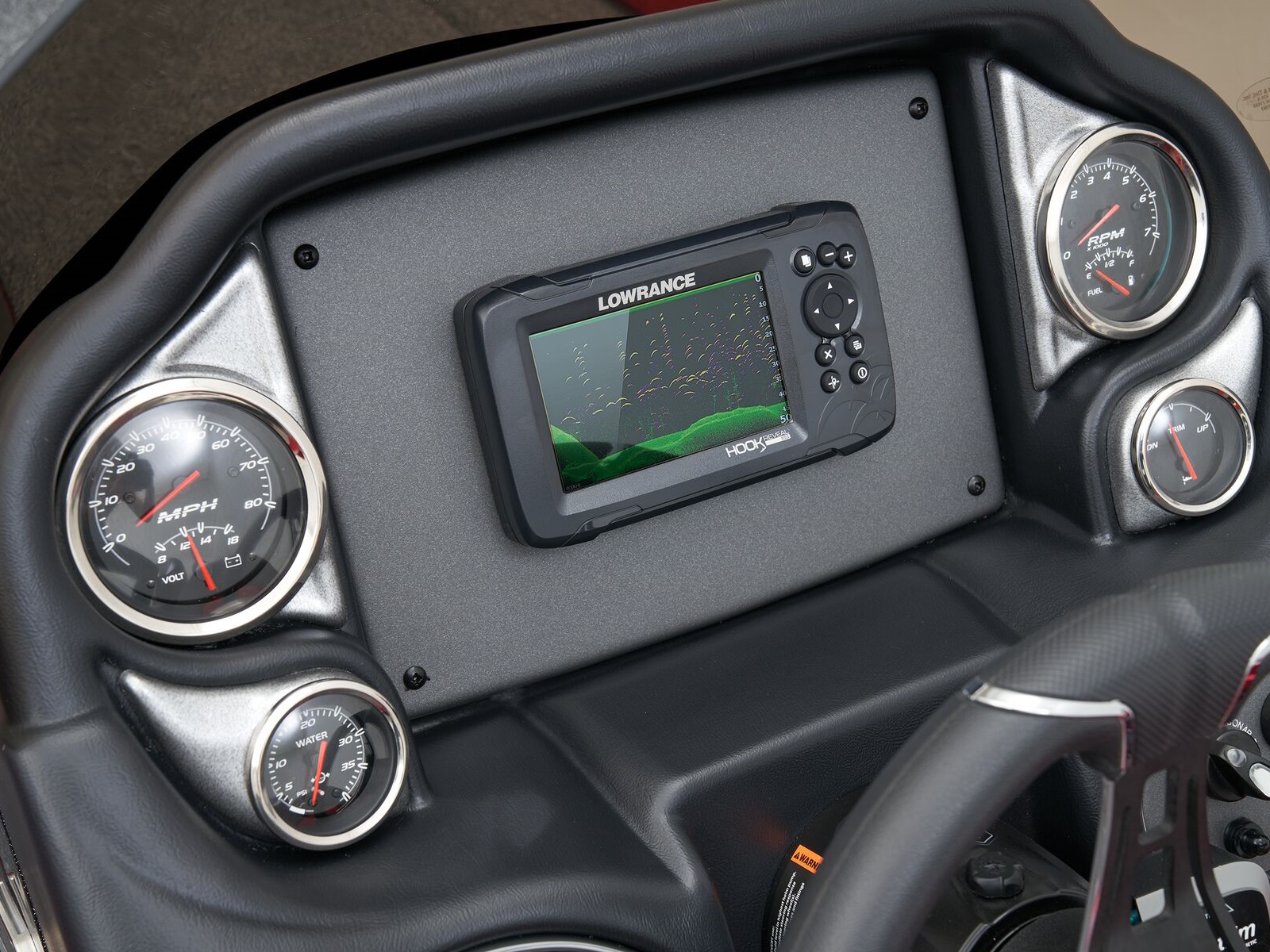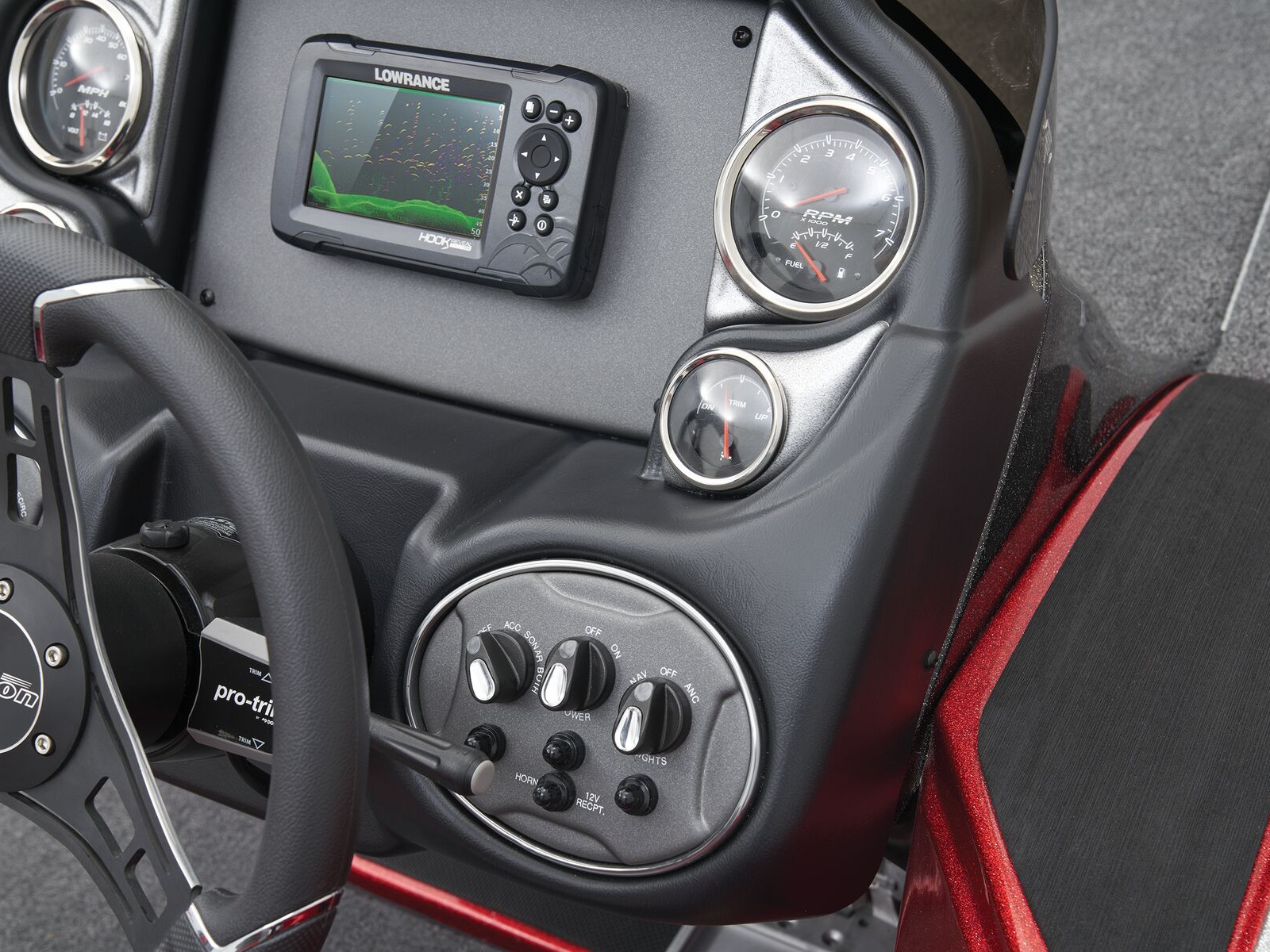 - Padded Dash with Tachometer, Speedometer, Voltmeter, Fuel, Trim and Water-Pressure Gauge