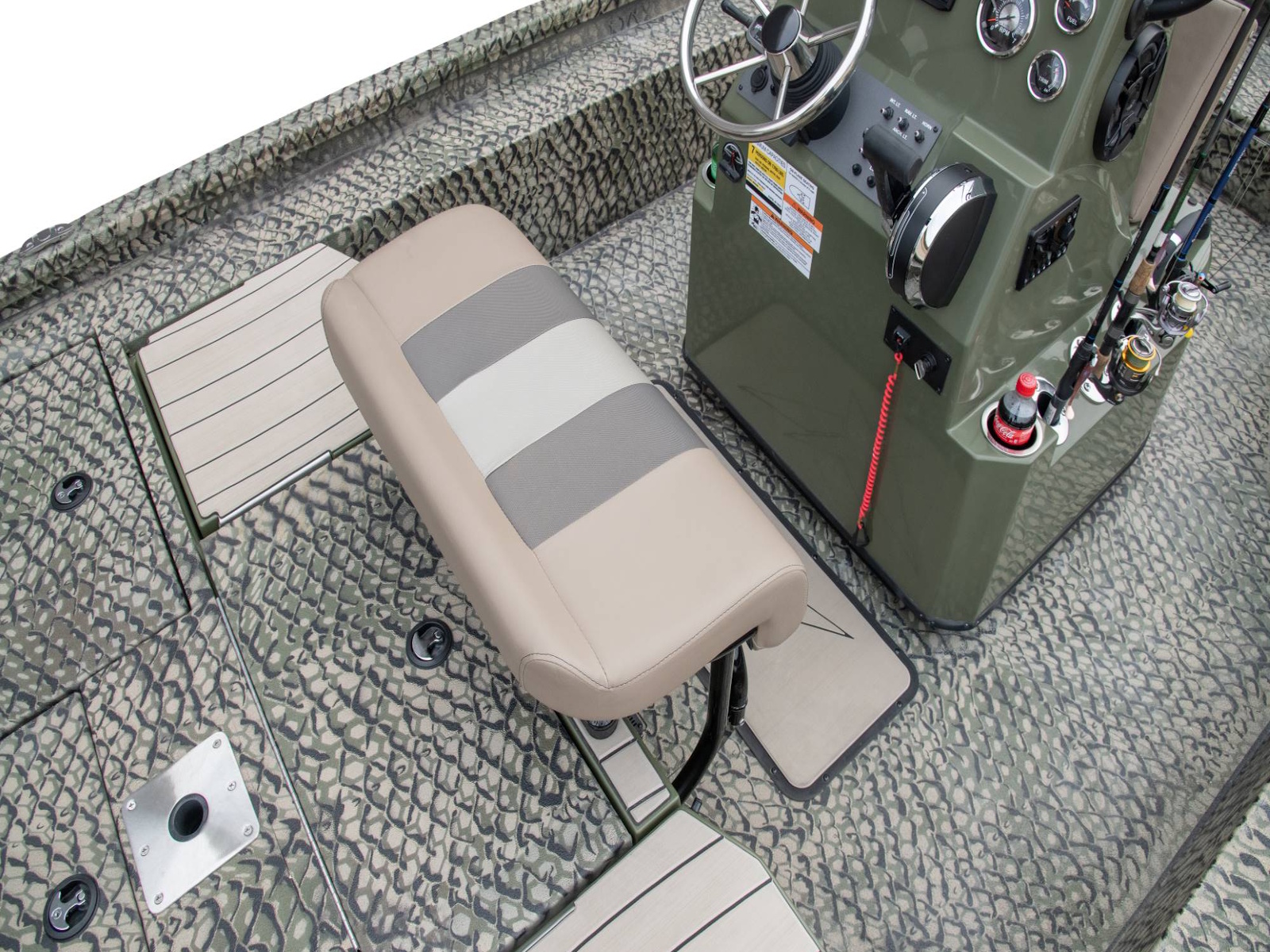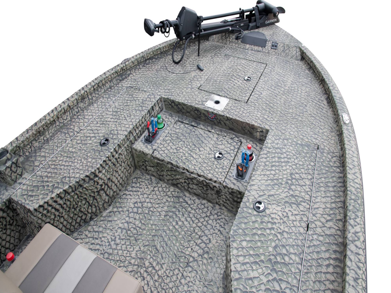 Our Tru-Trek™ floor surface is a tread-gripping polyurea bond that's ultra-durable and easy to clean. By replacing carpet, it allows the angler to confidently venture into salt or brackish waters.
