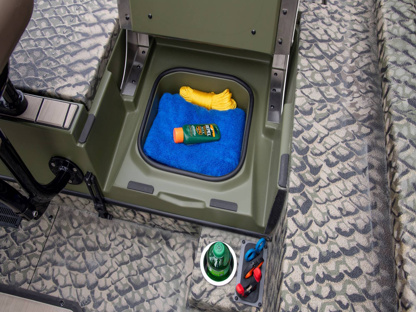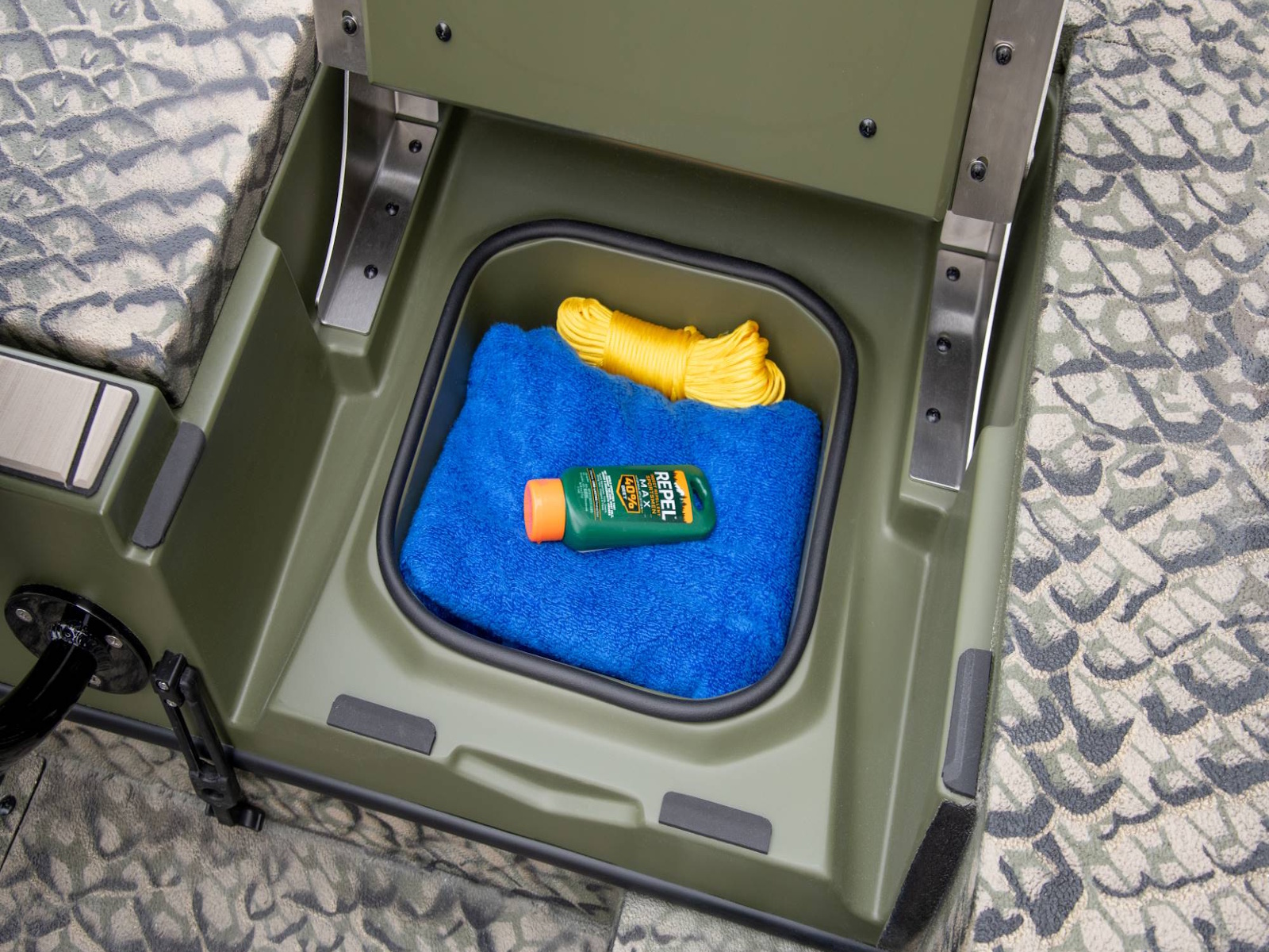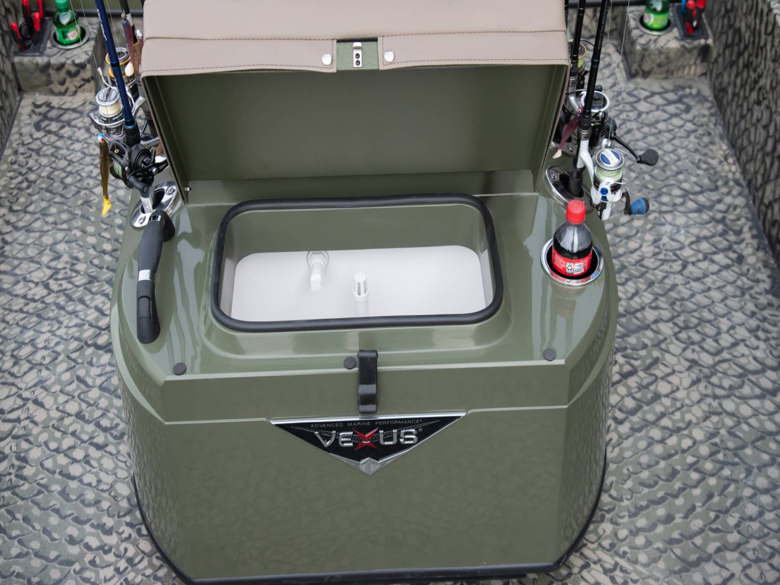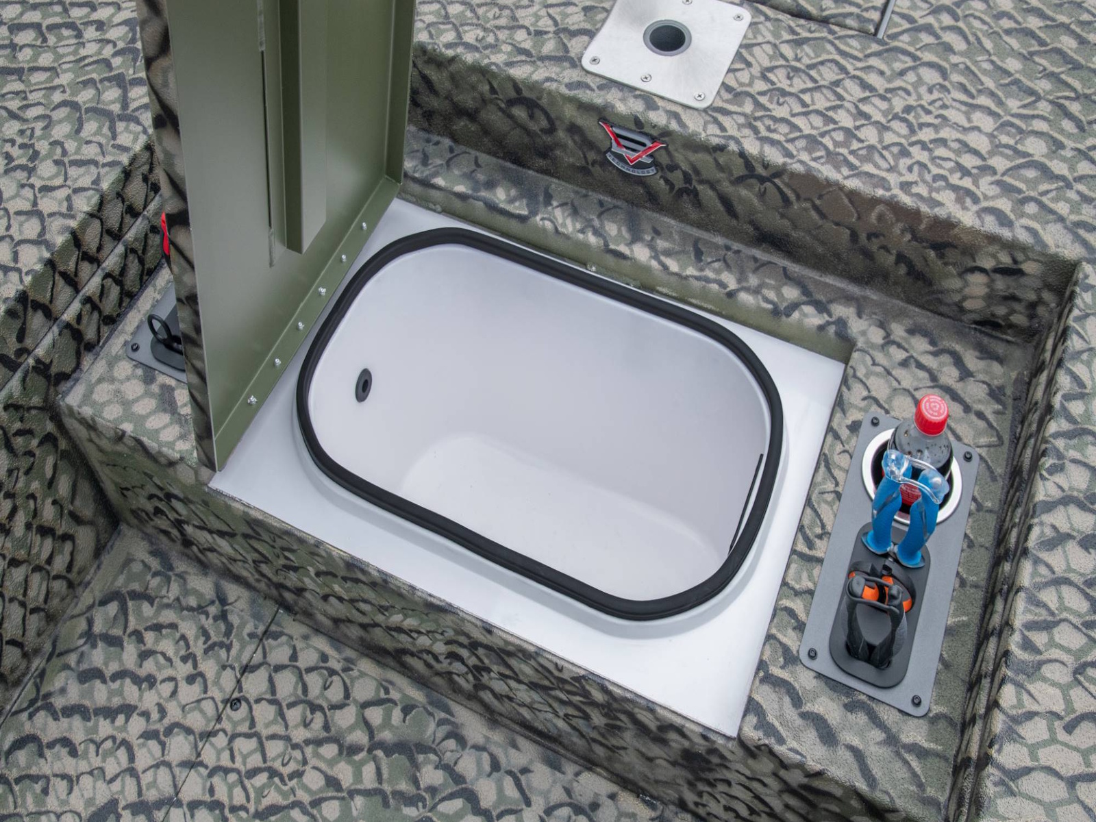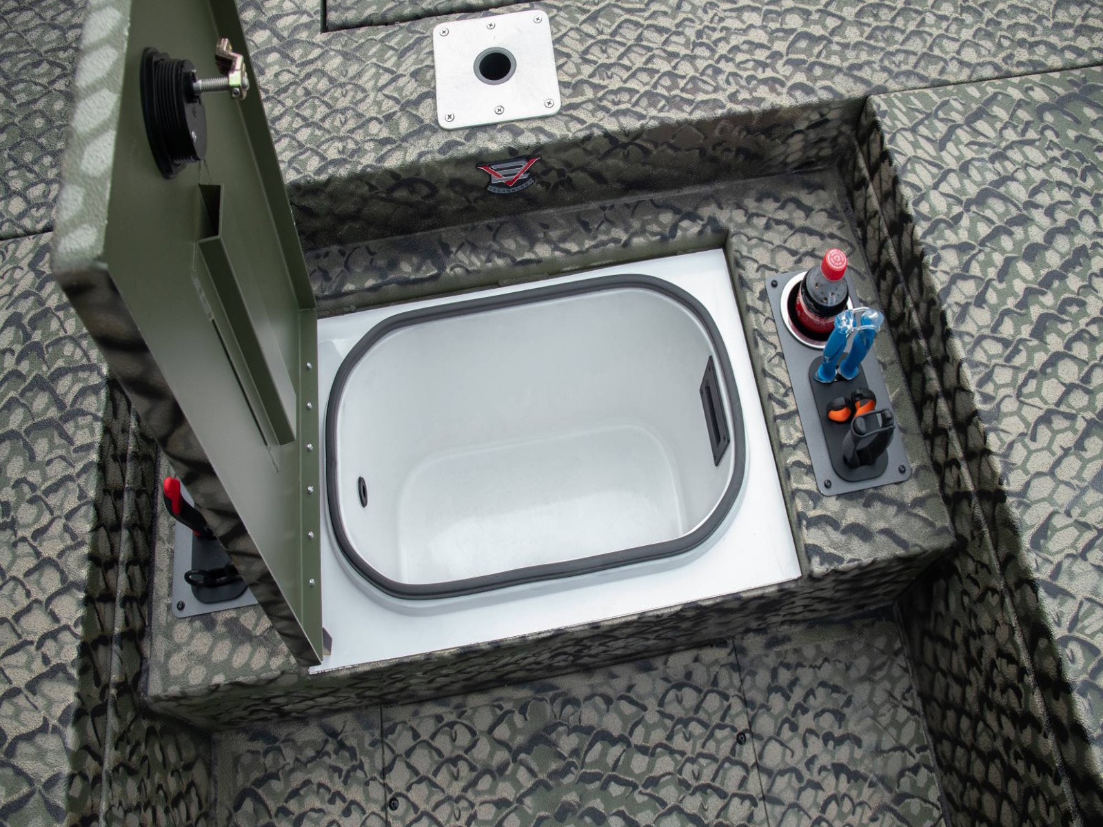 In a world full of coolers that cost hundreds of dollars, we provide one built into the boat itself. It's over insulated with foam, has a built-in drain, and the smooth, durable gel-coated interior is made to take the demands an avid angler will throw at it.
