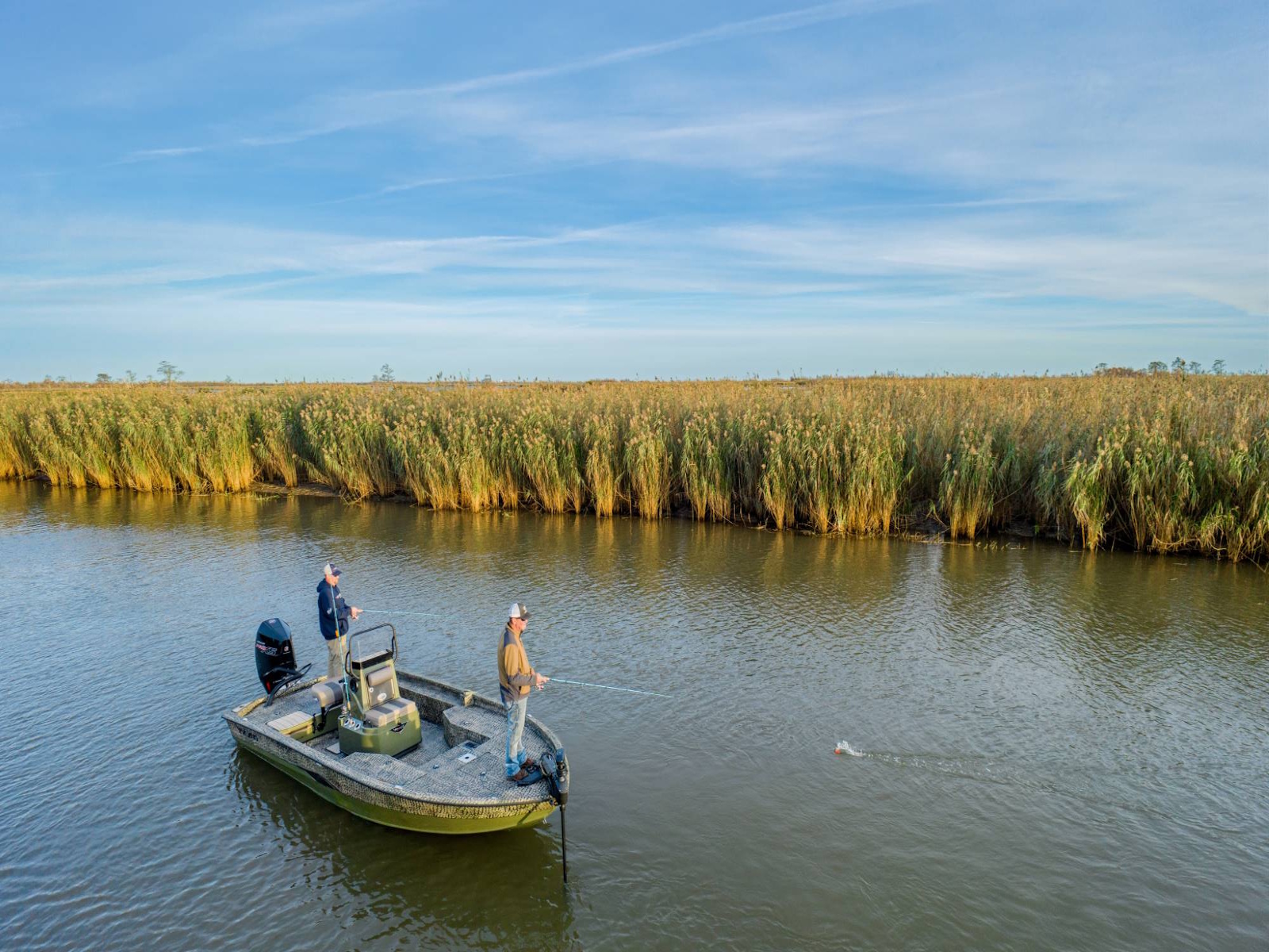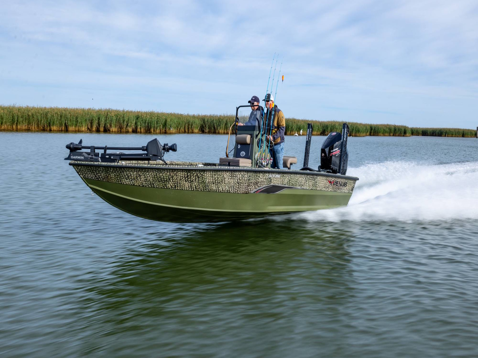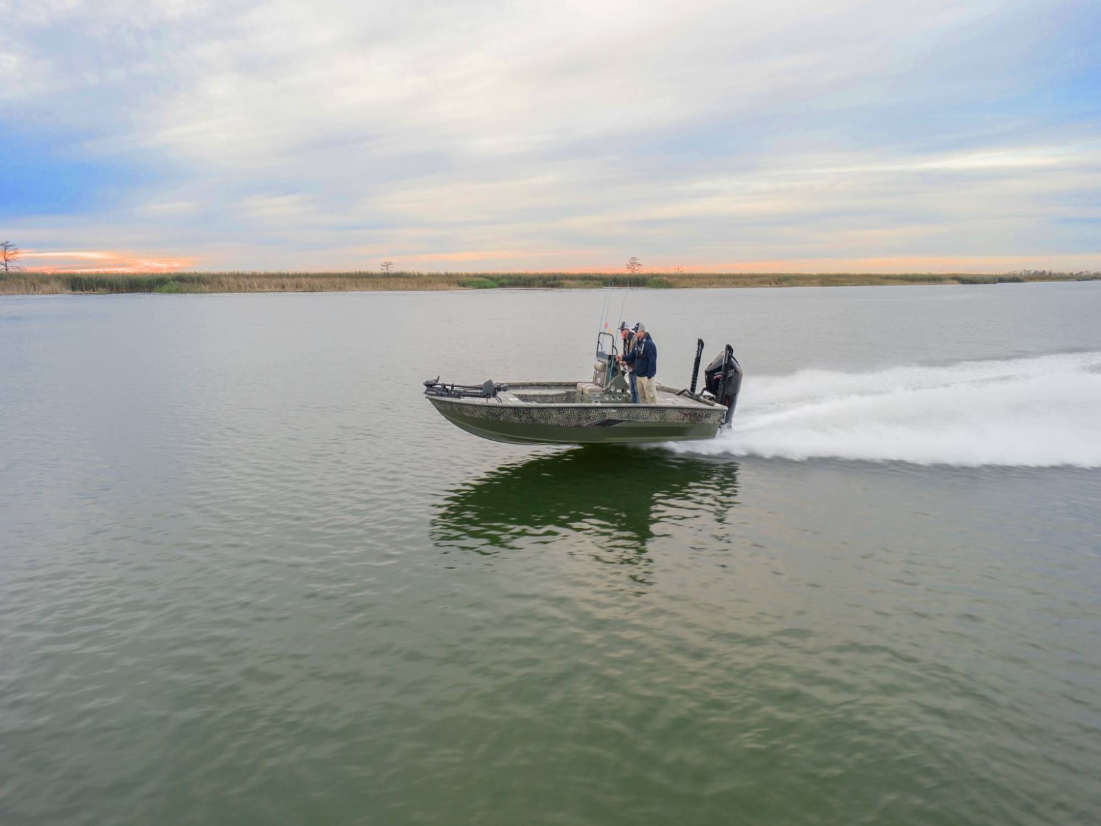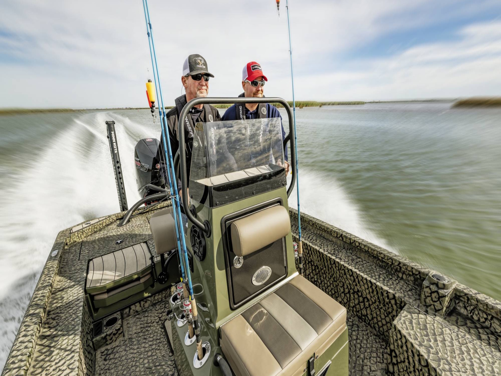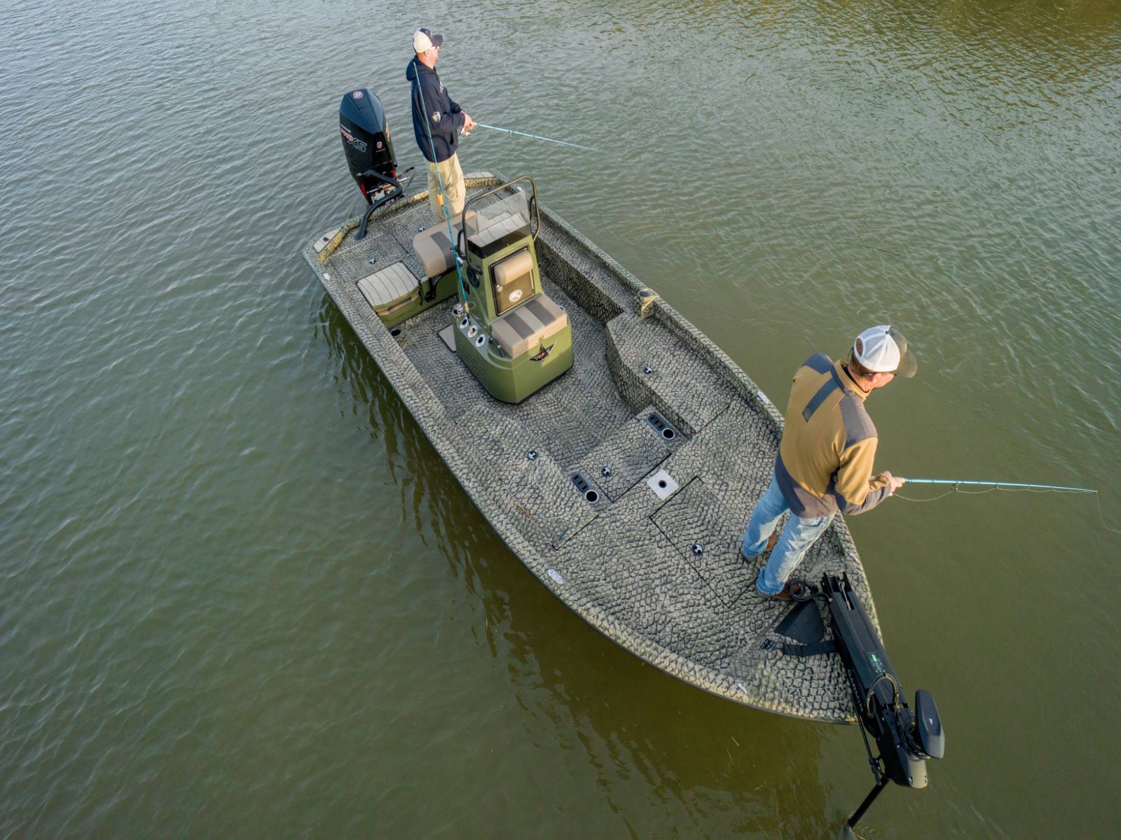 Just because the hull is built out of aluminum doesn't mean it has to resemble your grandfather's jon boat. Our exclusive stretch-formed gunnels provide a sleek look that's often mistaken for fiberglass. Not only does the design create more deck space and room to fish but it delivers an incredibly smooth, solid, and quiet rough water ride.