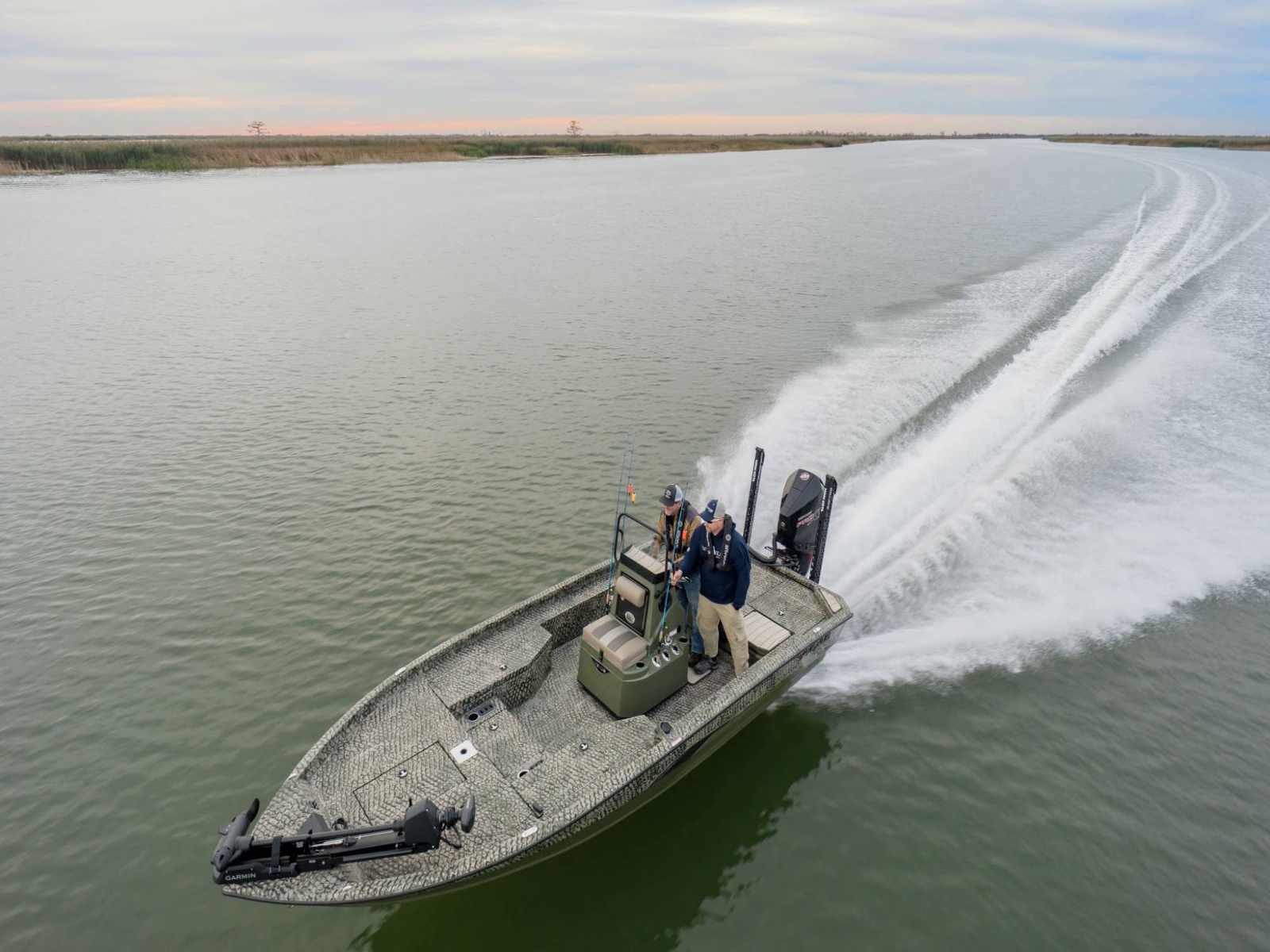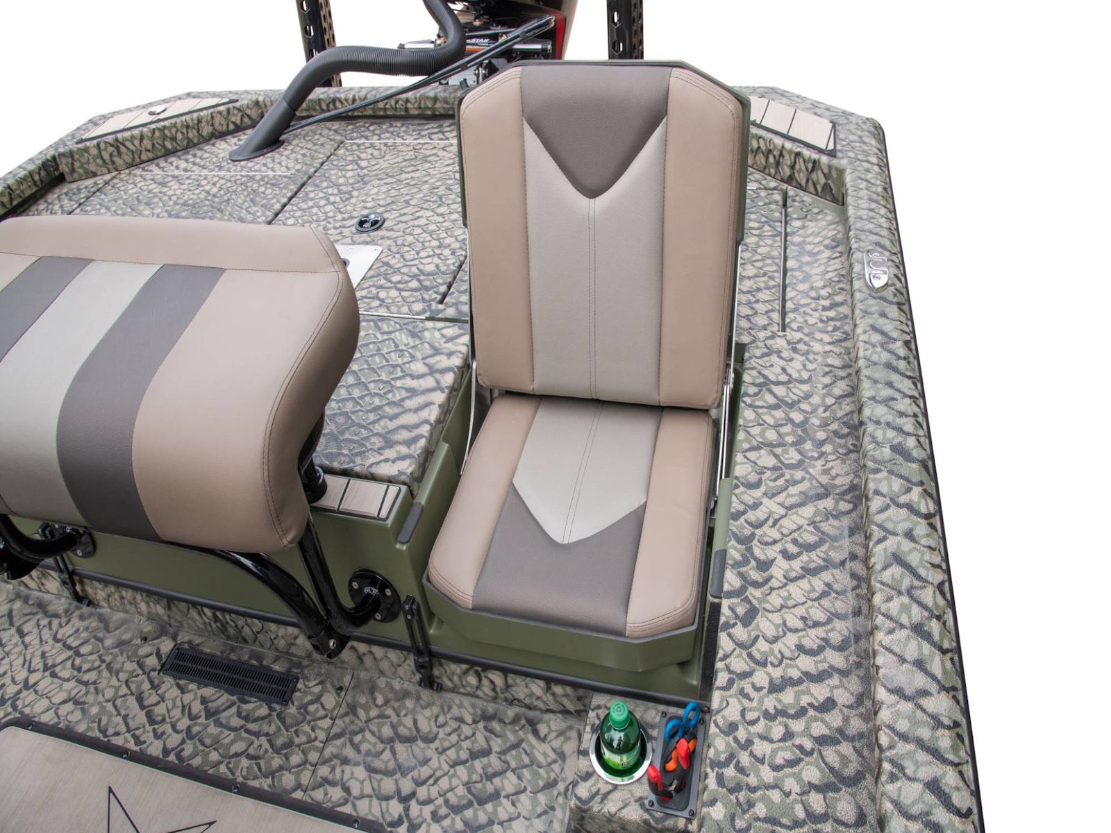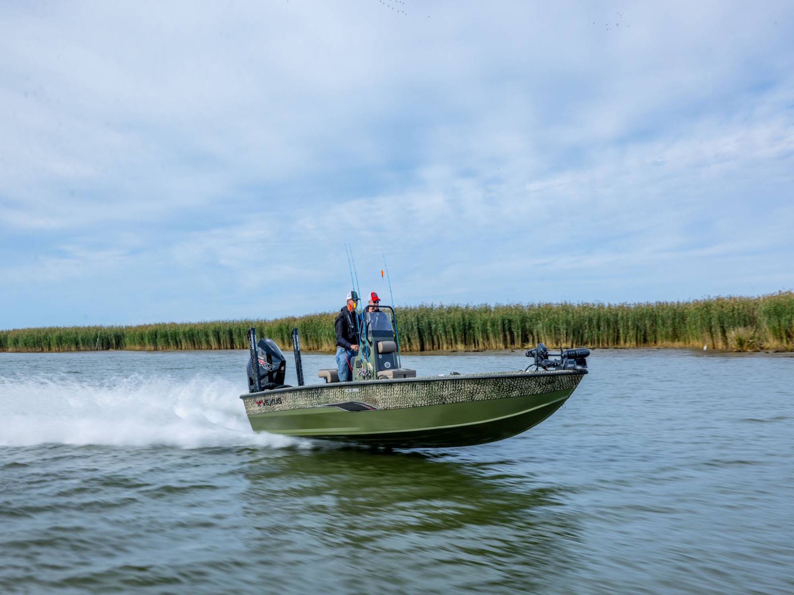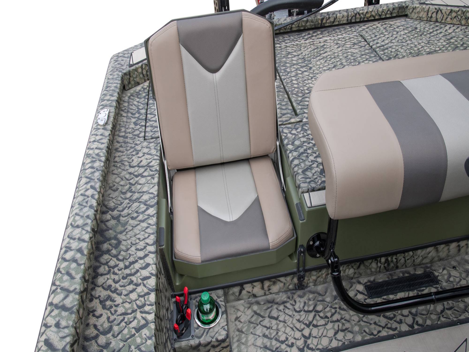 Measuring 20’ 7” in length with an impressive 100” beam, the guide-inspired ACX2150 is a full-featured, total performance design. Often compared to glass, this revolutionary aluminum hull and interior are built with our exclusive V2 technology so there’s more strength, space, stability, comfort, fishability, versatility, and fuel capacity. Check out even more details on our proprietary V2 process by viewing the video in this section. Inside and out, there’s more of everything you’ve been looking for, including more seating, confidence, and additional color choices like drab and our exclusive camo pattern.